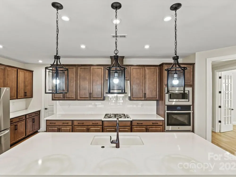 - Dishwasher, Disposal, Exhaust Hood, Gas Cooktop, Gas Water Heater, Microwave, Plumbed For Ice Maker, Refrigerator with Ice Maker, Self Cleaning Oven, Tankless Water Heater, Wall Oven