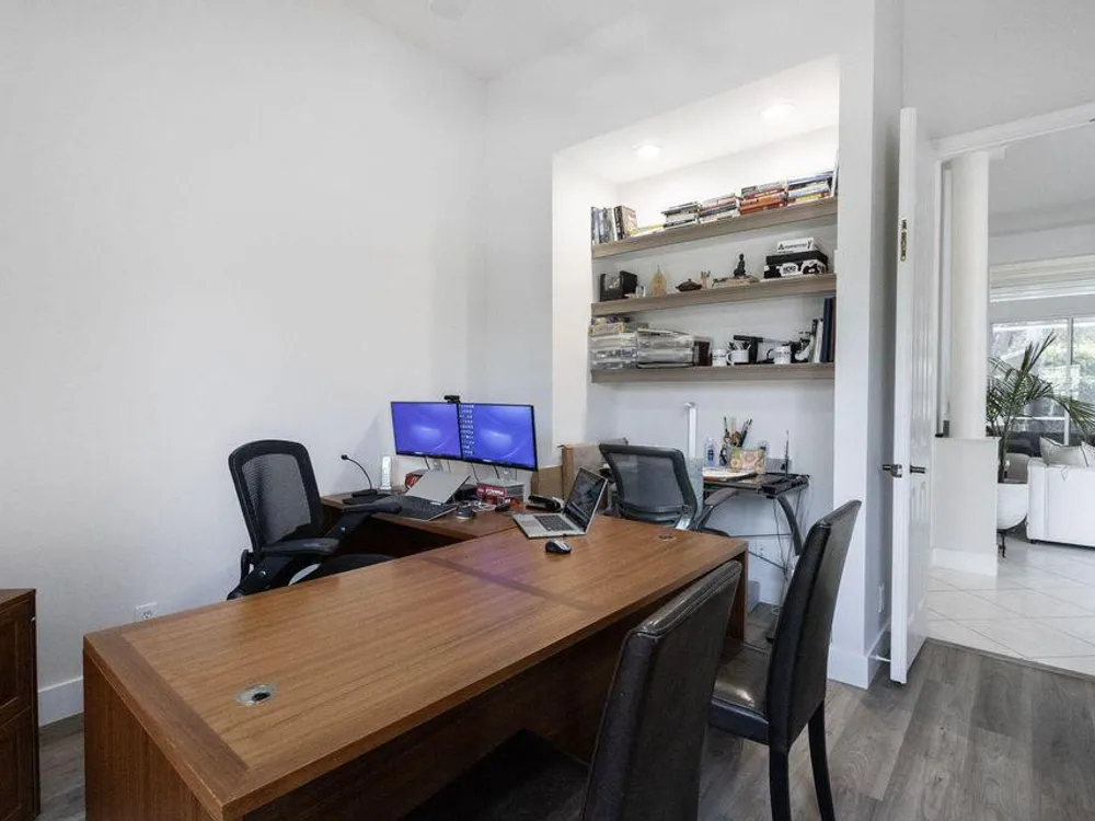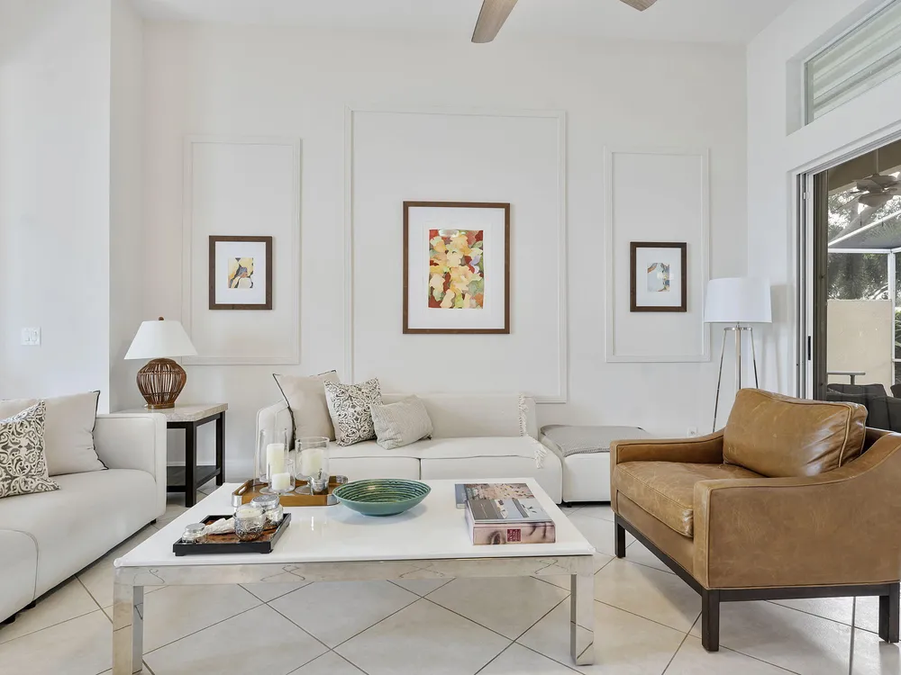 Welcome to the largest model in the community. This home is immaculate and well taken care of. It features a den/office as the 3rd bedroom. It's a perfect work space or an extra room or to host guests. The home also features a Nest thermostat. The large screened patio offers privacy and serenity to have your morning coffee or enjoy the company of friends and family. Villa Borghese is an active 55+ community with a 24/7 manned guard gated. Monthly HOA fee includes AT&T Direct TV plus internet, landline, monitored ADT home security system, lawn maintenance, pressure wash roof and driveway. The community offers a beautiful and active clubhouse, full-time on-site management, a resort style pool, fitness center, billiards, library, bocce, pickleball and tennis courts.