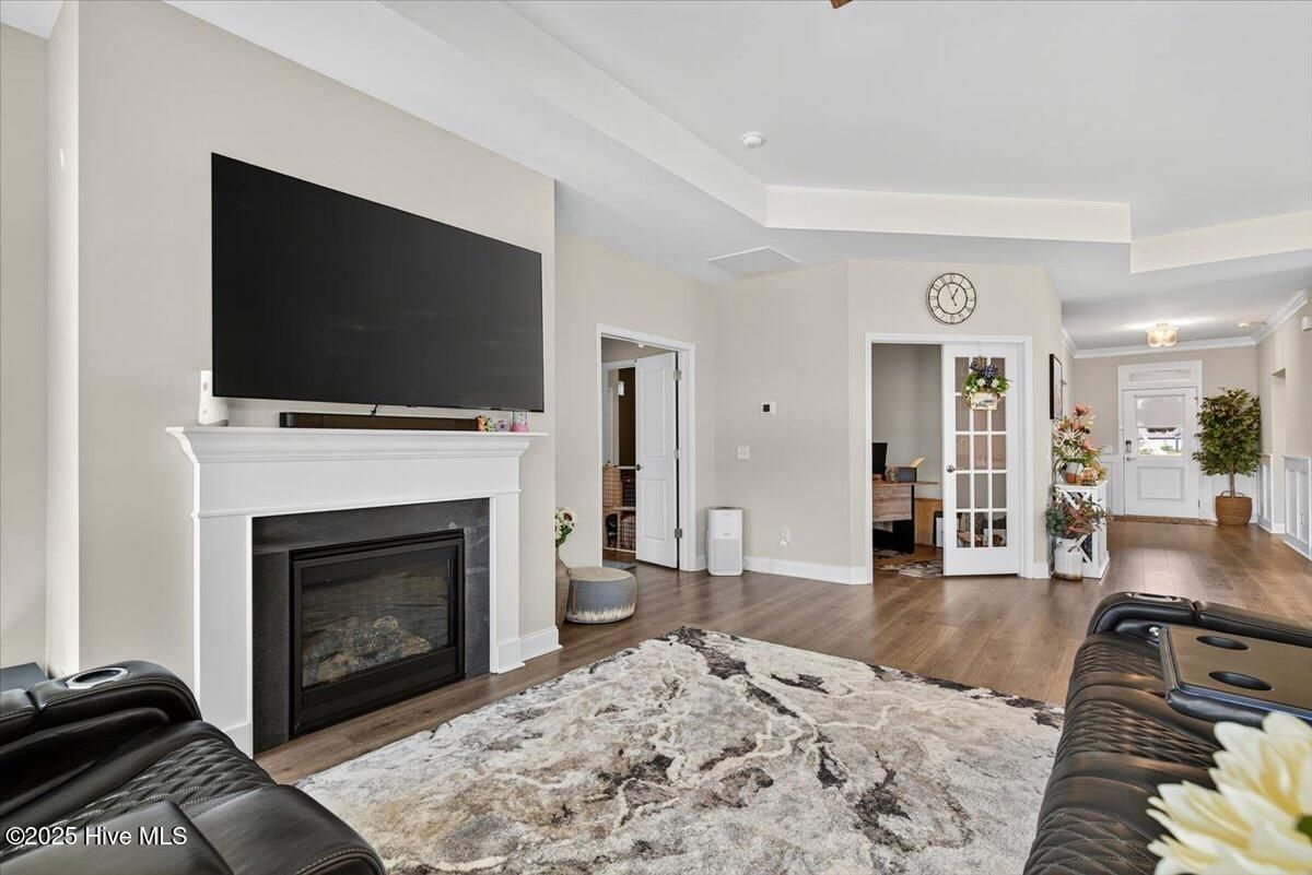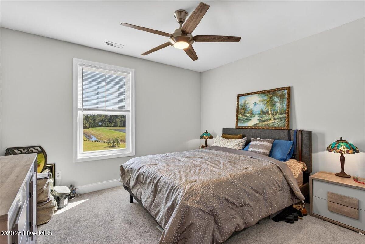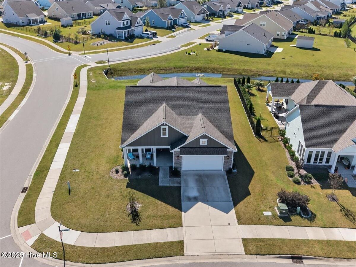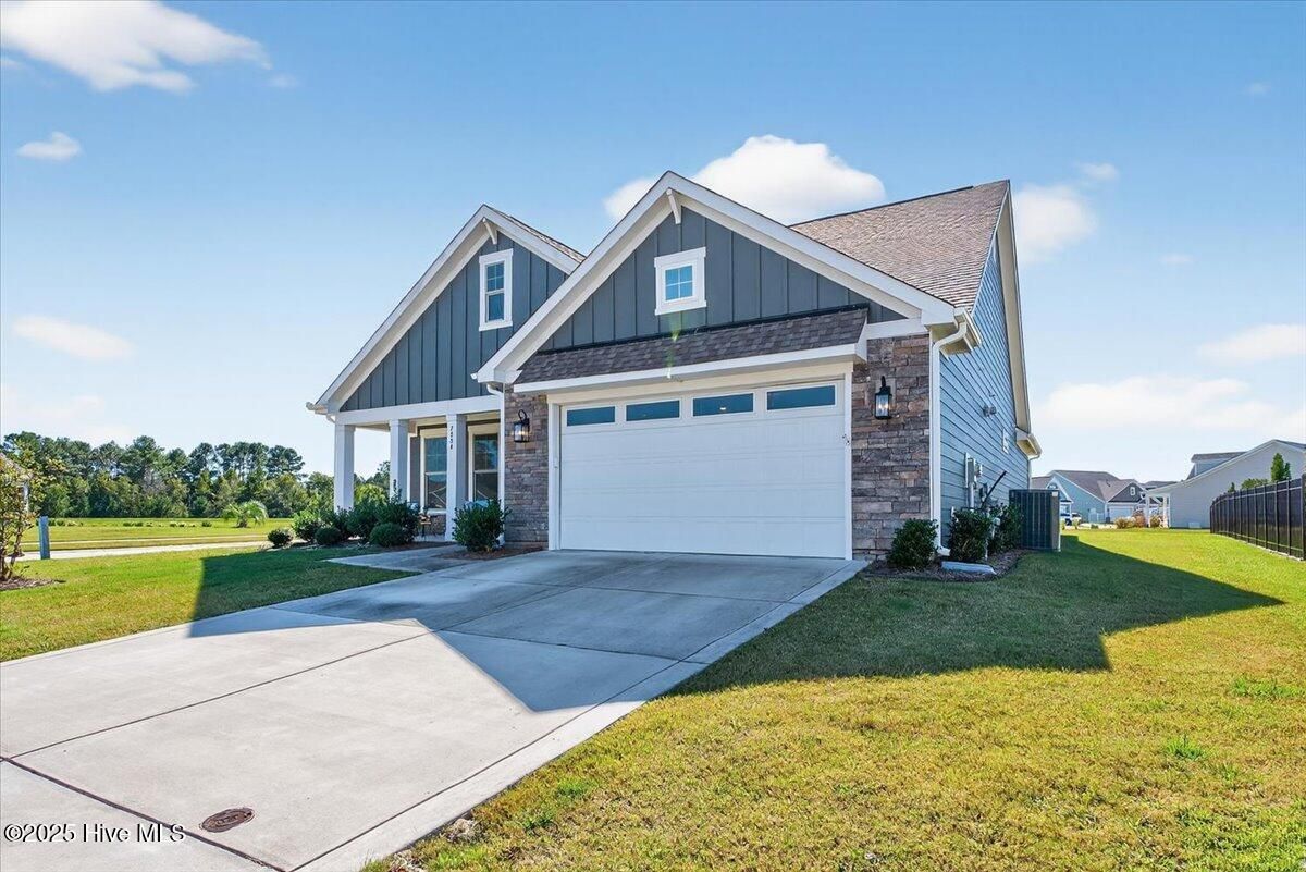 Step into this beautiful coastal designed home with stone accents in the highly sought out subdivision of Mallory Creek. This award winning Torino floor plan with over 45K in upgrades. This gem of a home with many upgrades and thoughtfully designed touches offers 3-bedrooms, 3-bathrooms, den/office, and a bonus room. From the covered rocking chair front porch, enter the foyer and admire the many upgrades including crown & chair molding, archways, transom windows providing tons of natural light, tray ceilings, quality laminate floors throughout main living areas, ceramic tile in baths and upgraded carpet in bedrooms & bonus room. The heart of the home is the gourmet kitchen, boasting a counter-height island, upgraded sink fixture, quartz countertops, tiled backsplash, natural gas cooktop, and large walk-in pantry. The main level owners suite has more than ample natural lighting and includes a walk in closet, en suite bath with 2 sinks, L-shaped walk-in tiled shower + glass doors, & water closet. The upstairs bedroom with full bath is ideal for in-laws or teenager suite. Step outside to your expanded, upgraded patio with a serene water view, providing a private outdoor oasis for relaxation and entertainment. Home is equipped with an electric car charger. Mallory Creek features a playground and two community pools. Close to downtown Wilmington, and only 30 minutes to Southport, Caswell, and Oak Island Beaches. Call today for a private showing.