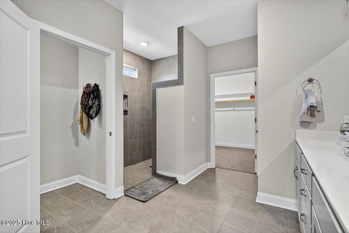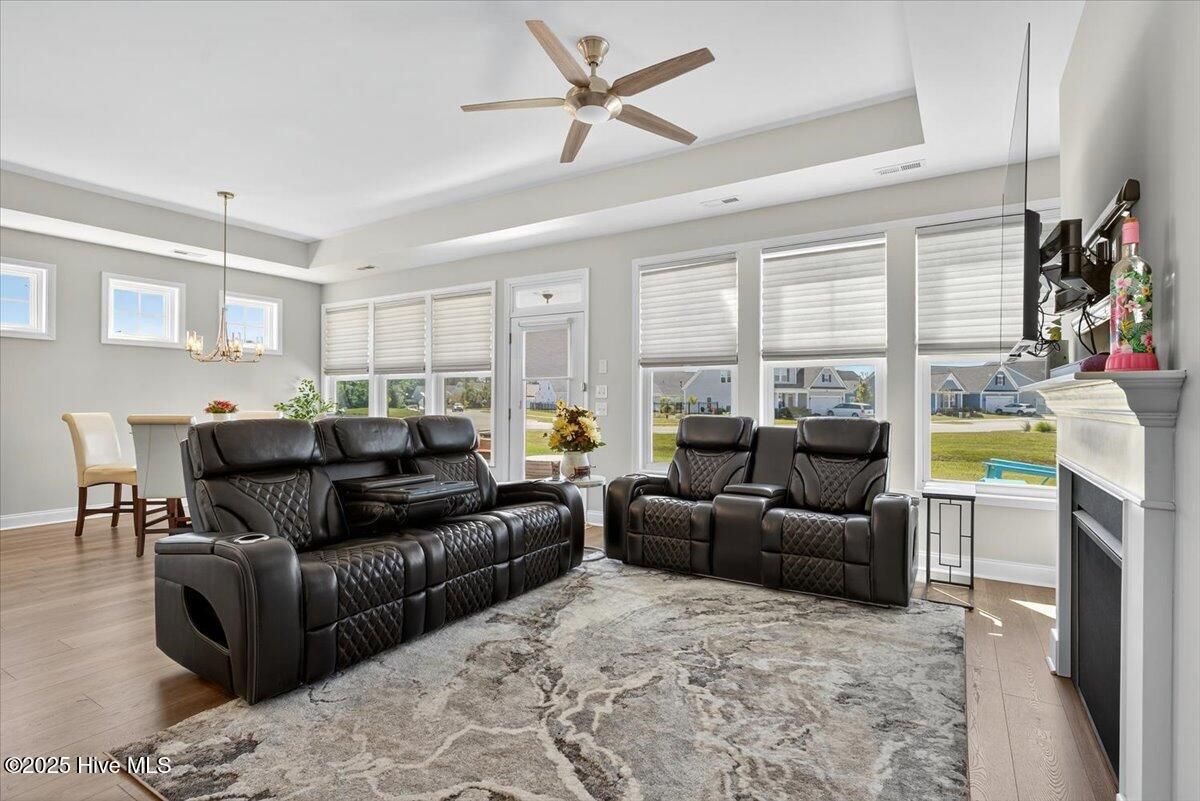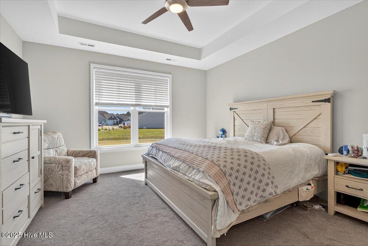 - Master Downstairs, Tray Ceiling(s), High Ceilings, Entrance Foyer, Kitchen Island, Ceiling Fan(s), Walk-In Shower, Blinds