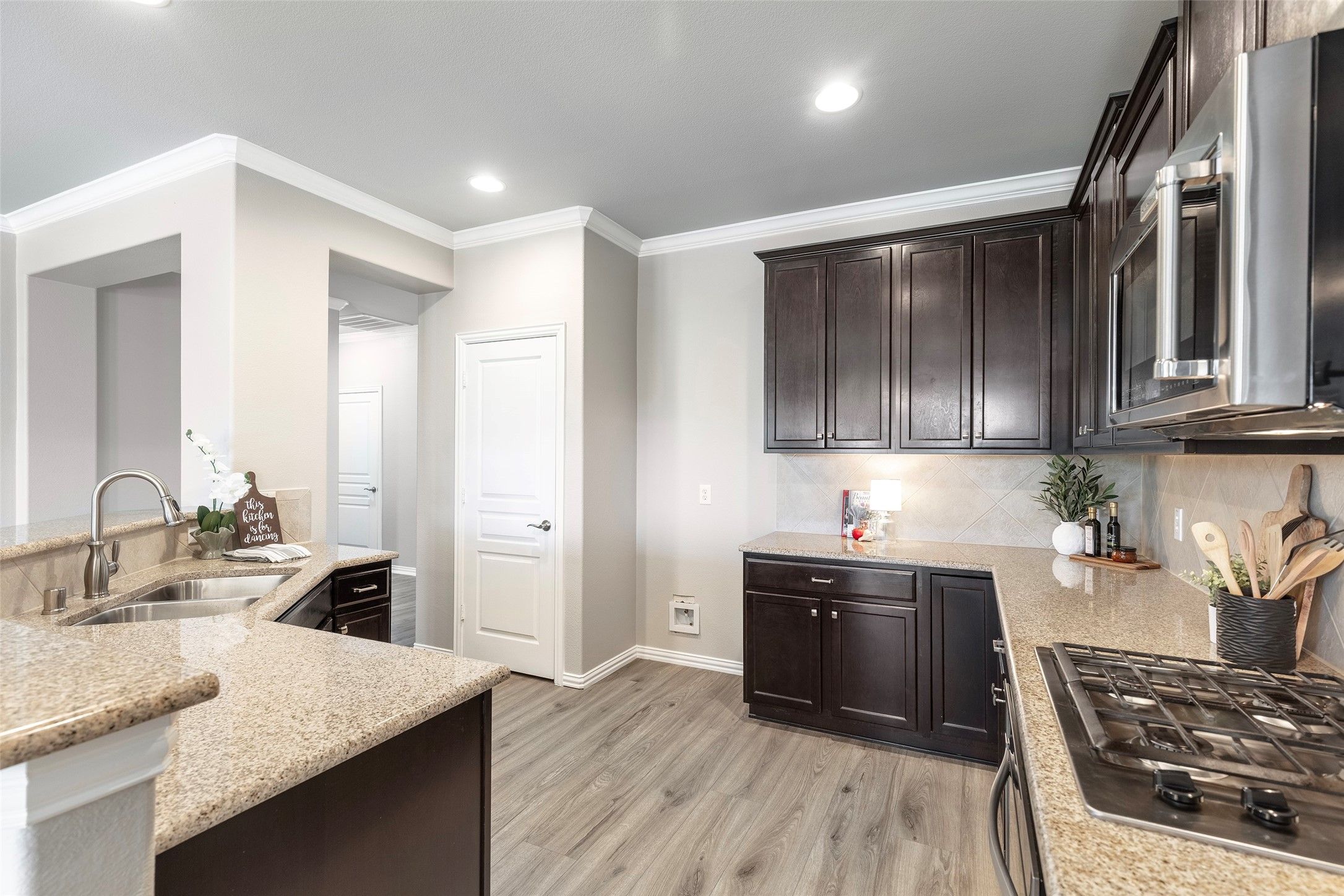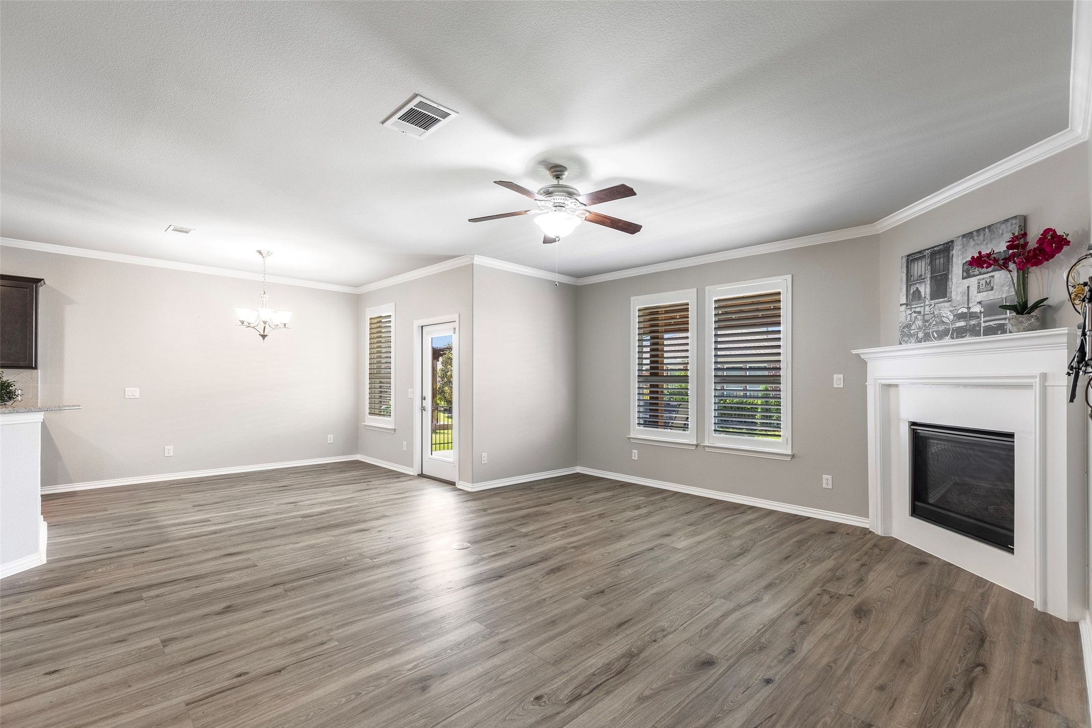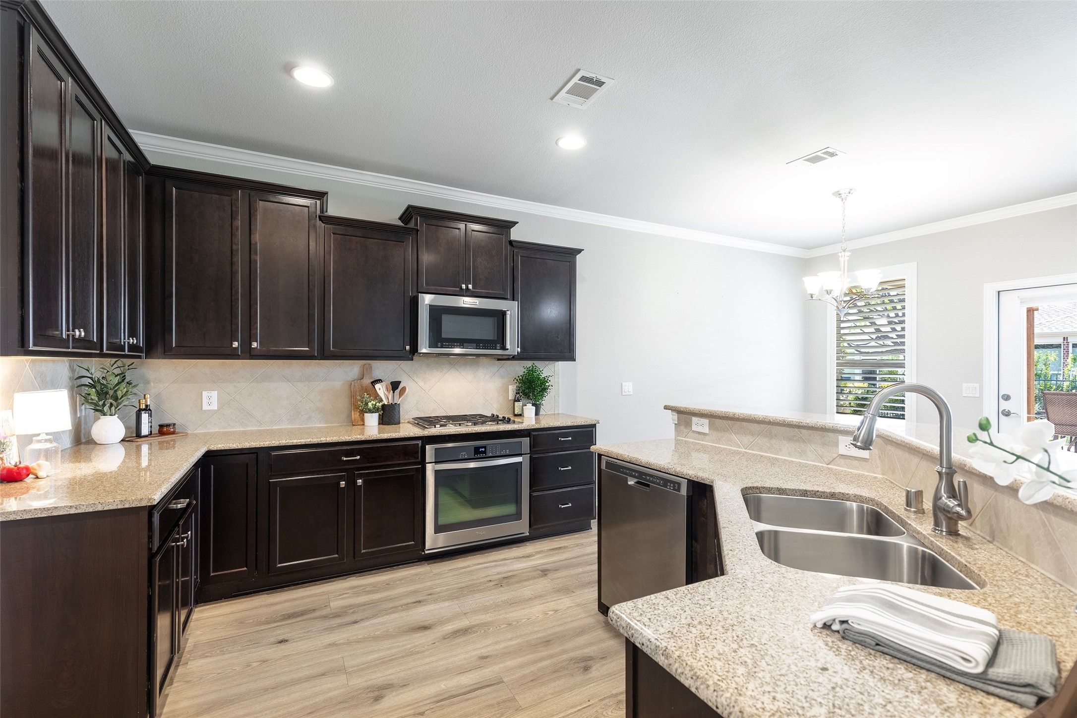 Experience refined living in the highly sought-after Frisco Lakes community, where comfort and elegance meet a vibrant lifestyle. Ideally positioned at the end of a quiet street, this exceptional home welcomes you with outstanding curb appeal, highlighted by an expansive front porch, mature trees, and beautifully manicured landscaping—creating a serene and inviting first impression. Step inside to discover a light-filled, open-concept living space designed for both relaxation and entertaining complimented by gorgeous plantation shutters. The spacious living area flows seamlessly into a well-appointed kitchen featuring a under cabinet lighting, gas cooktop, stainless steel appliances, granite countertops, a generous eat-in bar, and a large walk-in pantry—perfect for everyday living and hosting alike. The private primary suite offers a peaceful retreat, complete with rich LVP flooring and large windows overlooking the backyard. The ensuite bath is thoughtfully designed with dual vanities, Garden tub, stand alone shower, private water closet, and an expansive walk-in closet. Additional highlights include a spacious utility room with sink and storage, conveniently connected to the garage complete with overhead storage racks. Also new is the tankless water heater with lifetime warranty. Enjoy low interior maintenance with new LVP flooring throughout the every space of the home. Freshly painted inside makes this home move-in ready. Outdoors, enjoy your own private backyard retreat with a stunning pergola-covered patio and custom stone flooring—ideal for entertaining or unwinding in style. Residents of Frisco Lakes enjoy access to premier amenities including resort-style pools, tennis courts, fitness and social activities, and more. Rarely does a 3-bedroom home of this caliber become available—don’t miss this exceptional opportunity. Will be active with showings beginning on April 8th.