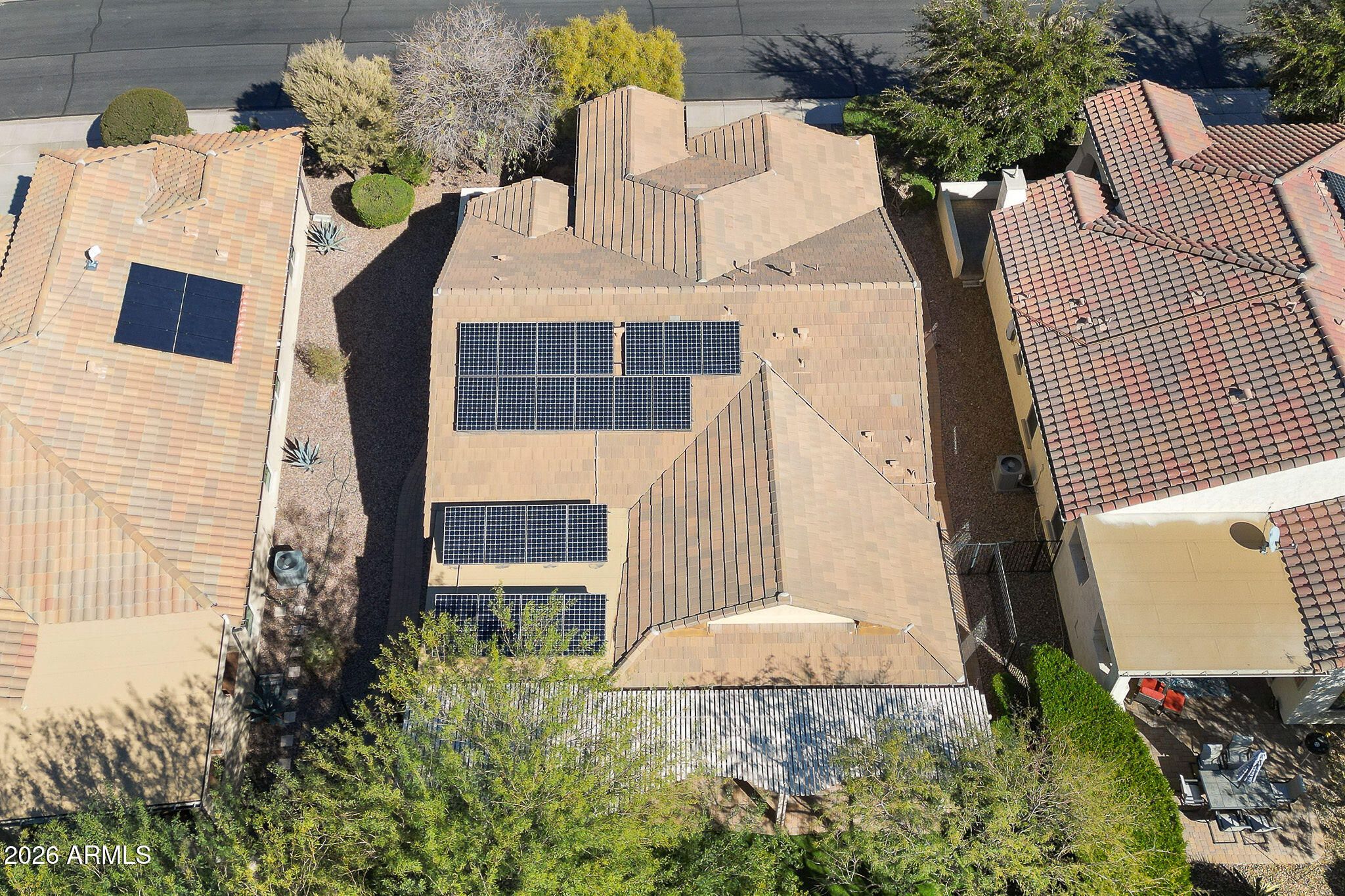 Welcome to this charming and beautifully upgraded Santcuary model located in the highly desirable Sun City Anthem at Merrill Ranch! This popular 2 bedroom + den, 2 bath single-level home features a light & bright open great room concept and split floor plan with custom shutters, crown molding, over-sized tile in living areas & custom paint. Kitchen features crips white cabinetry, stainless steel appliances, expansive island with beautiful granite and backsplash. Spacious primary suite with spa-like bath & walk-in closet. Stunning low-maintenance backyard oasis featuring an oversized pergola, built-in gas fireplace, artificial turf, remote-controlled shades and lights, and extended gas line for BBQ. Plus owned solar (low to ZERO electric bill). Hurry, this beauty won't last long!
