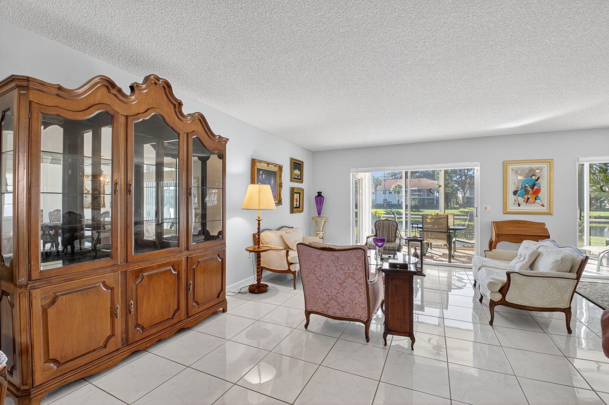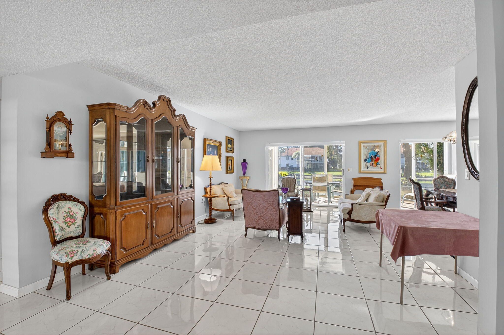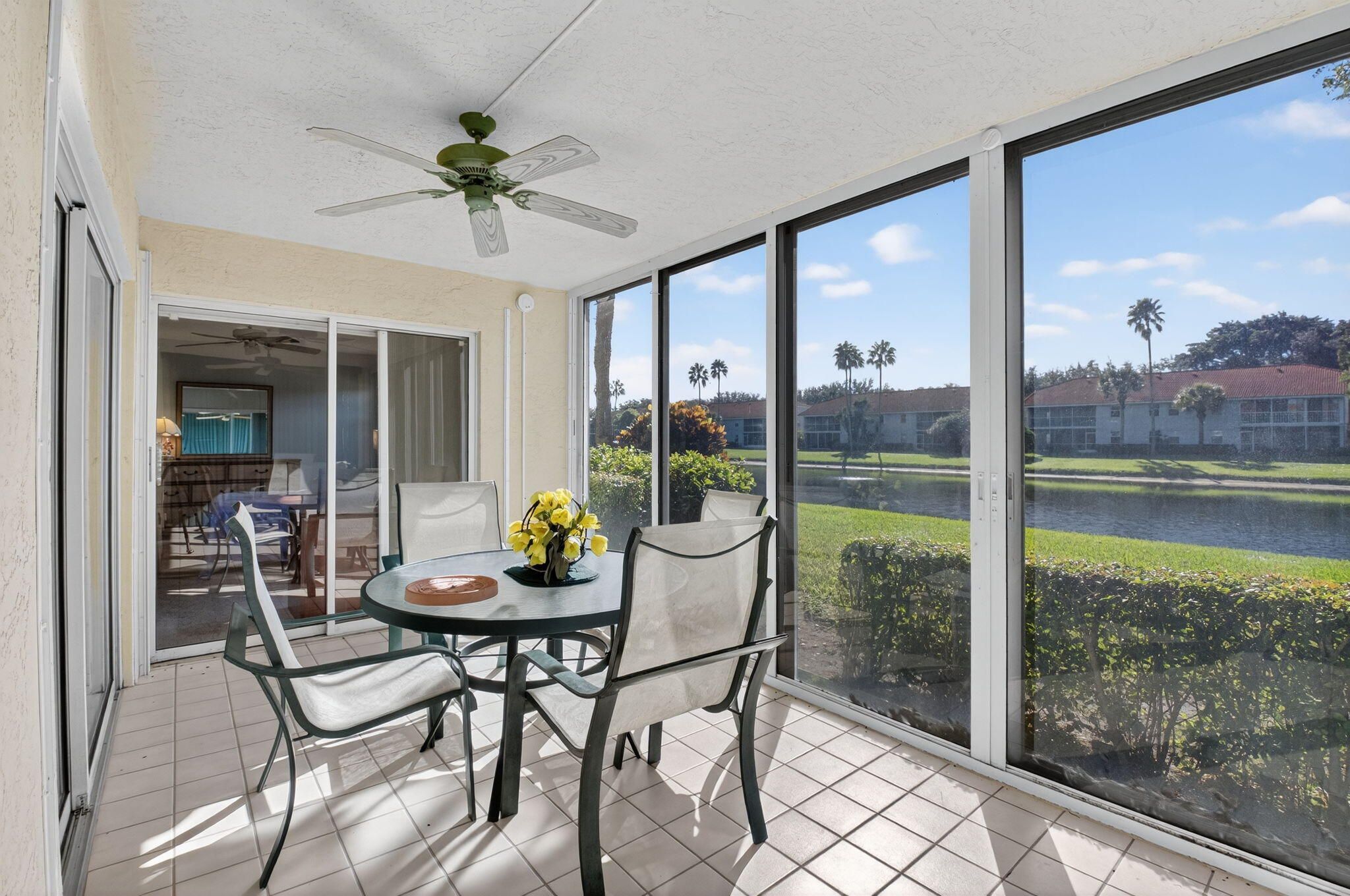 Fresh, Bright & Move-In Ready! This spacious first-floor condo offers comfortable living, serene lake views, and a flexible open layout—all in the highly desirable active adult community of Palm Isles. With covered parking just steps away and a prime central location, this home checks all the boxes. Flooded with natural light, the residence features tile flooring throughout the main living areas and carpet in the bedrooms. The kitchen is equipped with granite countertops, wood-grain cabinetry, ample storage, and a cozy eat-in breakfast area. A full wall of southern-exposure glass sliders fills the expansive living area with sunshine and frames beautiful views of the lake. Relax on the enclosed patio—your own peaceful retreat overlooking the water. The spacious primary suite includes a walk-in closet, dual sinks, lake views, patio access, and a versatile sitting area. Additional conveniences include an interior laundry room and a covered carport. Just a short walk away, the multi-million-dollar renovated clubhouse is set to reopen in December, offering fitness rooms, free art classes, activities, and a vibrant social scene. You'll also enjoy being minutes from newly developed shopping, dining, and entertainment.
