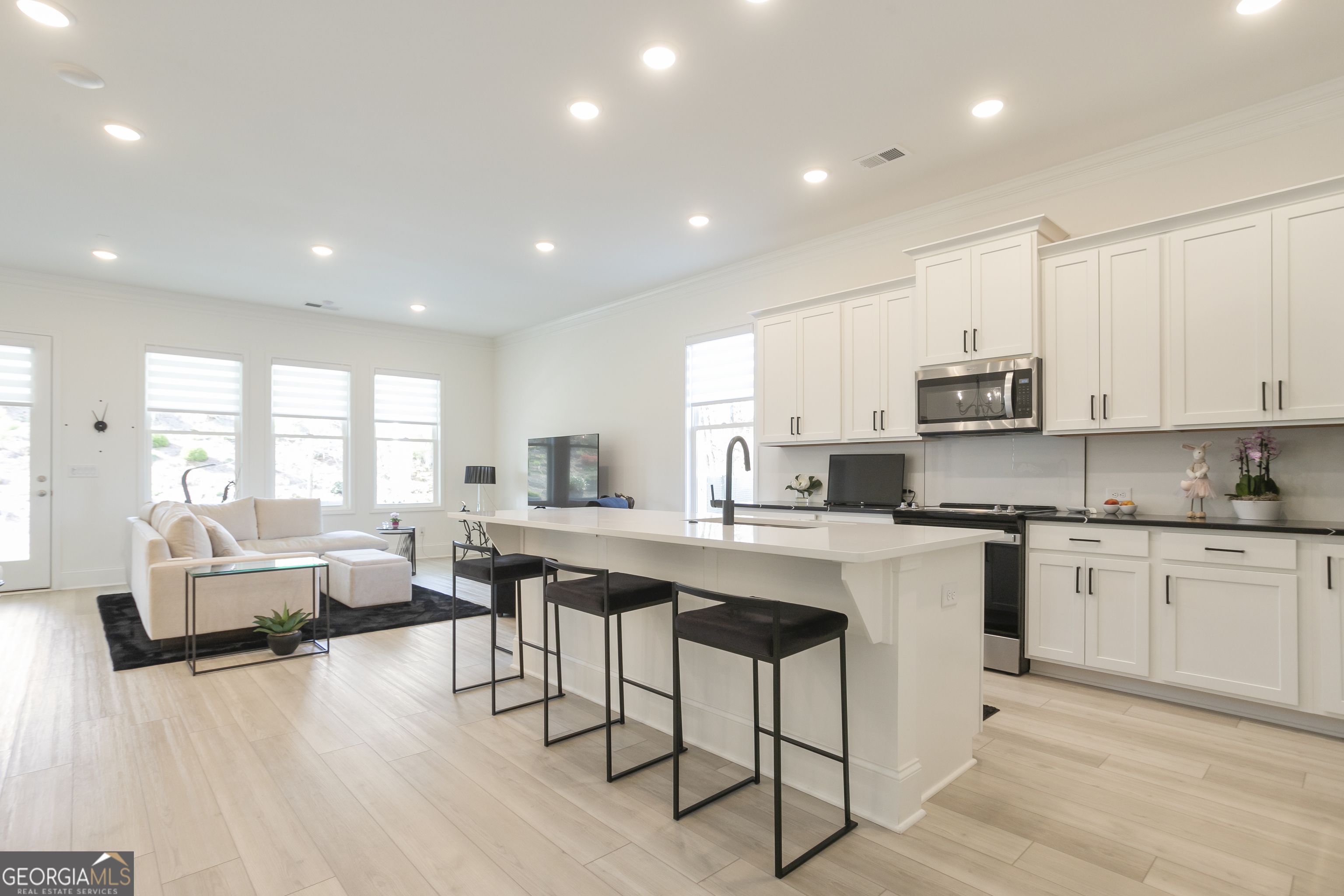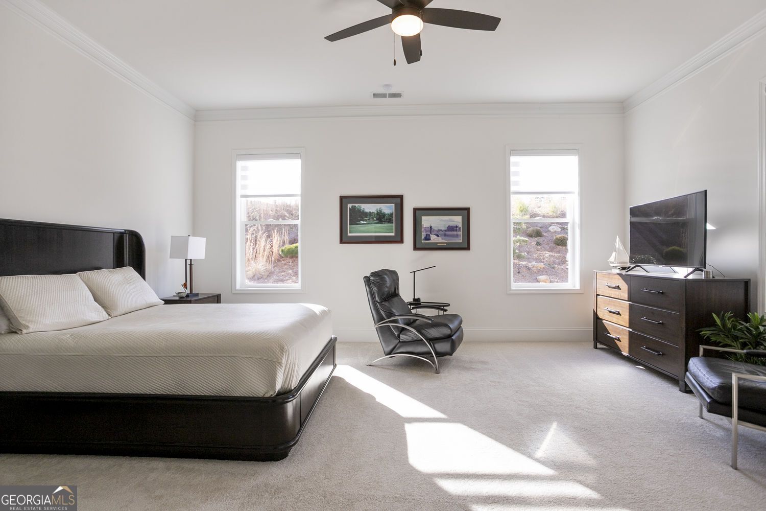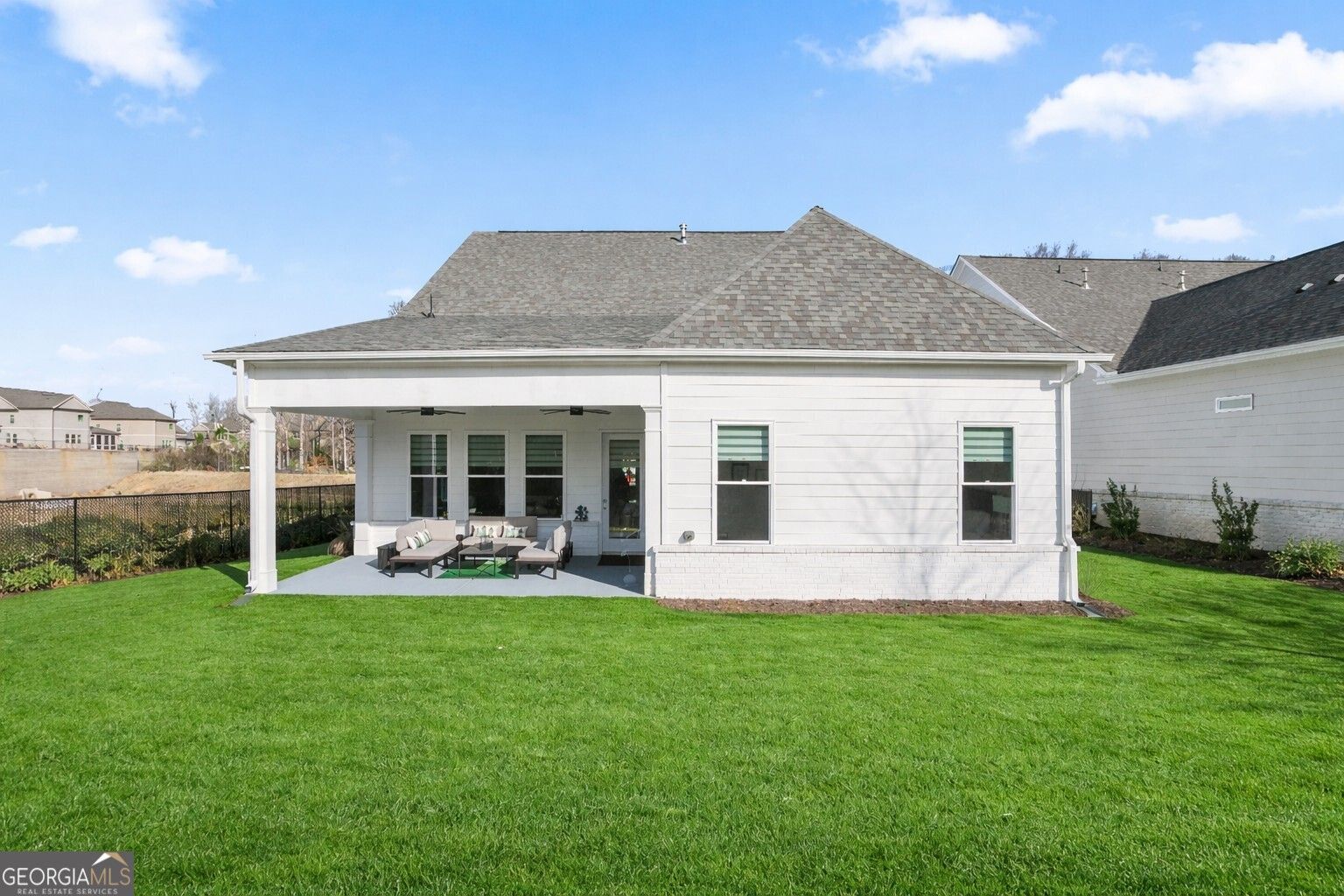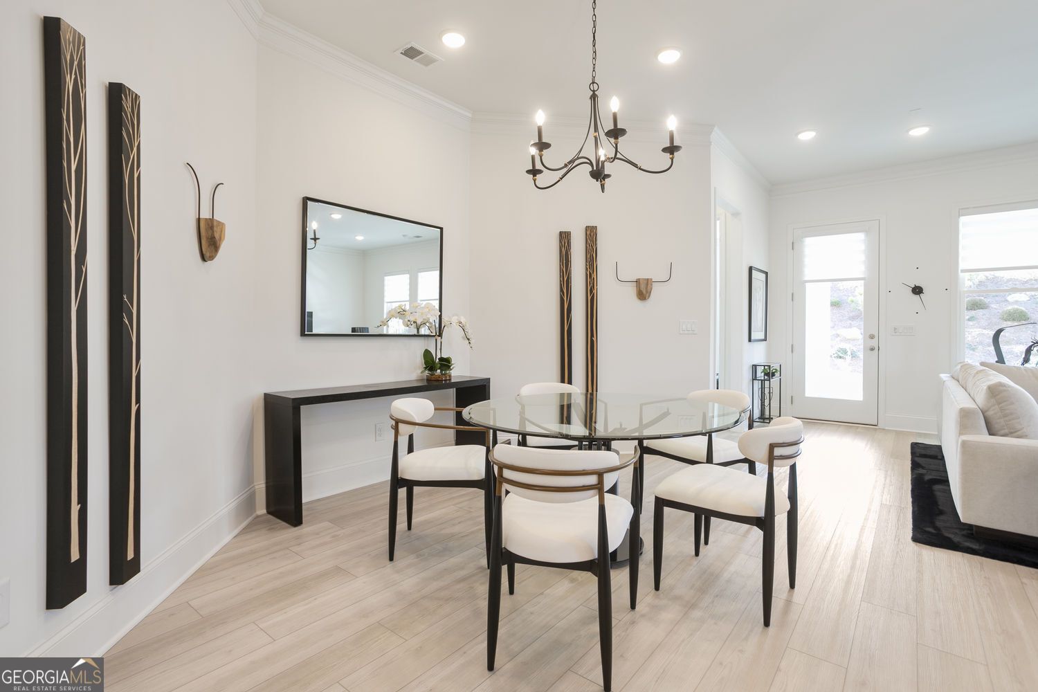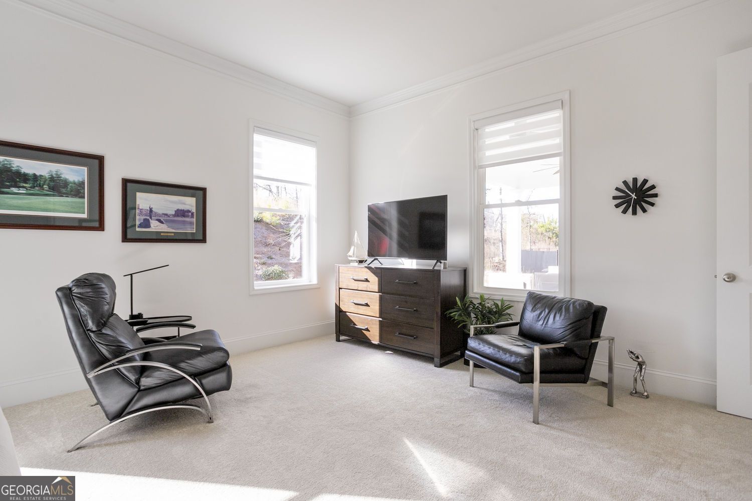 Quiet Cul-de-sac Lot! Private, professionally landscaped, low maintenance backyard! This Impeccable Home shows like a model with extensive high-end upgrades throughout! Welcome to the most sought-after plan in the Courtyards at Traditions, the highly desired Newman Plan in one of Cumming's premier communities. Ideally located just 1 mile from GA-400, this beautifully maintained single-level home offers effortless, low-maintenance living with exceptional comfort and style. This spacious layout features 2 large bedrooms, plus a versatile flex space that can easily serve as a home office or guest room. The left side of the versatile 10ft x 11ft flex space entrance features a huge walk-in closet with the option to add an ensuite door for added convenience. The home includes 2 full baths, thoughtfully designed for both function and elegance. Step inside to an open-concept layout that blends casual comfort with elegant design including over $60K in upgrades. The spacious kitchen features quartz countertops, a custom walk-in pantry, an oversized island, upgraded cabinetry, and premium appliances, ideal for everyday living and entertaining. The open floor plan flows effortlessly into the distinctive dining area and adjoining family room, where crown molding adds a refined touch. Throughout the home, custom automatic window shades offer both convenience and style, while multiple thoughtfully placed storage closets ensure everything has its place. The luxurious owner's suite is a true retreat, complete with a spa-inspired bath featuring double vanities, a tiled zero-entry shower with bench and shelf, and a generous custom built walk-in closet. The split-bedroom design provides privacy for guests, offering a large secondary bedroom. Enjoy year-round outdoor living on the expansive covered patio overlooking upgraded landscaping, perfect for relaxing or hosting gatherings. Additional highlights include a spacious laundry room with built-in cabinetry. Located in one of Metro Atlanta's premier areas, this home is just minutes from top shopping and dining at The Collection at Forsyth, Avalon, and Halcyon. Polo Golf & Country Club is only 1.6 miles away, and several parks and hiking trails are close by. Everyday conveniences including grocery stores, retail, and the soon-to-connect Big Creek Greenway are all within easy reach. This exceptional home offers luxury, convenience, private lot, and an unbeatable location, making it truly a rare find.