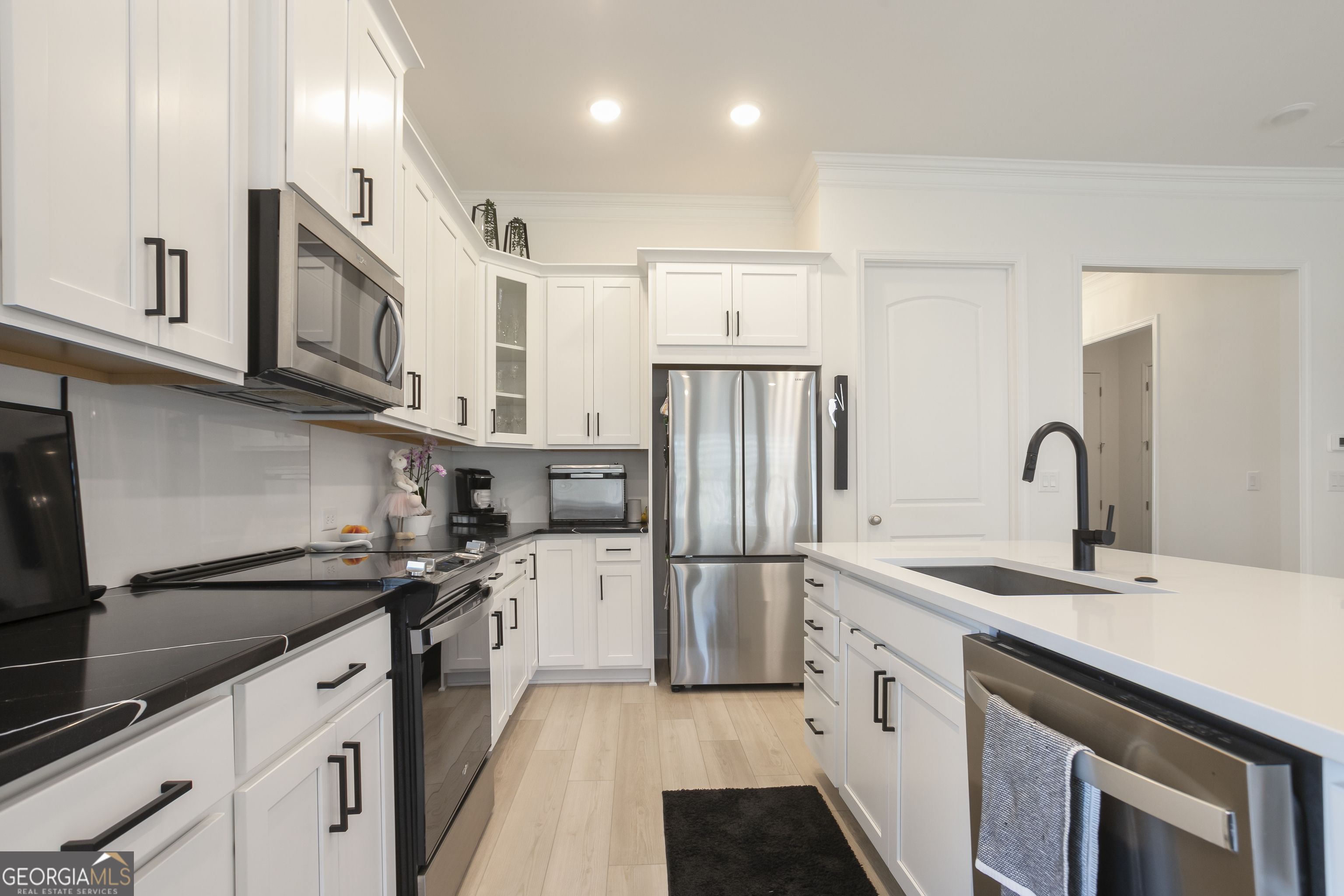 - Dishwasher, Disposal, Ice Maker, Microwave, Range, Refrigerator, Stainless Steel Appliance(s)