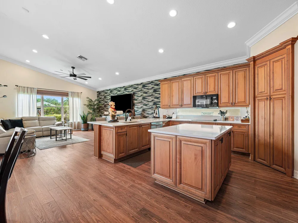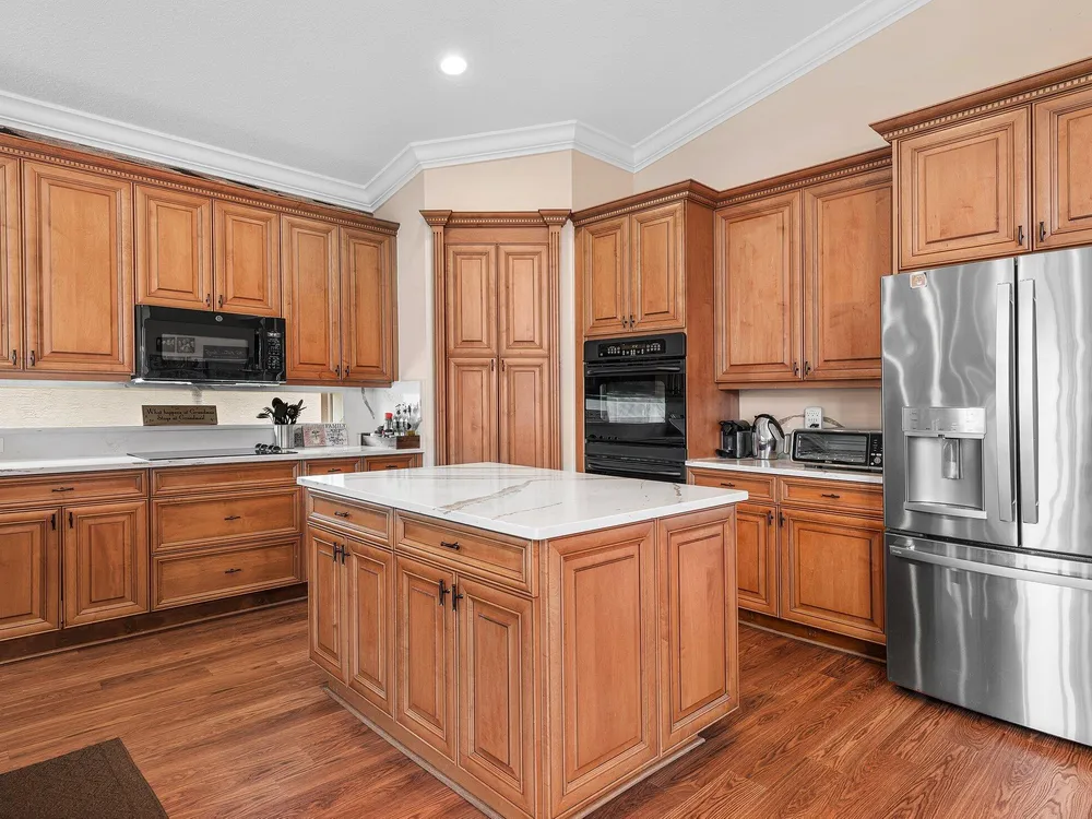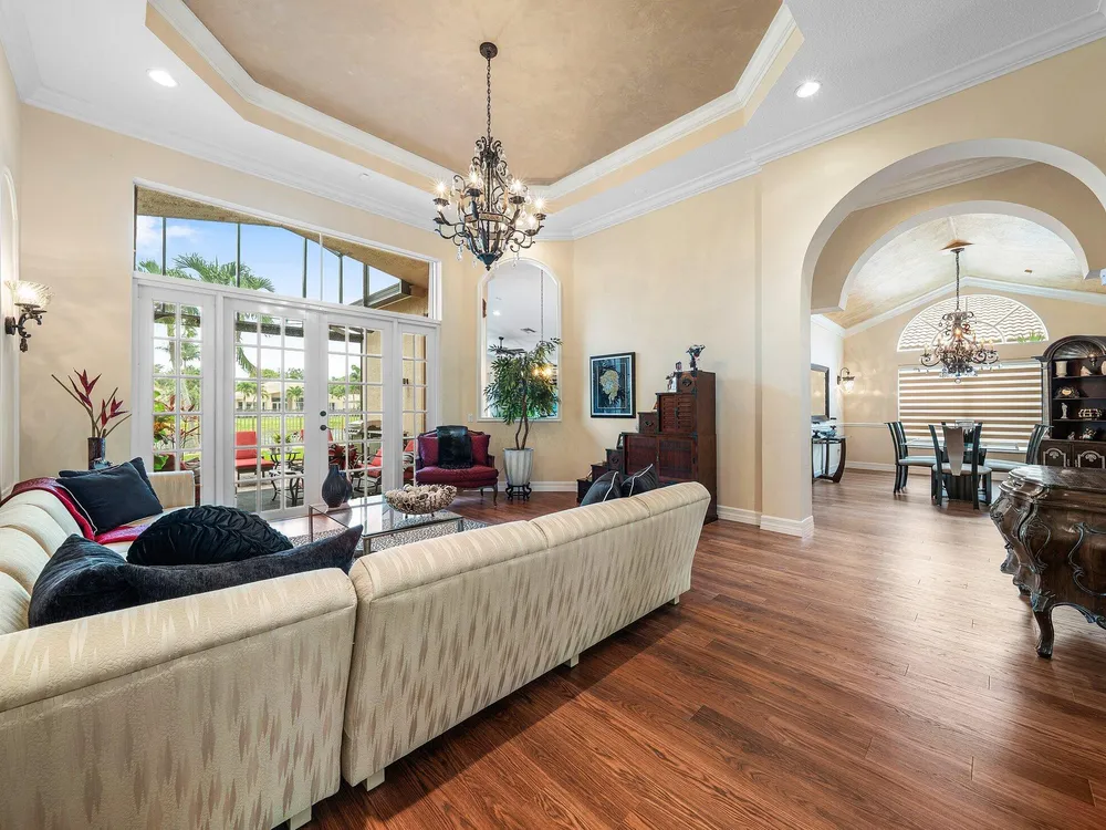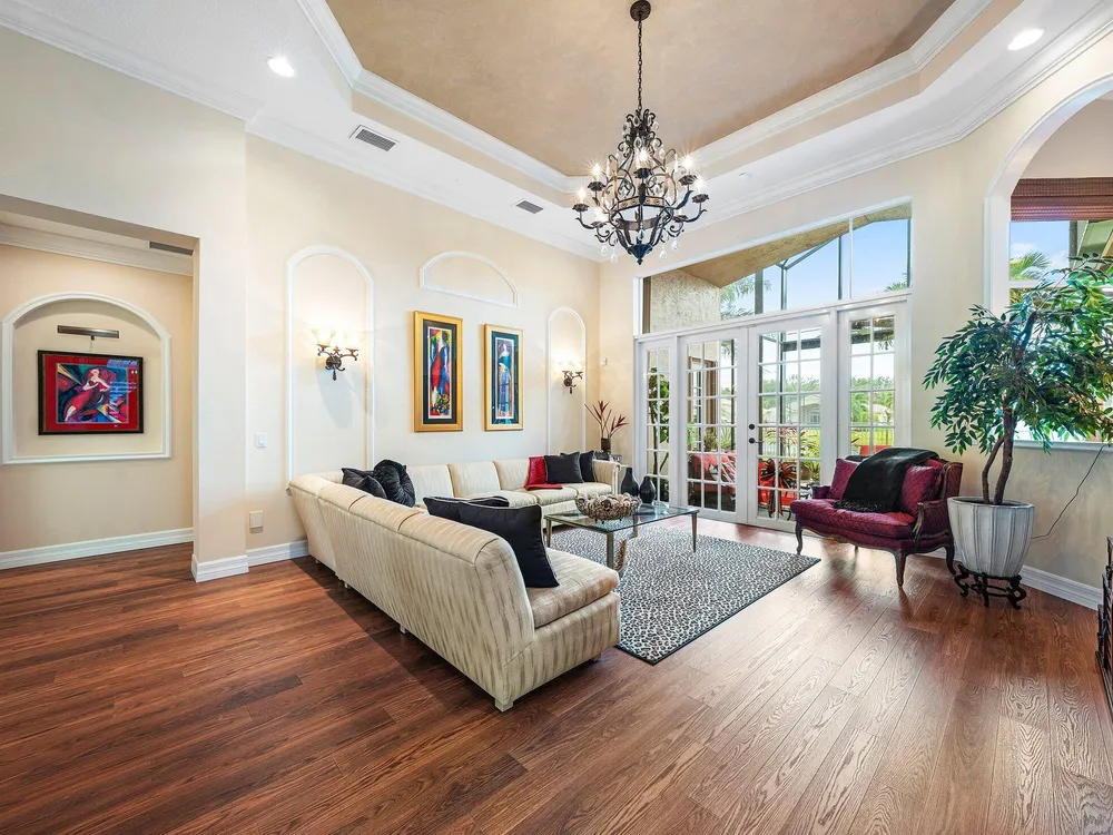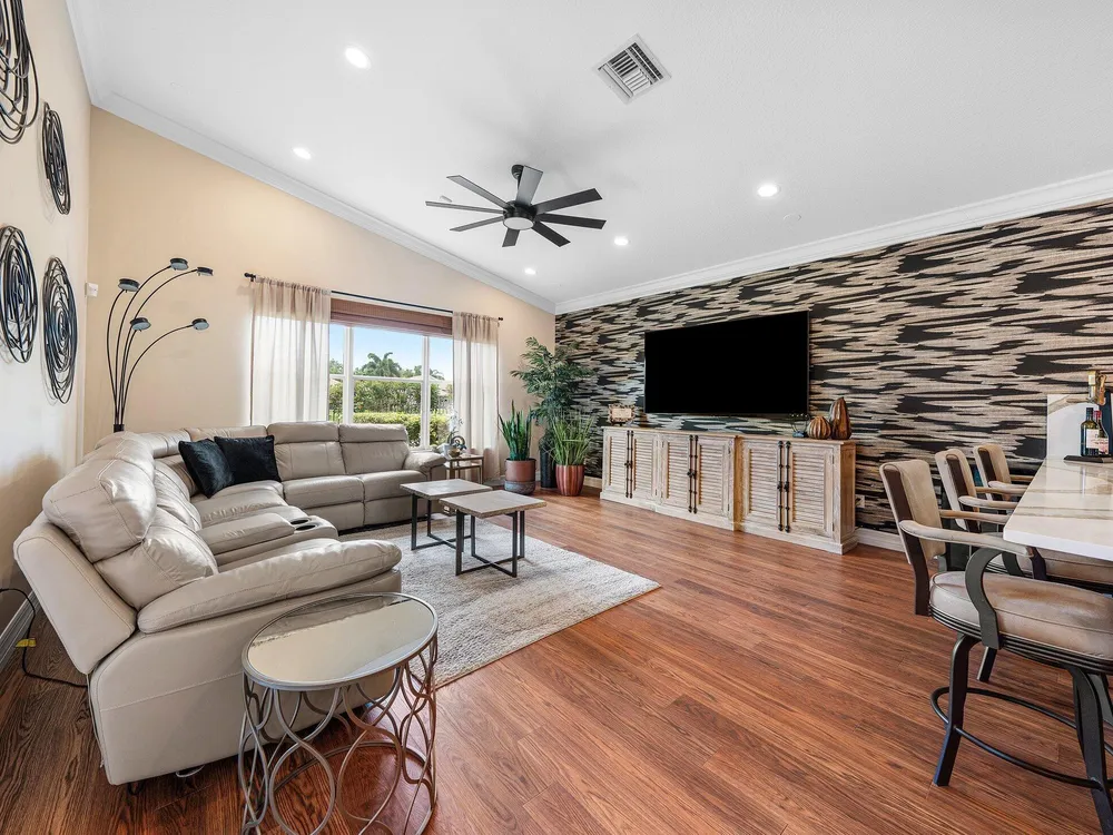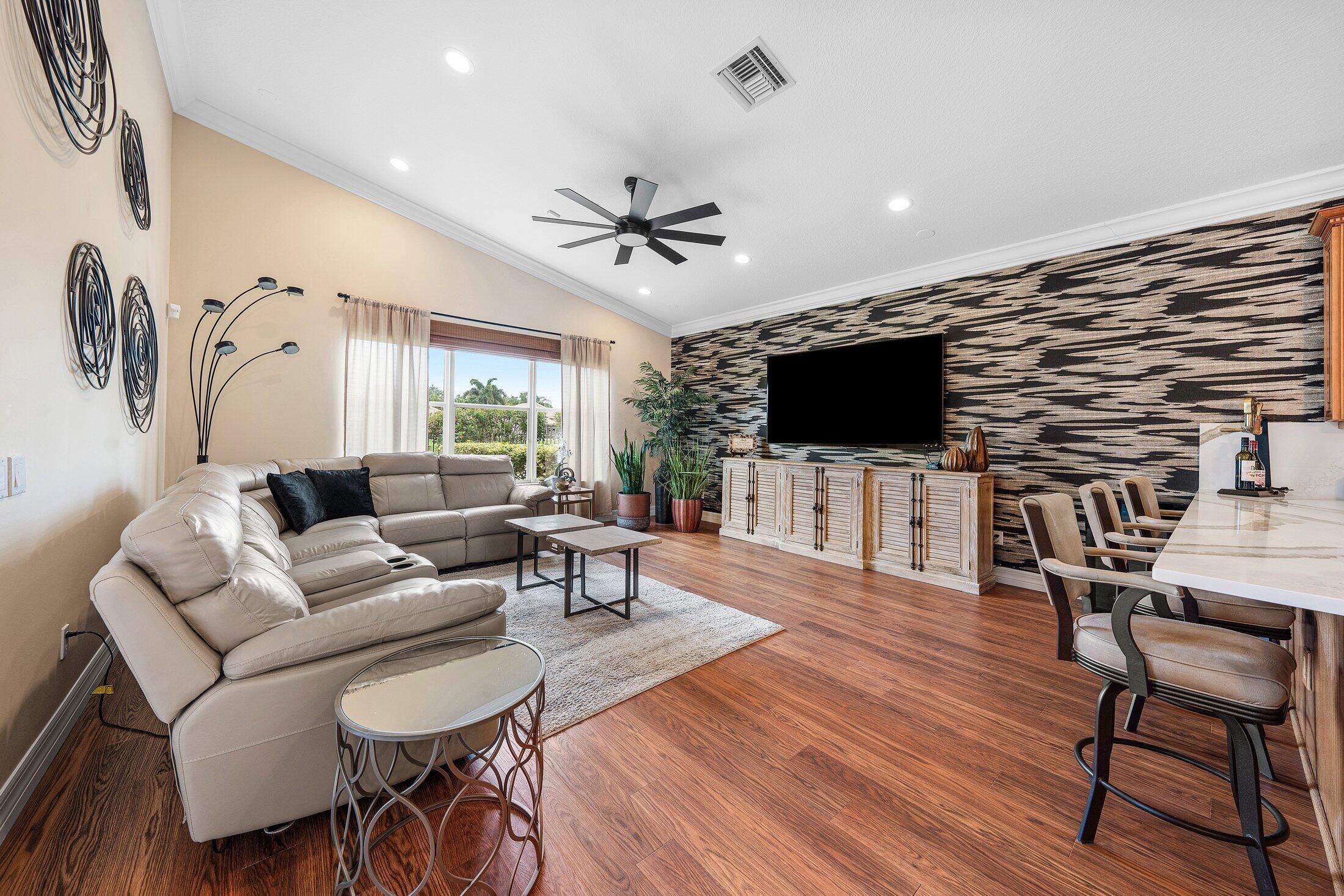 This gorgeous Madrid model features 3 bedrooms + den, 2.5 baths and beautiful lake views from the extended screen enclosed patio. Upgrade highlights include: a whole house generator, luxury vinyl planks, tons of kitchen and bath upgrades, solid core doors, central vacuum system, plantation shutters and Hunter Douglas blinds, custom closet systems, crown molding, French doors, front gutters, accordion shutters, upgraded landscaping and so much more. Please call for more details. HOA Fee includes lawn care, alarm monitoring, phone, cable and internet. Clubhouse recently renovated.