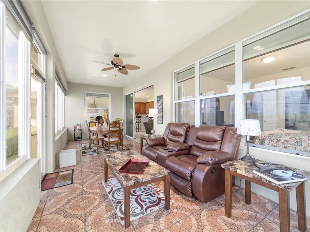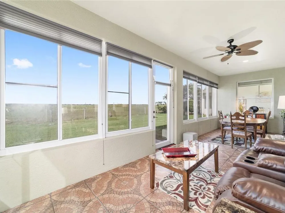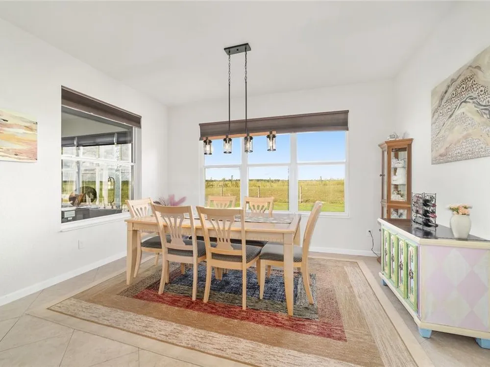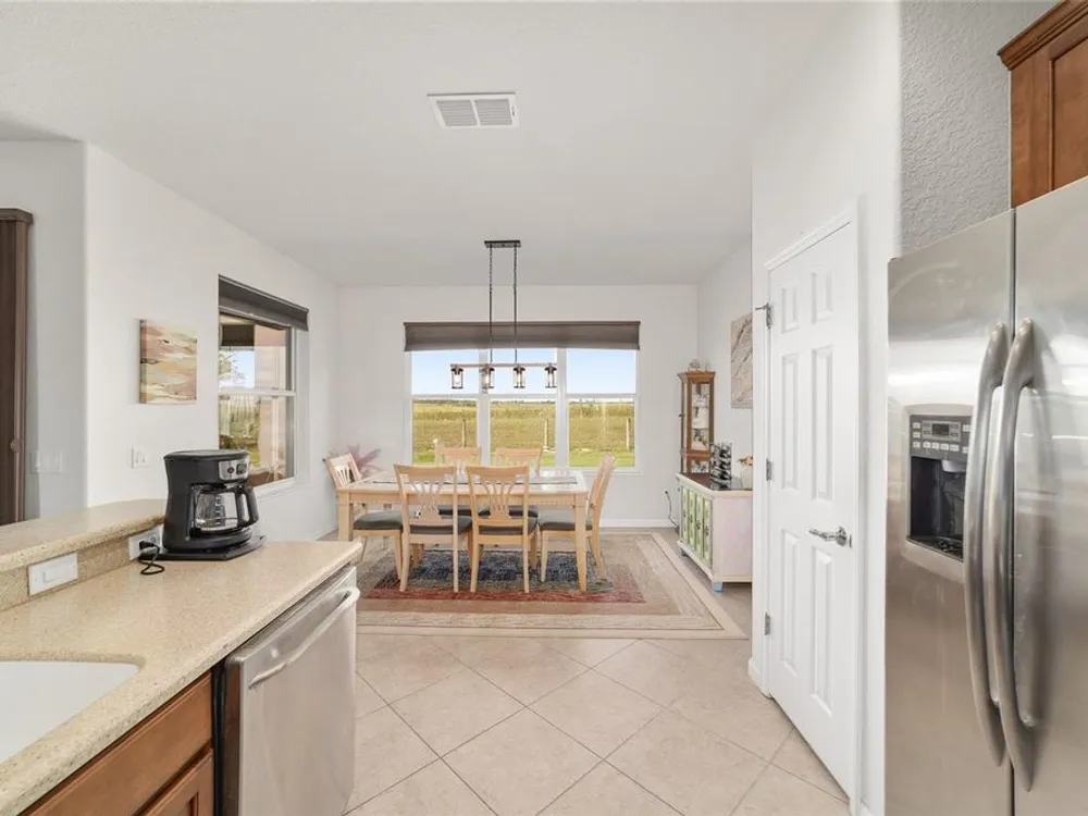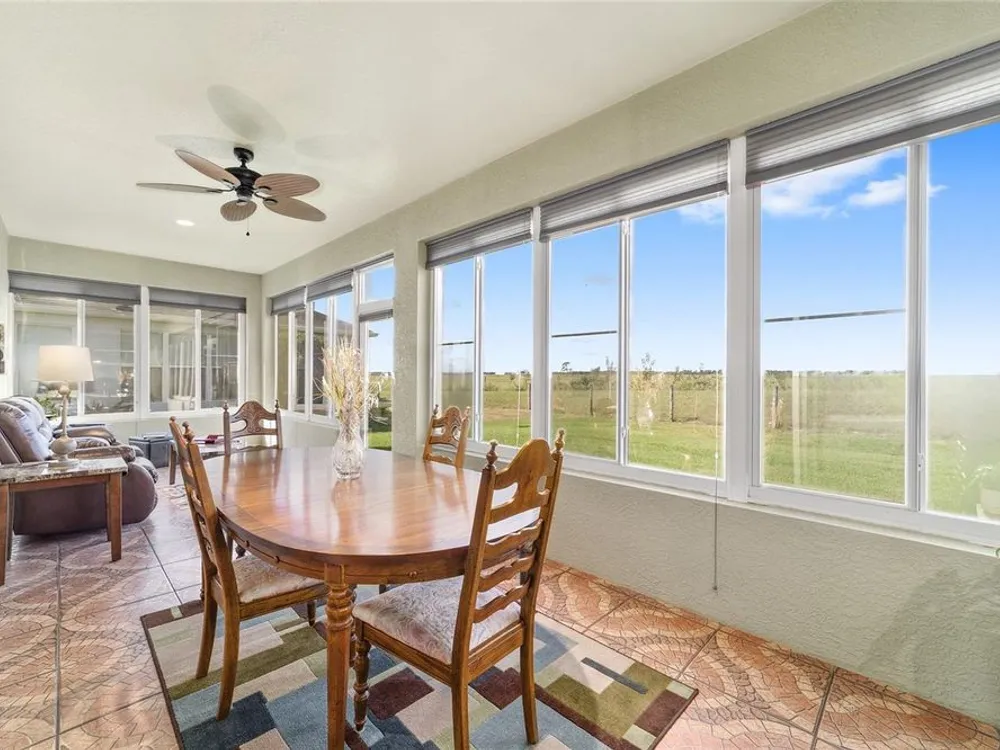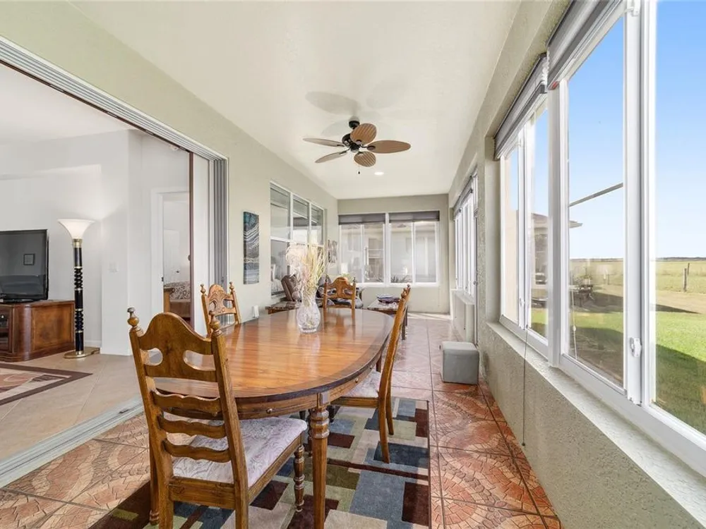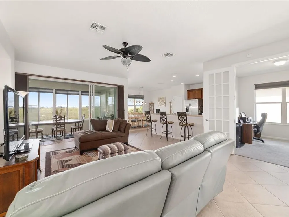 Welcome to Stone Creek by Del Webb Arlington. This charming two-bedroom, two-bath residence includes a flex office space, an open kitchen and a living area with high ceilings. The kitchen is appointed with stainless steel appliances, ample cabinetry and an attached eat-at bar for casual dining and entertaining. The primary suite offers a step-in shower, while the living area extends to an enclosed lanai with lots of windows with views of a neighboring farm. The backyard provides additional space for outdoor enjoyment. This home is part of Stone Creek by Del Webb, a resort-style community designed for an active lifestyle. The centerpiece is the Terry Doss championship golf course, complemented by an array of amenities. The newly built Waterstone clubhouse features a social bar, premium golf simulator, outdoor fireplace, multiple event rooms, amphitheater, bocce courts, billiards and large-screen televisions for sports viewing. The community’s location provides convenient access to shopping, dining, medical services and entertainment.