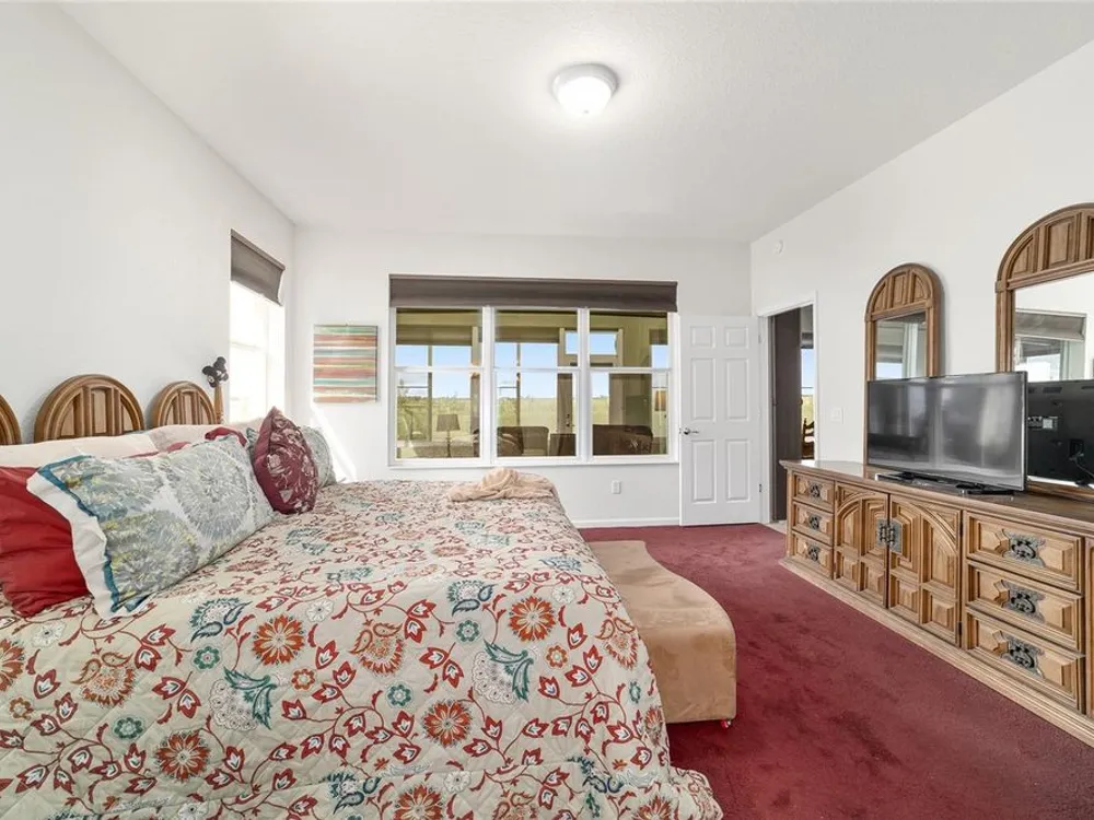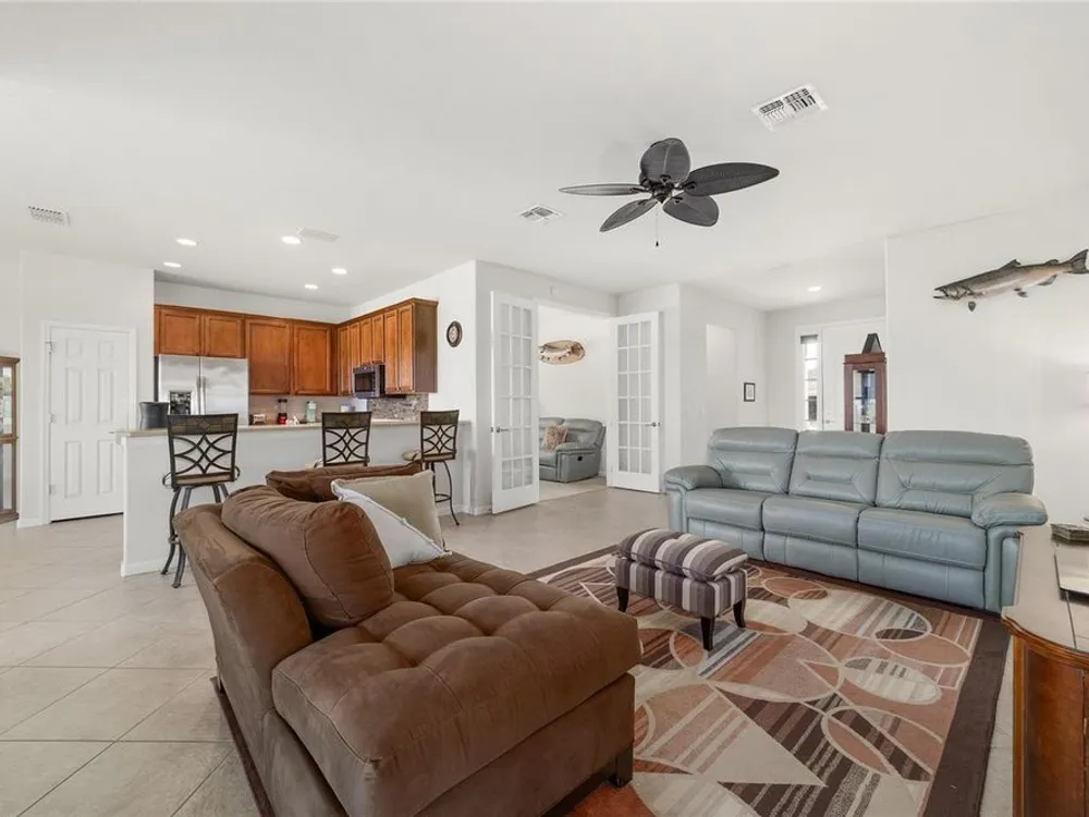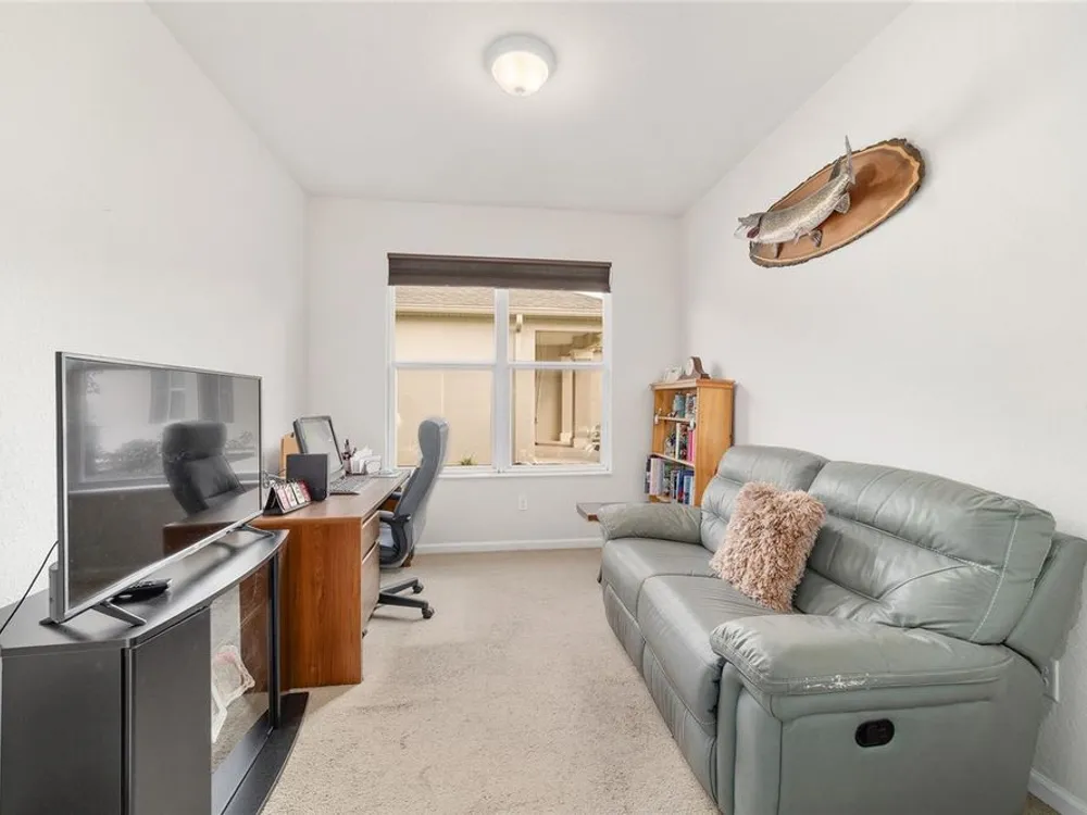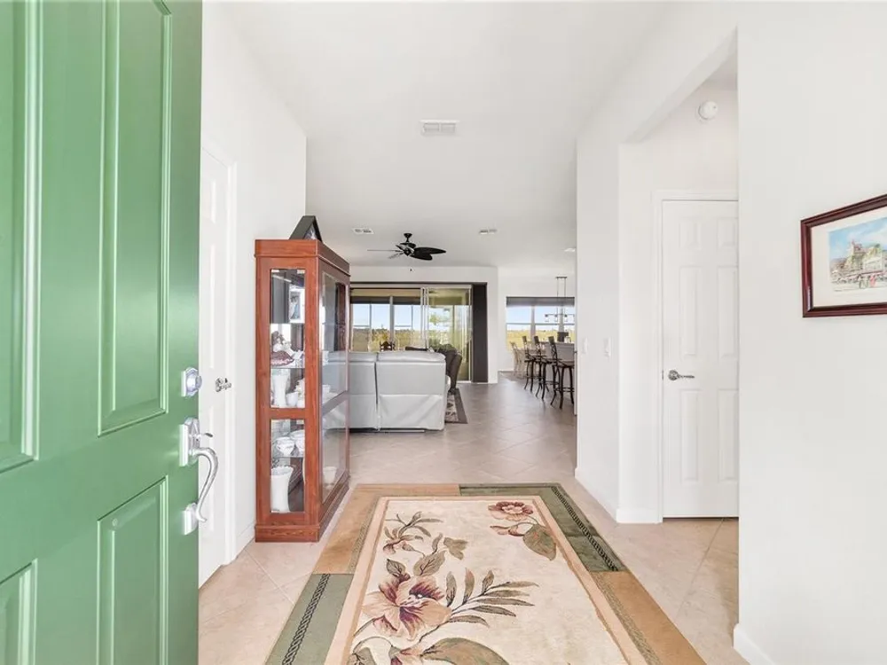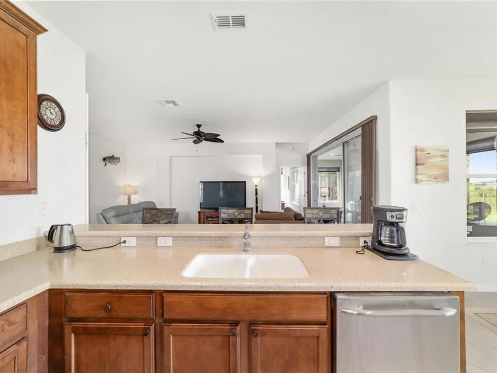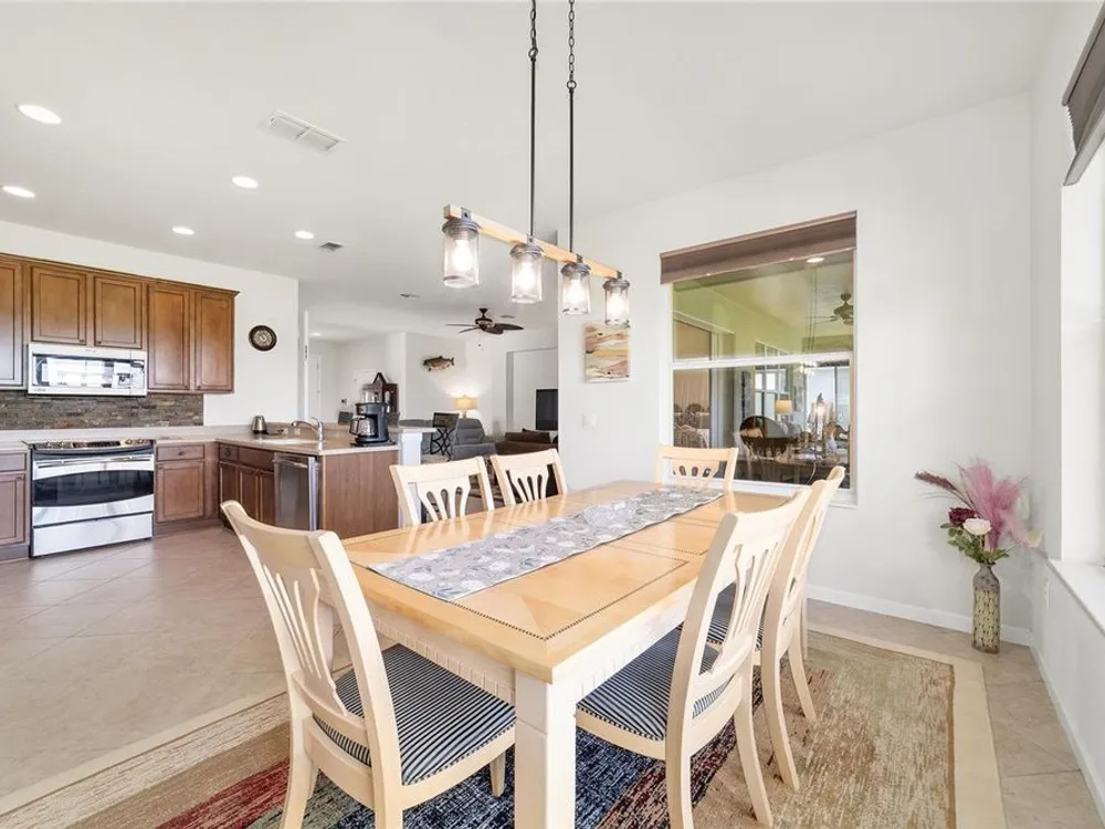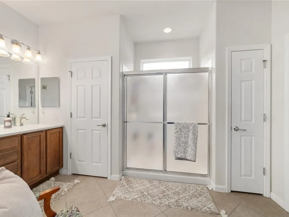Welcome to Stone Creek by Del Webb Arlington. This charming two-bedroom, two-bath residence includes a flex office space, an open kitchen and a living area with high ceilings. The kitchen is appointed with stainless steel appliances, ample cabinetry and an attached eat-at bar for casual dining and entertaining. The primary suite offers a step-in shower, while the living area extends to an enclosed lanai with lots of windows with views of a neighboring farm. The backyard provides additional space for outdoor enjoyment. This home is part of Stone Creek by Del Webb, a resort-style community designed for an active lifestyle. The centerpiece is the Terry Doss championship golf course, complemented by an array of amenities. The newly built Waterstone clubhouse features a social bar, premium golf simulator, outdoor fireplace, multiple event rooms, amphitheater, bocce courts, billiards and large-screen televisions for sports viewing. The community’s location provides convenient access to shopping, dining, medical services and entertainment.