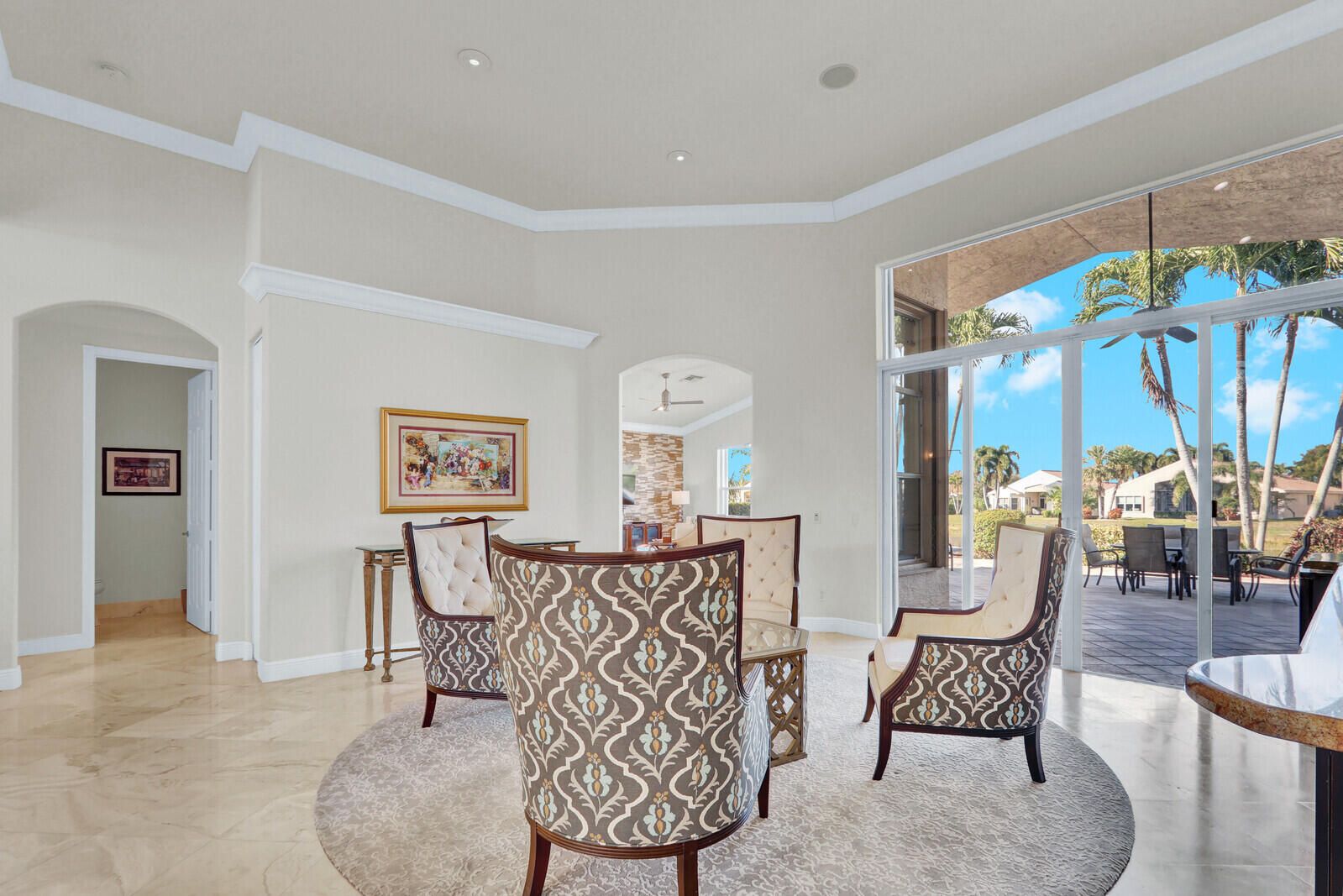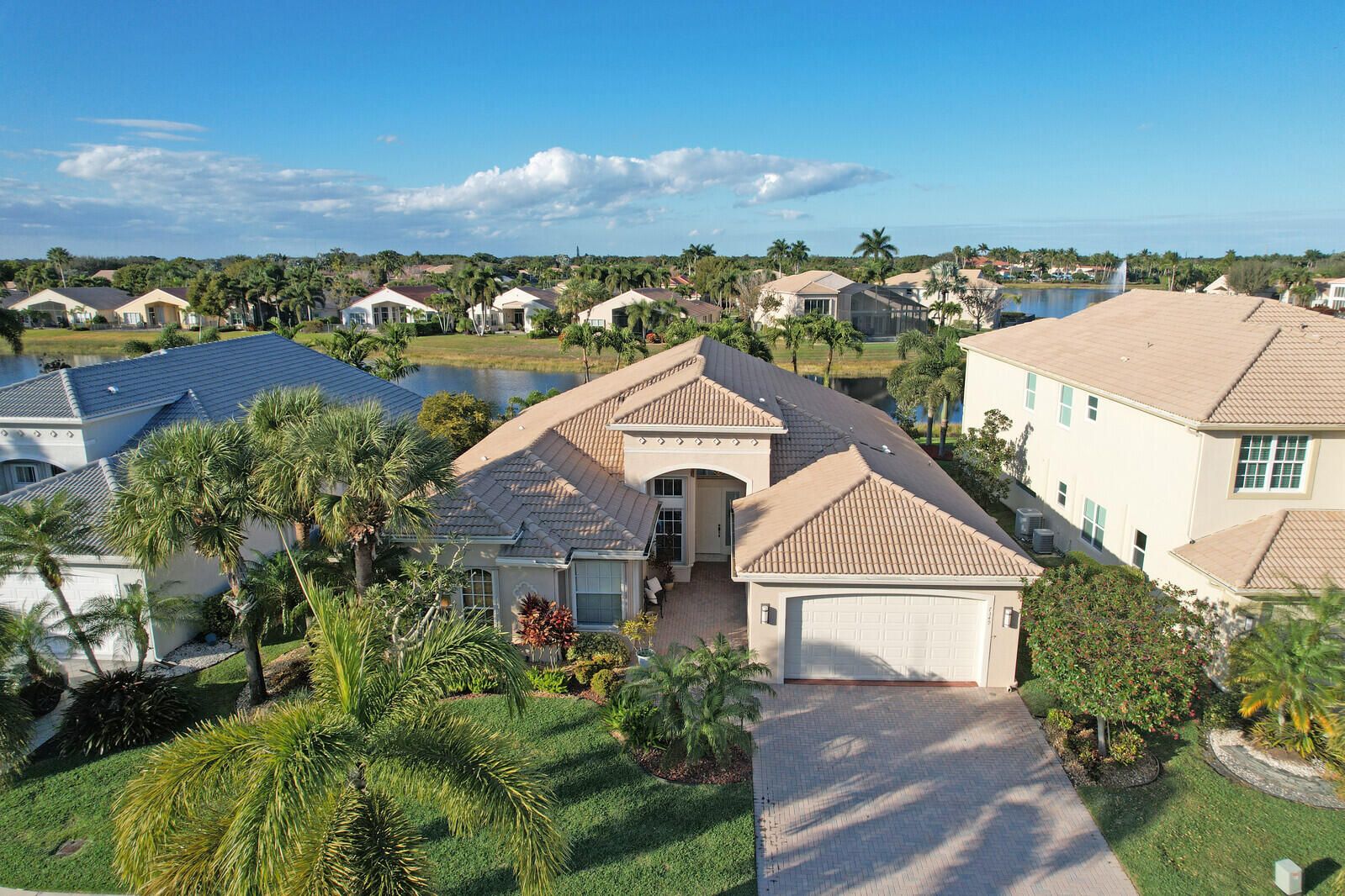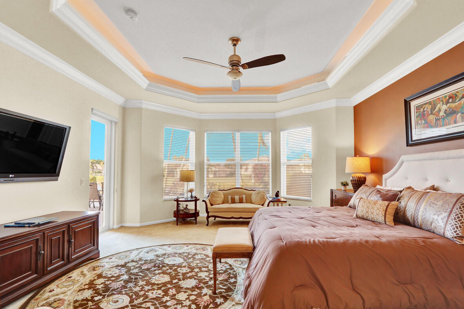 The ultimate Florida Lifestyle in the Vibrant 55+ Community of Valencia Palms. This fully furnished 4 Bedroom home has a seamless flow from the foyer to the double glass doors leading to the expansive backyard paver patio (2,000+ sf) and gorgeous lake views! A custom stone wall TV room is adjacent to the spacious kitchen with granite counters. The light-filled rooms and open floor plan have soaring ceilings throughout. The Primary Suite features a Sitting Area w/door to the patio, 2 Walk-in Closets & luxurious Bath w/dual vanities, oversized Shower & soaking tub. Three spacious Bedrooms, with one currently set up as an office. Resort Style Clubhouse features a Tropical Pool Setting w/Covered Cabanas, Lap & Resistance Pools, and an indoor/outdoor Cafe and full-service Fitness Center. Fitness Center has locker rms, steam rm & aerobics classes. Enjoy the outdoors with Har-Tru tennis, pickleball, bocce, basketball and walking/bike paths. For indoor entertainment there's a Grand Ballroom, three card rooms, and billiard tables for tons of fun! Quarterly Maintenance Fee includes Lawn Care, Cable, Internet, Exterior House painting & 24-hour Manned Security Gate!