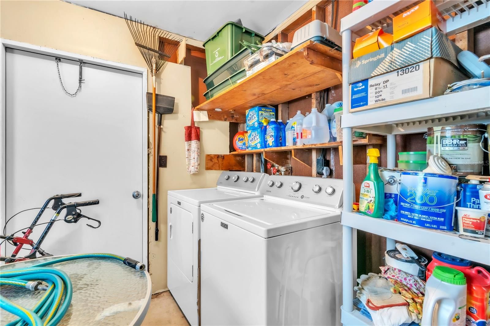 This single-family, two-bedroom, one-bathroom home is located in beautiful Sun City Center. A vibrant 55+ community where golf carts are as common as cars. This part of the community has NO HOA fees. This south-facing home has multiple high-dollar upgrades to include all windows being changed out in 2023 with impact grade windows to include the rear double sliding glass impact- doors. Also a new metal roof was added in 2021 and the A/C being replaced in 2020. Flooring was upgraded in 2015 and the washer and dryer are only 5 years old. The one car garage not only stores your car but also has a workshop in the rear which also stores your golf cart if you decide to have one. The bathroom was nicely updated and the home has been well maintained by the current owner since 1998.
