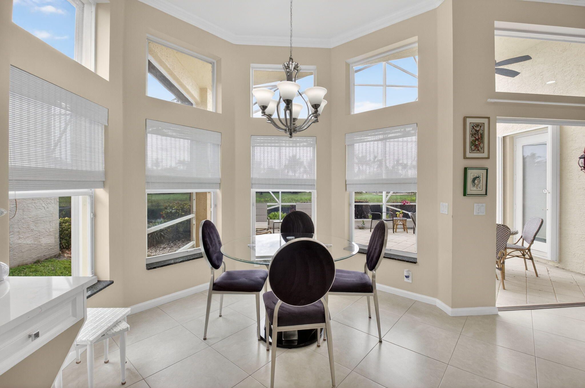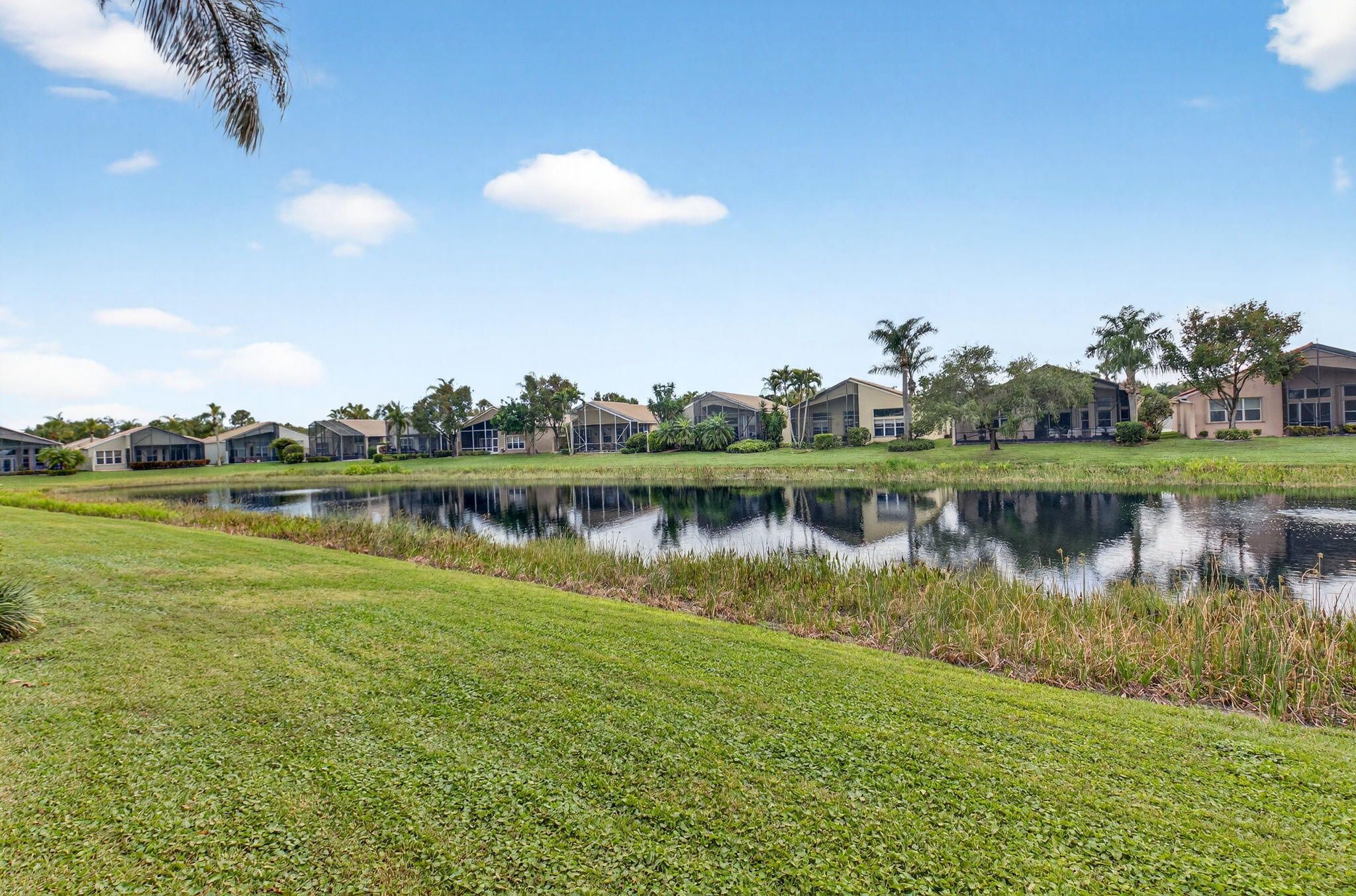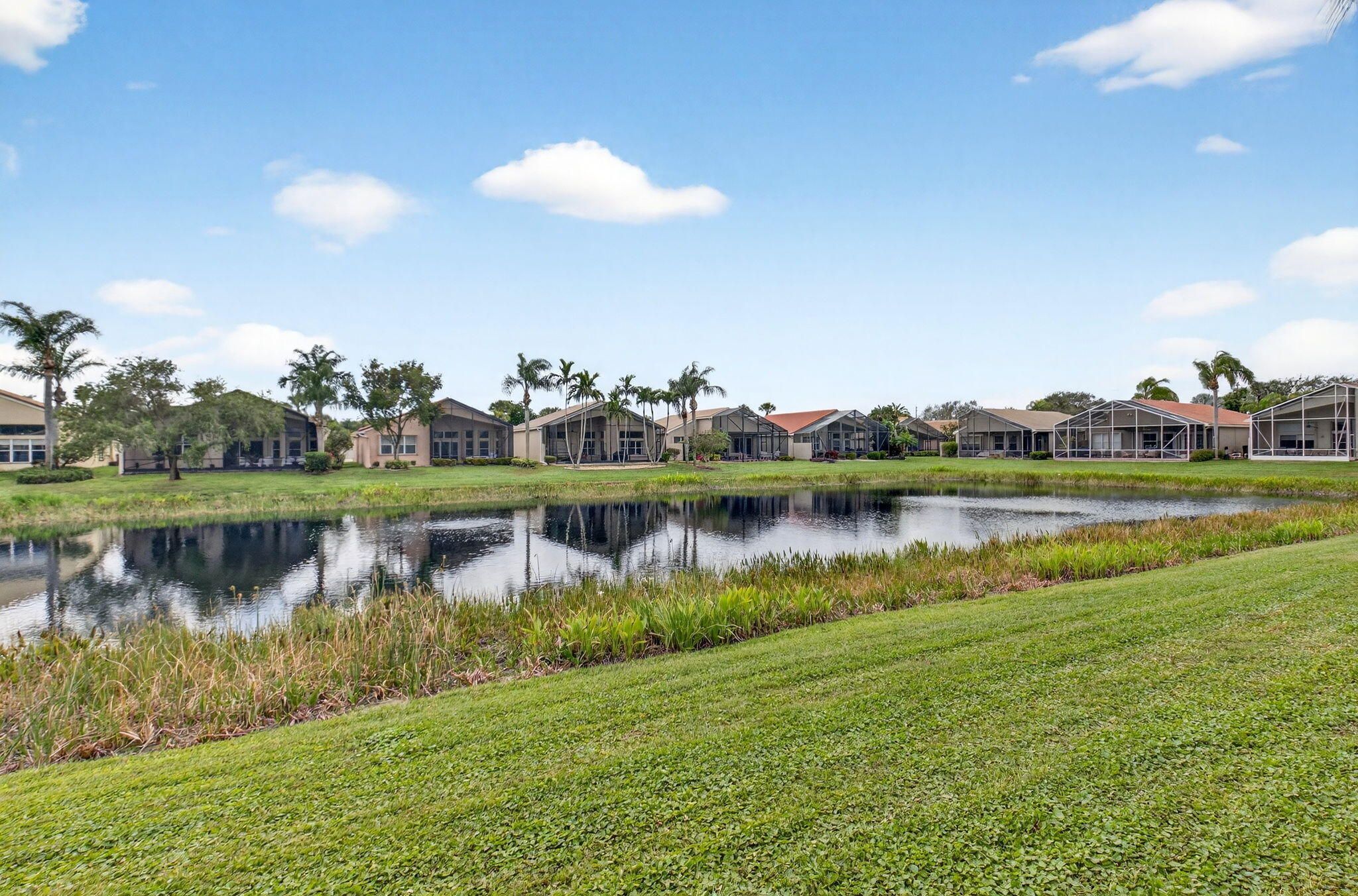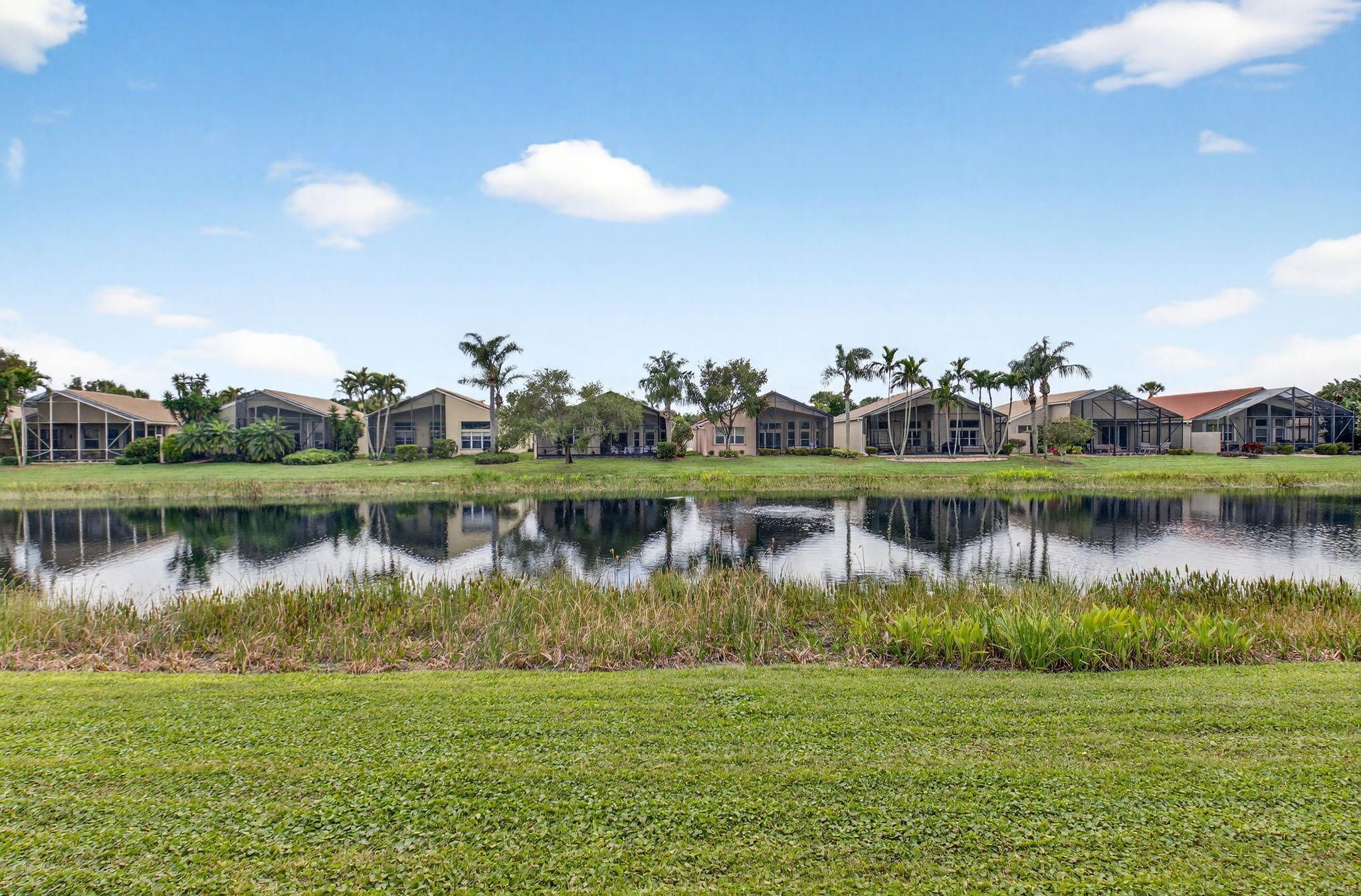 COME SEE THIS LOVELY CARIBBEAN MODEL ON THE WATER W/ A SPECTACULAR UPDATED KITCHEN. ENTER THE FOYER WITH DOUBLE TRAY CEILINGS AND IMMEDIATE VIEWS OF THE LAKE. THE DINING ROOM HAS BEAUTIFUL ARCHITECTURAL DETAIL IN THE CEILINGS ALSO. THE UPDATED KITCHEN HAS WHITE CABINETS W/ UNDER MOUNT LIGHTING, BOX MOLDING ON THE ISLAND, QUARTZ COUNTERTOPS, GLASS TILE BACKSPLASH, STAINLESS STEEL APPLIANCES & A BREAKFAST NOOK THAT OVERLOOKS THE LAKE. FAMILY ROOM HAS CROWN MOLDING, TELESCOPIC SLIDING DOORS & TRANSOM WINDOWS. PRIMARY BEDROOM W/ TRAY CEILING ALSO OVERLOOKS THE LAKE. THIRD BEDROOM USED AS OFFICE. SPACIOUS LAUNDY ROOM. POWDER ROOM HAS A LOVELY TRENDY VANITY. TOUR THE NEWER RENOVATED & EXPANDED CLUBHOUSE & NEWER PICKLE BALL COURTS. ALL MEASUREMENTS DEEMED ACCURATE & SHOULD BE VERIFIED .