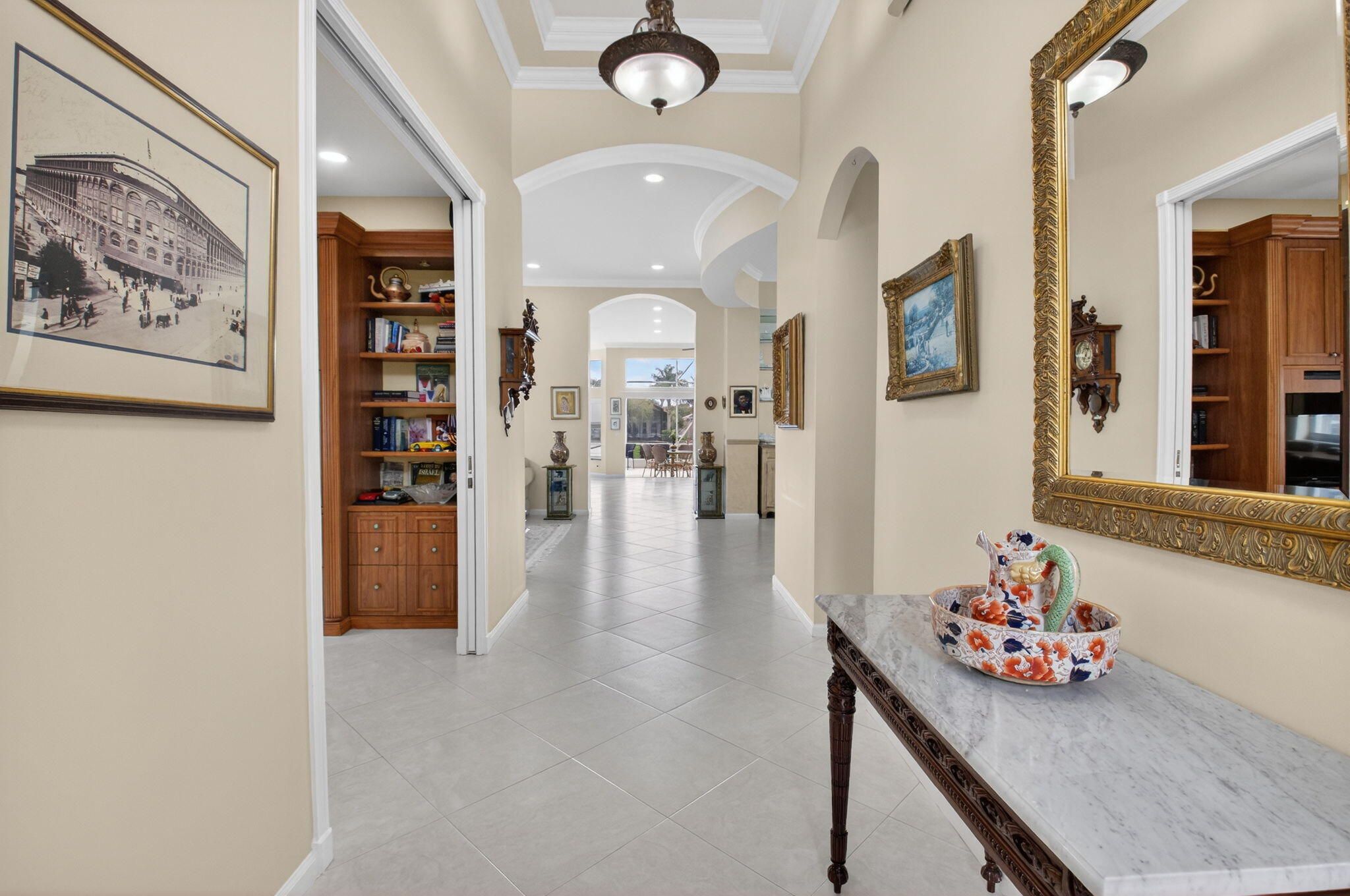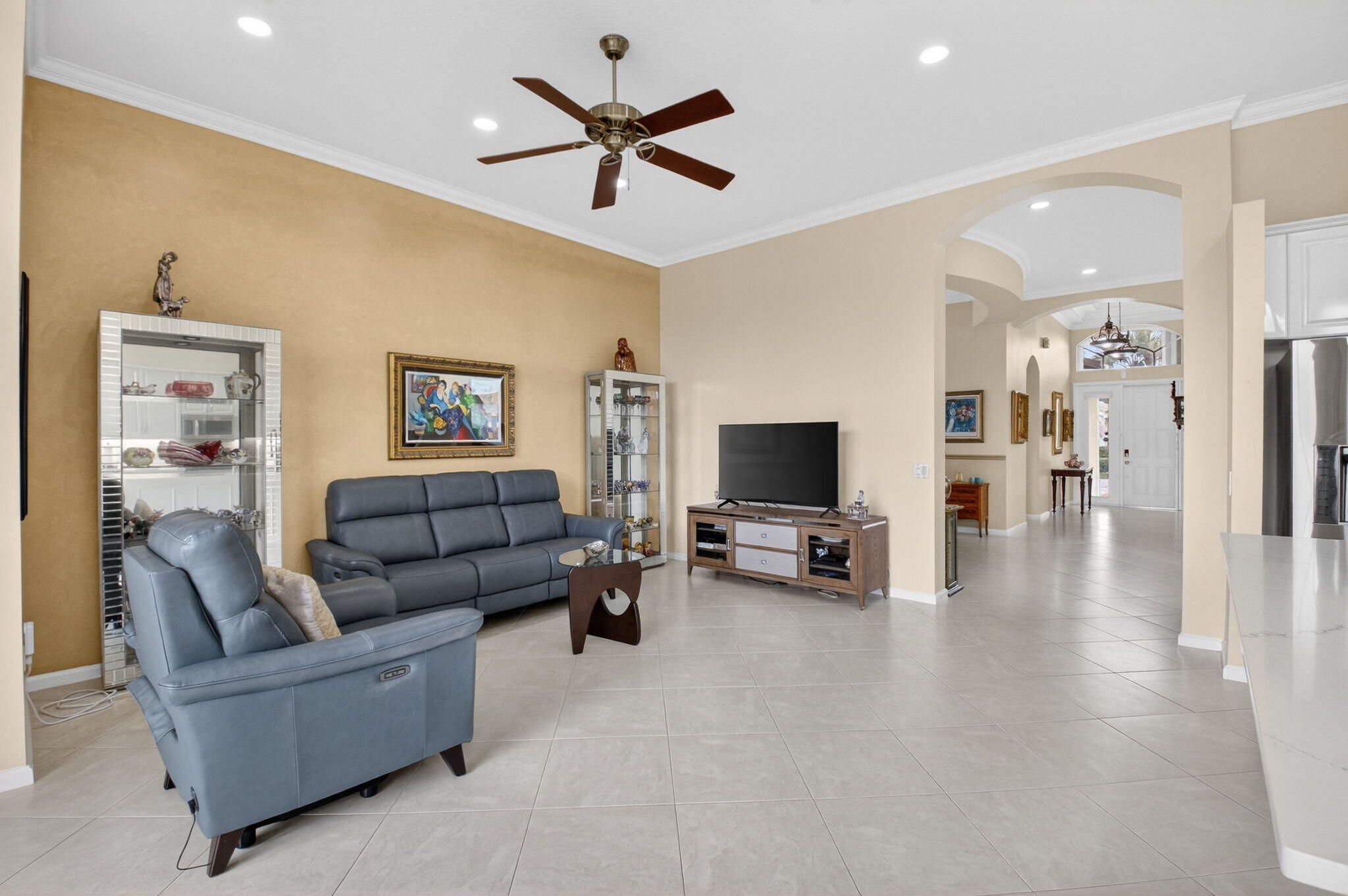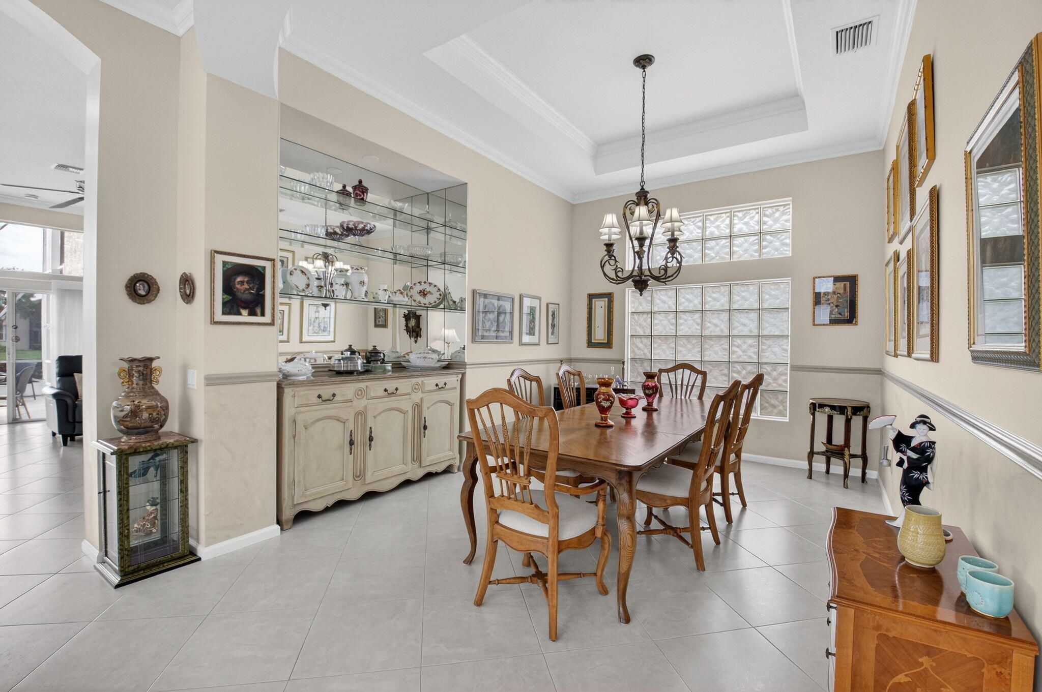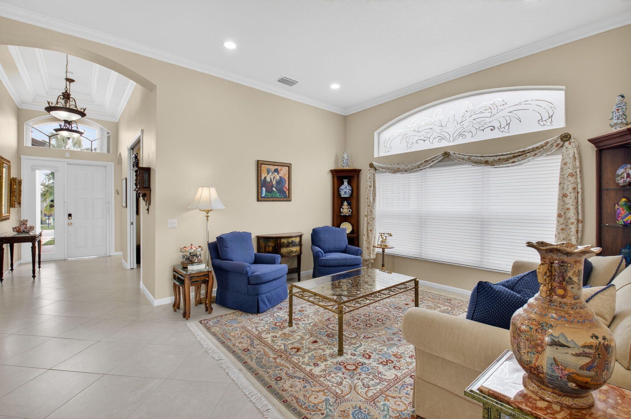 COME SEE THIS LOVELY CARIBBEAN MODEL ON THE WATER W/ A SPECTACULAR UPDATED KITCHEN. ENTER THE FOYER WITH DOUBLE TRAY CEILINGS AND IMMEDIATE VIEWS OF THE LAKE. THE DINING ROOM HAS BEAUTIFUL ARCHITECTURAL DETAIL IN THE CEILINGS ALSO. THE UPDATED KITCHEN HAS WHITE CABINETS W/ UNDER MOUNT LIGHTING, BOX MOLDING ON THE ISLAND, QUARTZ COUNTERTOPS, GLASS TILE BACKSPLASH, STAINLESS STEEL APPLIANCES & A BREAKFAST NOOK THAT OVERLOOKS THE LAKE. FAMILY ROOM HAS CROWN MOLDING, TELESCOPIC SLIDING DOORS & TRANSOM WINDOWS. PRIMARY BEDROOM W/ TRAY CEILING ALSO OVERLOOKS THE LAKE. THIRD BEDROOM USED AS OFFICE. SPACIOUS LAUNDY ROOM. POWDER ROOM HAS A LOVELY TRENDY VANITY. TOUR THE NEWER RENOVATED & EXPANDED CLUBHOUSE & NEWER PICKLE BALL COURTS. ALL MEASUREMENTS DEEMED ACCURATE & SHOULD BE VERIFIED .