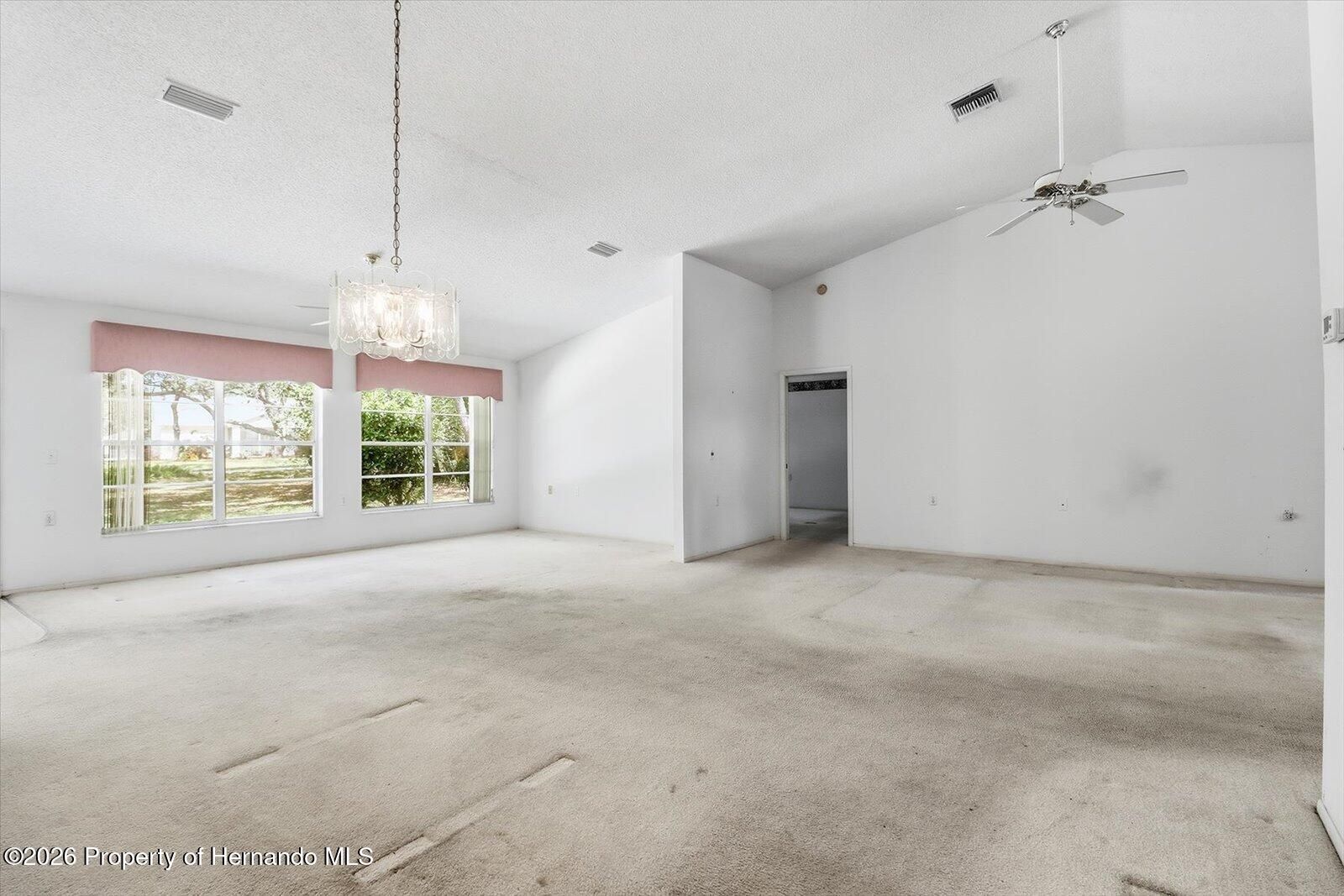 PRICED TO SELL! An 1,815 SQ FOOT HOME WITH LOTS OF POTENTIAL. This is a great price for the space and location in a beautifully maintained section of Timber Pines. Spacious layout. Bright and cheerful home with cathedral ceilings. This home has 2 bedrooms, 2 bathrooms and a 2-car garage. All the rooms are great size. The master bedroom has two walk-in closets, and dual sinks. The nice size den is a great place to relax, and watch tv. This gated community provides a country club lifestyle with 4 golf courses, community pools, restaurant, pickleball courts, fitness center tennis courts and much more. Easy access and just minutes away from the Weeki Wachee River, the gulf, shopping, restaurants, Publix and the Veterans Expressway that takes you to Tampa International Airport in no time.