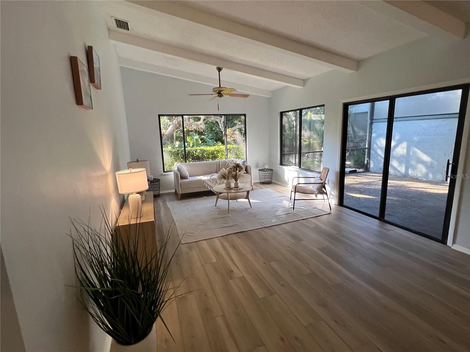 Discover the potential of this spacious three bedroom, two bath condominium located in the heart of Sarasota, Florida, within the desirable Bent Tree community in Hammocks III. Offering 2,124 square feet of living space, this home features a generous floor plan designed for comfortable living and entertaining. Brand new flooring and Kitchen cabinets and counter tops as well as new vanity's in both bathrooms. One of the highlights of the property is the generously sized outdoor living space, perfect for relaxing, and would make a great outdoor living space. Residents also enjoy access to a community pool, ideal for unwinding and socializing. Brand new Kitchen and Bathroom vanity's as well as new flooring throughout. Conveniently located near shopping, dining, and Sarasota’s renowned beaches, this condominium offers exceptional potential in a sought-after setting.