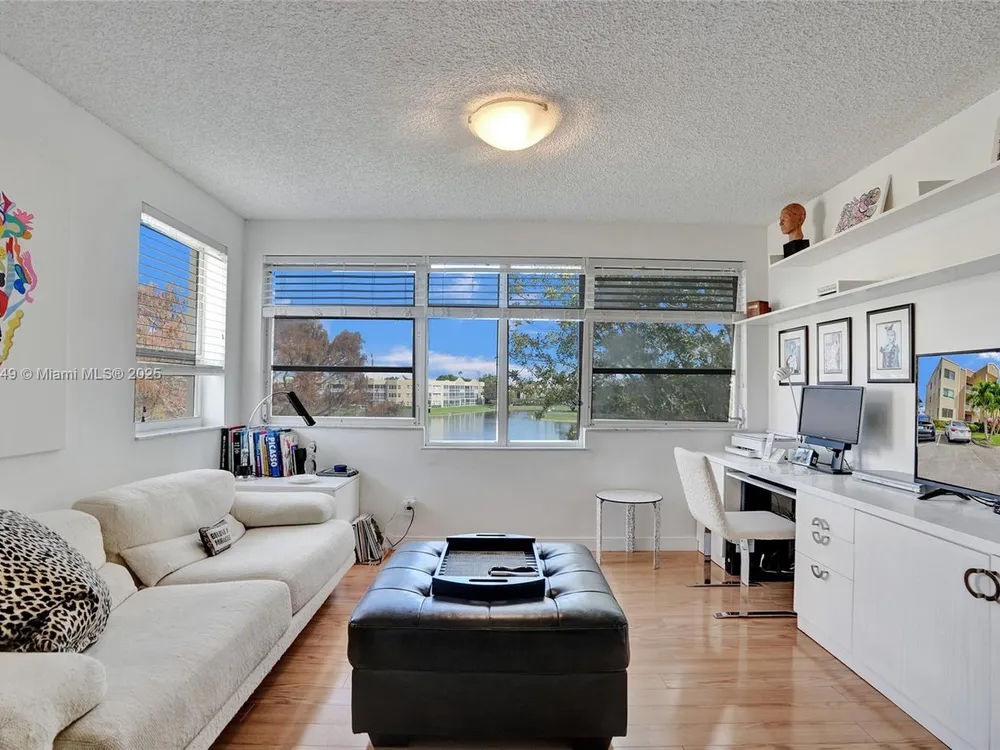 Location, Location, Location! Highly coveted corner unit condo with gorgeous water views. Bright and cheerful lakefront condo with spacious 2 beds and 2 full baths. Beautiful contemporary built-ins. This 55+ property offers an open-concept design with laminate flooring throughout the main areas. Brand new carpeting in primary suite. Washer/Dryer in separate laundry room with extra storage and more. Gated community, building has an elevator and dedicated parking in front. Great location with fabulous clubhouse with theater, heated pool, billiard room, business center and huge equipped gym, arts and crafts, pickleball, tennis, ping pong and more. Close to Sawgrass Mills, restaurants, shops and more. Courtesy bus available. NEW ROOF with (no special assessment).