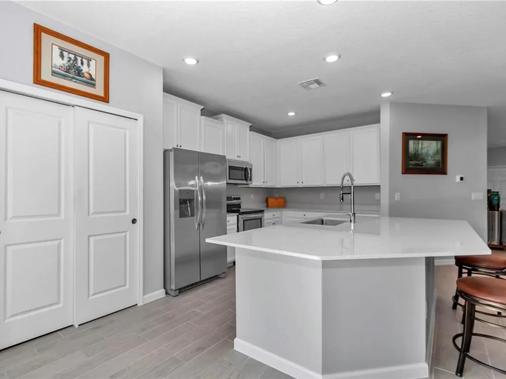 Elegant 4-Bedroom Home in Premier 55+ Community – Minutes from World Equestrian Center. This beautifully upgraded 4-bedroom, 2-bath home combines style, comfort, and functionality in one stunning package. Located in a vibrant 55+ community, this residence offers a luxurious yet low-maintenance lifestyle just 15 minutes from the World Equestrian Center and close to top dining, shopping, and Sholom Park. Step inside and be wowed by: Gorgeous 42" white cabinets with crown molding, Quartz countertops, and a large island – perfect for entertaining. Wood-look tile flooring throughout all living areas for warmth and elegance. Spacious primary suite with a huge walk-in closet, dual vanities, and a large walk-in shower. Modern upgrades, including soft grey paint, designer ceiling fans, epoxy-coated garage & lanai floors Enjoy Florida living with: A rolling glass wall opening to the covered, screened lanai – your private retreat. Paver walkways, landscaping with decorative curbing, and gutters throughout. Garage key pad & pull-down attic stairs for added storage and convenience Community amenities (opening soon) include Covered Pavilion & Community Pool, Pickleball, Shuffleboard, and Bocce. Plenty of opportunities for recreation and socializing. Prime Location: Close to restaurants, shopping, and entertainment. Perfect for those seeking a blend of peaceful living and easy access to local attractions. YOUR NEXT CHAPTER STARTS HERE!