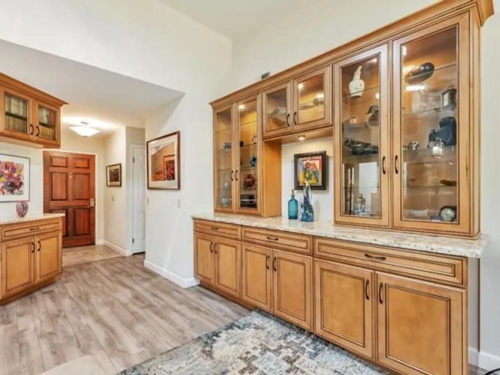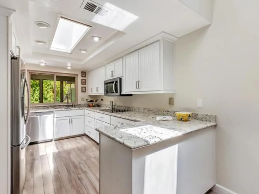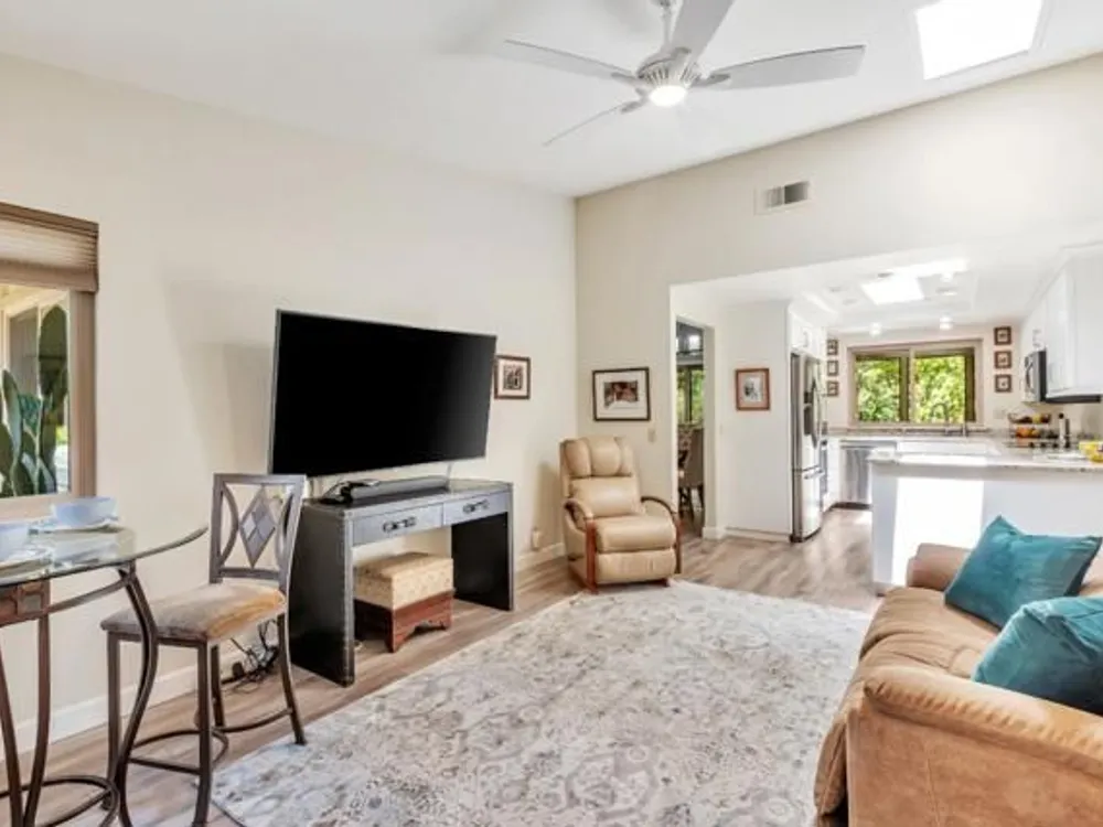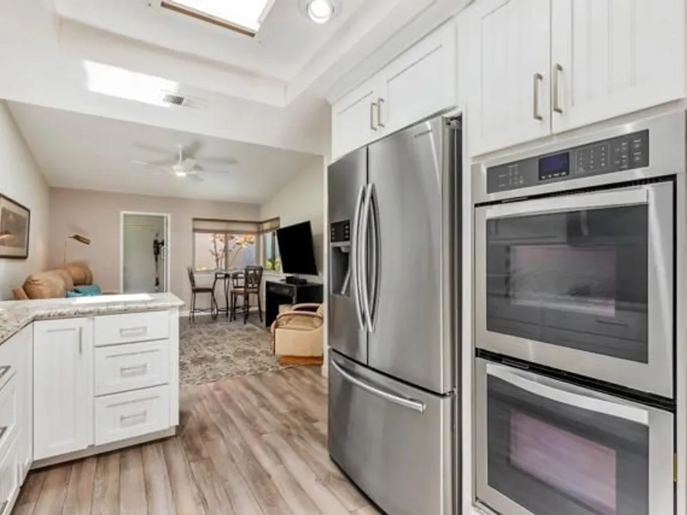 Extremely sunny bright, full of natural light well remodeled home is awaiting for you! Nestled at the end of the court & surrounded by private View of park-like trees & common area. Iron gate leads into inviting court yard with many beautiful plants & flowers. Open floor plan with oversized windows, custom maple cabinetry, high ceilings large dining room area opens into screened porch. The sliding serving window connects screened porch with totally new kitchen. Stainless steel appliances, beautiful new cabinetry, granite countertops along with skylights this kitchen is open family room. Both full bathrooms are exquisitely remodeled and a 10+! Two large bedrooms & an office with French doors, bar sink, built ins is customized to support crafts/ work/ arts/ hobby room. It can become your Third bedroom if needed. Separate laundry room, attached 2 car garage with additional parking nearby makes this home an amazing find! The Villages, 55+ gated, secured community. RESORT lifestyle not found anywhere else! Walk to meet friends at the bistro, bar, restaurant, be a part of any of 60 +clubs. Play golf, pickleball, tennis, bocce ball; hike, swim, dance/ sing/ theater, yoga, gym, garden, park RV, golf cart. Relax & enjoy if you are still working or happily retired!