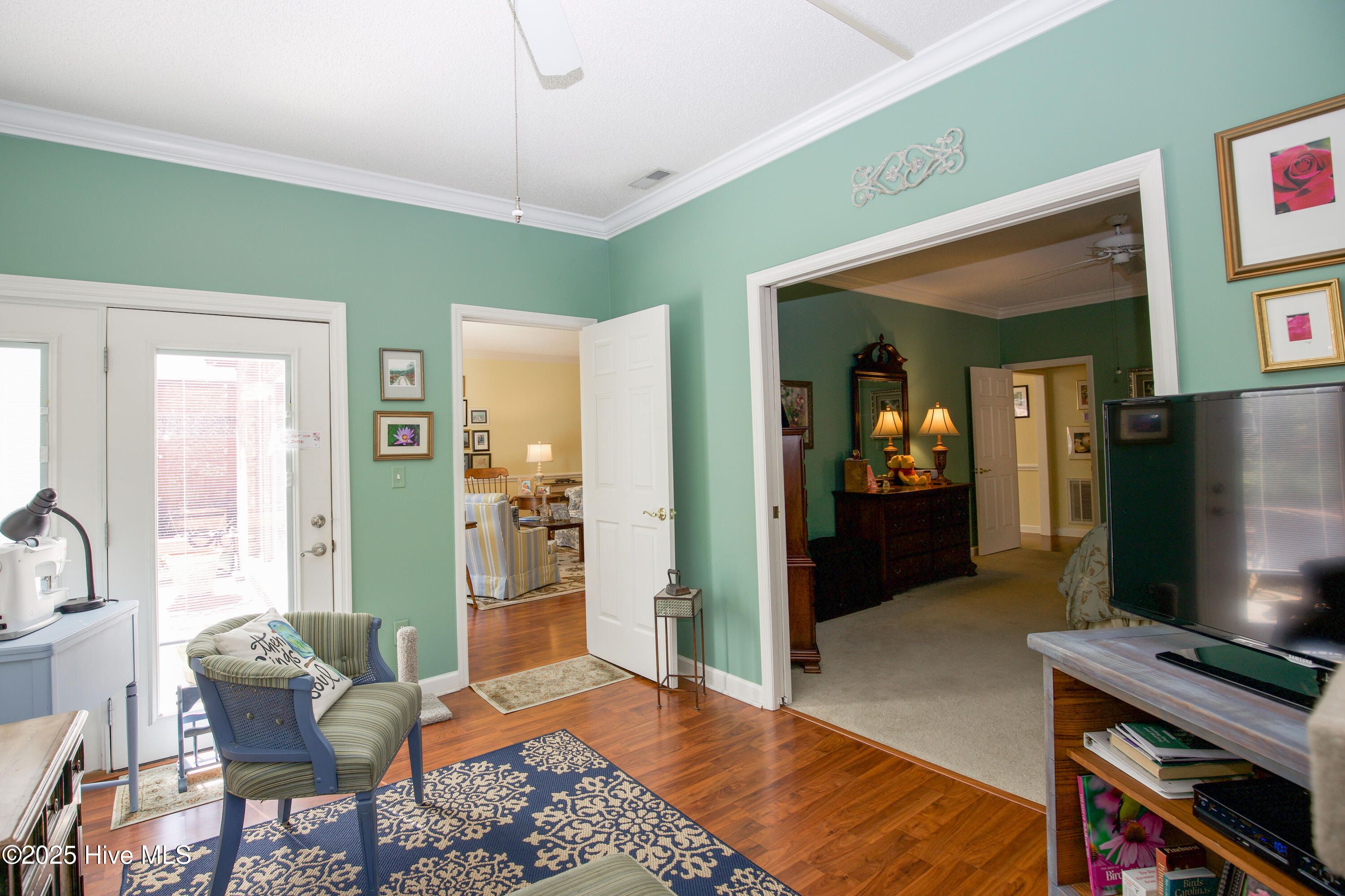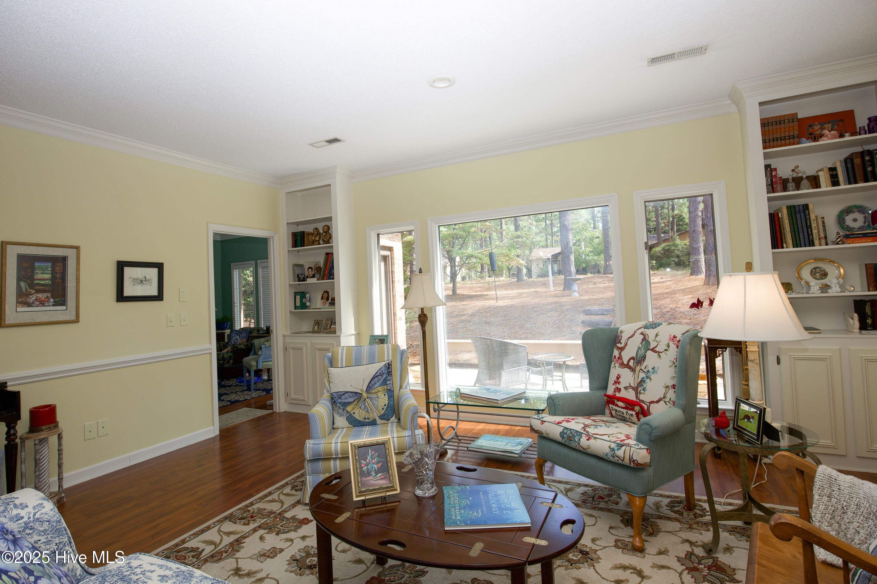 Knollwood Village is a desirable neighborhood in Southern Pines, conveniently located off scenic Midland Road and close to restaurants, shopping and fabulous golf courses. This two bedroom, two bathroom home is spacious and has been meticulously maintained. Features split bedroom plan. Primary bedroom is spacious and opens to light filled Carolina room. The front enclosed brick patio is charming and offers lots of privacy. Flooring is laminate/engineered hardwoods in living areas, ensuite bathroom has been updated. Don't miss your opportunity to own a single story lock and leave home. Knollwood offers golf and pool.