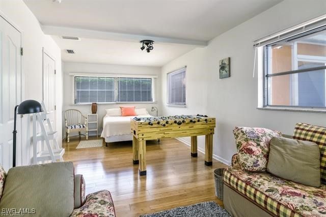 Prime location near downtown Naples, mall, shopping areas, restaurants, sugar-sand beaches and private beach facilities. Oversized beautifully landscaped lot. Build your dream home, remodel this home for yourself or rent it out. Sold As-Is with right to Inspect. Attached garage was converted in additional bedroom, bathroom and closet in 2014. Separate two-story garage building in rear for three or more cars, boat, kayak, etc. (Also has 2-story air-conditioned workshop, office or art studio.) The home stayed high and dry during Hurricane Ian and is located in a highly desirable X-zone. Moorings residents will appreciate the voluntary Moorings Beach club