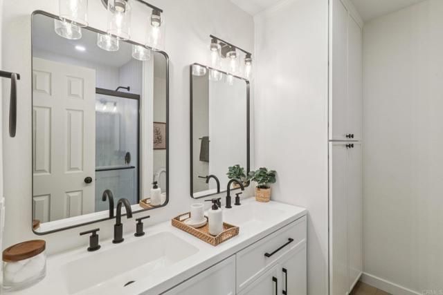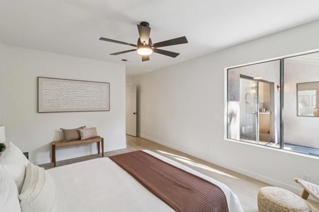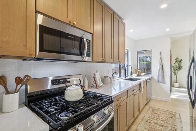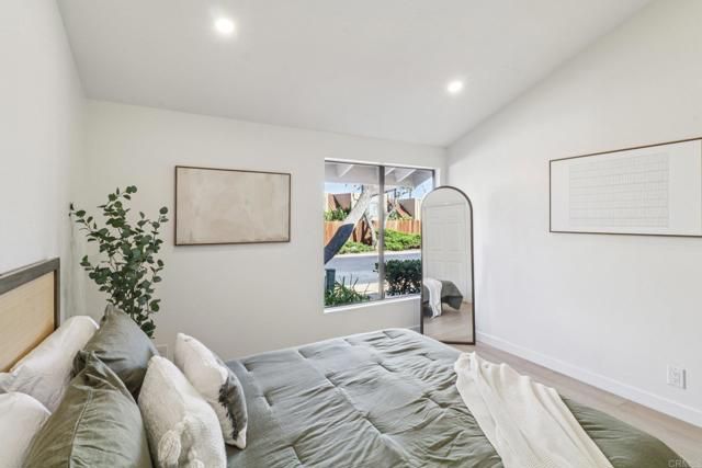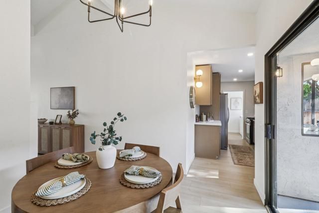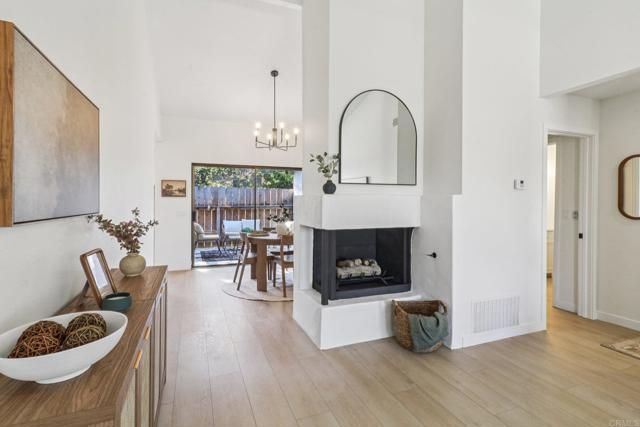 Introducing this fully remodeled 2-bedroom home in the highly sought-after Nob Hill 55+ community. Every detail has been thoughtfully updated, creating a modern and comfortable retreat. Step inside to find vaulted ceilings and a spacious floorplan filled with natural light. The home features luxury vinyl plank flooring and recessed LED lighting throughout. The kitchen shines with modern oak cabinets, quartz countertops, and brand-new appliances, offering a clean and contemporary look. Both bathrooms have also been remodeled, with the primary suite showcasing a double vanity with linen storage and a tiled shower, while the guest bath features all-new vanities and fixtures. Additional upgrades include a new water heater, new doors, hardware, exhaust fans, a freshly stuccoed fireplace front and a new garage door on the finished garage. Sliding glass doors off the dining room open to a private patio, and drought-tolerant landscaping adds curb appeal out front. Community amenities include a pool, spa, and RV parking. Plus, the home is just minutes from shopping, dining, and entertainment in downtown Vista, adding to its convenience and appeal. With its stylish upgrades, thoughtful details, and prime location, this Nob Hill gem is move-in ready and waiting for its next chapter.