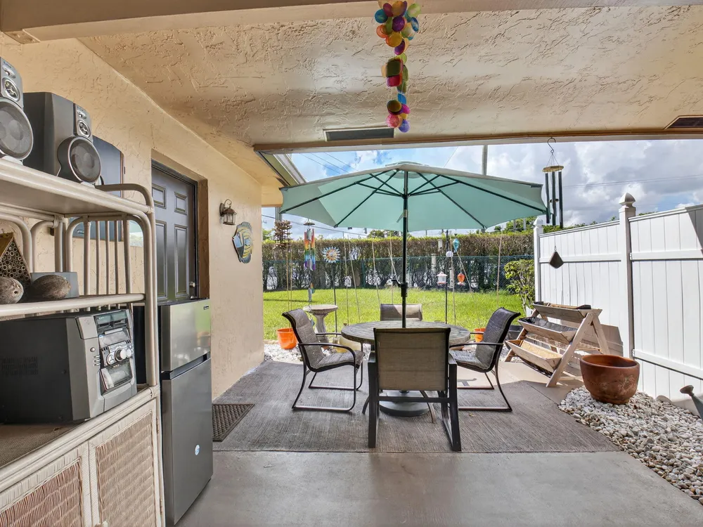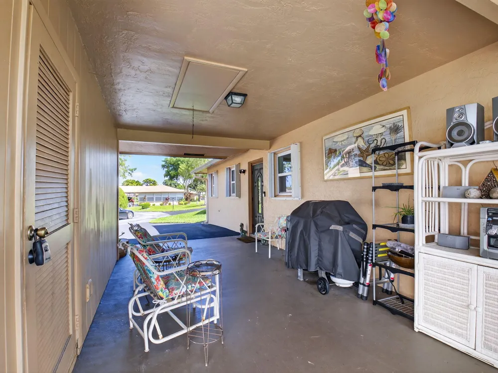 Pride of ownership is evident from the moment you step into this COMPLETELY RENOVATED CORNER VILLA, spacious, bright and airy 2BR/2BA villa w/carport, feels like a Single family home. PORCELAIN TILE THROUGHOUT, BATHROOMS ALL REDONE , NEW ROOF, HURRICANE WINDOWS PLUS SHUTTERS, NEW TOP LINE A/C UNIT & APPLICANCES. THE KITCHEN & ISLAND, HAS LOTS OF COUNTER SPACE. THE MASTER SUITE WITH WALK IN CLOSET HAS A REMODELLED BATHROOM THAT IS LIGHT AND STYLISH. GUEST BEDROOM WITH AN ENSUITE BATHROOM HAS BEAUTIFUL NATURAL LIGHT. WASHER/DRYER IN STORAGE AREA. LARGE PRIVATE LOT, WITH PATTIO AREA AND CAR PORT .