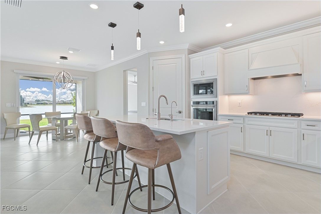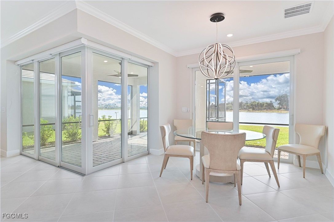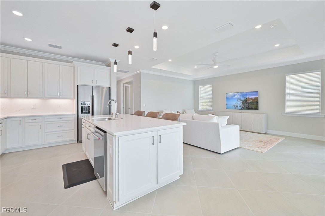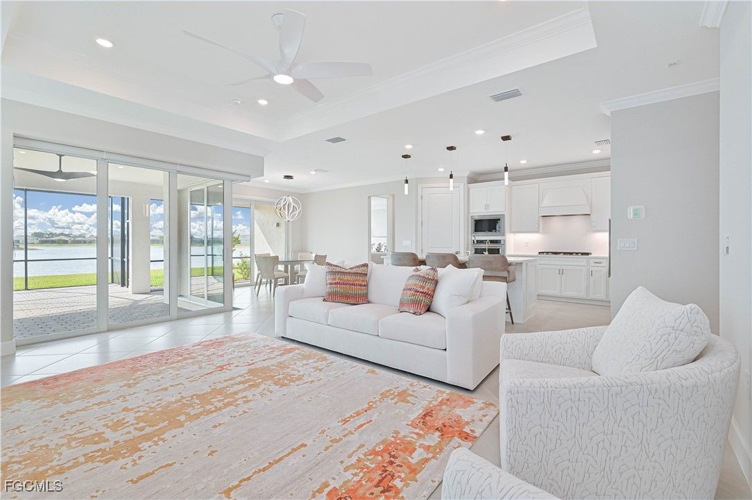 Welcome to this brand new 2025, move-in-ready 3-bedroom + den, 2-bath home located in the highly sought-after Del Webb Oak Creek 55+ community. This stunning residence is offered with all brand new, high-end furniture, custom lighting, ceiling fans, and recessed lighting throughout—every detail thoughtfully curated. The open floor plan showcases 8-foot doors, crown molding, tray ceilings, and expansive living spaces designed for both comfort and style. A zero-entry pocket sliding door leads to an extended lanai overlooking the largest lake in the community, creating seamless indoor-outdoor living. An additional sliding glass door in the dining area further enhances natural light and views. The gourmet kitchen features high-end KitchenAid appliances, a gas cooktop, quartz countertops extended up the backsplash, and 42-inch white cabinetry throughout, including an upgraded laundry room package with cabinets and sink and upgraded Washer and Dryer. Plantation shutters and custom blinds add elegance and privacy, while a reverse osmosis water treatment system, smart home features, and upgraded HVAC system provide modern efficiency and peace of mind. The spacious primary suite offers a tranquil retreat with a large walk-in shower and an enormous walk-in closet. Secondary bedrooms and a versatile den provide flexibility for guests, office space, or hobbies. Residents of Del Webb Oak Creek enjoy resort-style amenities, including a pool, fitness center, pickleball, tennis and bocce courts, the Oak House restaurant, and a spectacular 17,000-square-foot amenities center—all within a vibrant, active community. This exceptional home combines luxury finishes, lakefront living, and an unmatched lifestyle. A rare opportunity not to be missed.