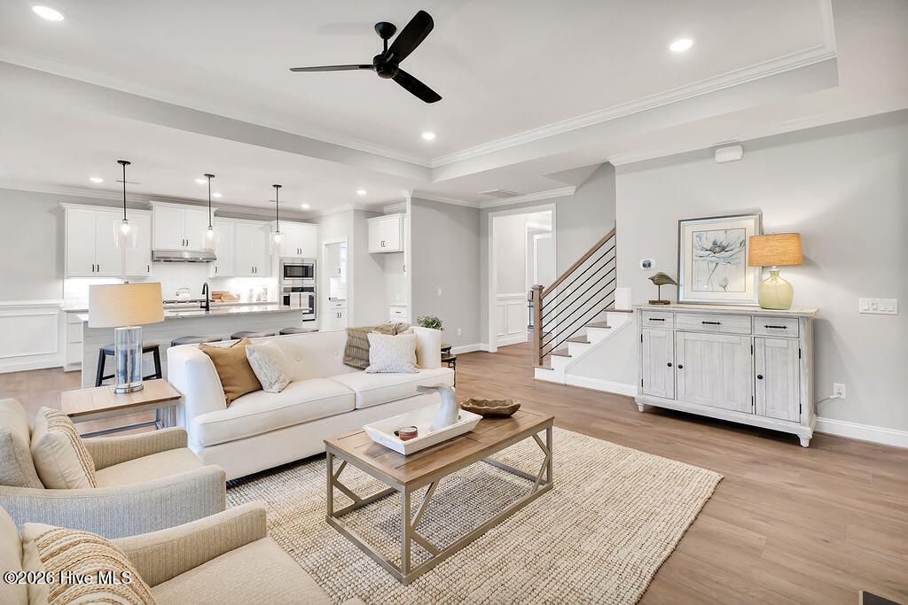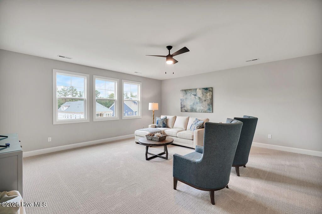 This Lumina Island model by Kent Homes offers the perfect combination of relaxed, spacious living and effortless entertaining. The open-concept great room includes a cozy fireplace, built-in cabinetry, and bi-parting doors that open to a screened-in loggia—ideal for seamless indoor-outdoor living. The executive kitchen features a separate messy kitchen, formal dining area, and an expanded laundry room for added functionality. The luxurious primary suite includes a spa-like bath and an oversized walk-in closet offering ample storage. Upstairs, you'll find a large bonus room with a walk-in closet and full bath—perfect for guests, a media room, or home office.