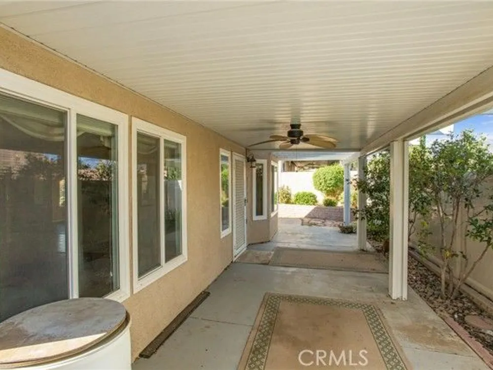 Are you looking for the perfect 55+ gated community that offers quality, beauty, affordability and so many amenities that your new home may offer? Well, you have found it in Serrano del Vista in south Banning, just blocks from Interstate 10. This immaculate home with spacious rooms offers 2 bedrooms, 2 baths, a separate dining room, central heat and air, vaulted ceilings in the living room that also has a fireplace and kitchen with lots of storage space, tile and laminate flooring throughout. Additional features include an attached 2 car garage with opener. a beautiful covered patio and lush plants. The clubhouse is only one of the amenities this community has to offer with a gym/exercise room, pool and spa, tennis and sports courts, meeting/card room, billiards and beautiful walking paths. Property is minutes away from Casino Morongo, the Premium Outlet Stores at Desert Hills in Cabazon, and the resorts of the Coachella Valley. Don’t wait to call for a tour.