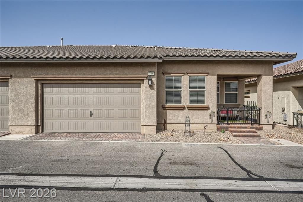 What Gorgeous Views of the Strip and Downtown From this Immaculate Home. Only Steps Away From the Award Winning Clubhouse. Features Include: Wood Style Tile Flooring Throughout, Remote Controlled Window Blackout Shades in Living Room. Great Size Living Room, Dining Area and Gourmet Kitchen Offering Expresso Cabinetry, Granite Countertops, Stainless Steel Appliances, Expansive Pantry. Primary Bedroom is Accented with Additional Living Space Ideal for Sitting Area or TV Salon. Primary Bath is Equipped with Dual Sinks, Roomy Walk-In Shower Adjacent to Walk-In Closet with Custom Design Storage System. The Covered Paver Patio Front Porch is Facing the World Famous Las Vegas Strip.