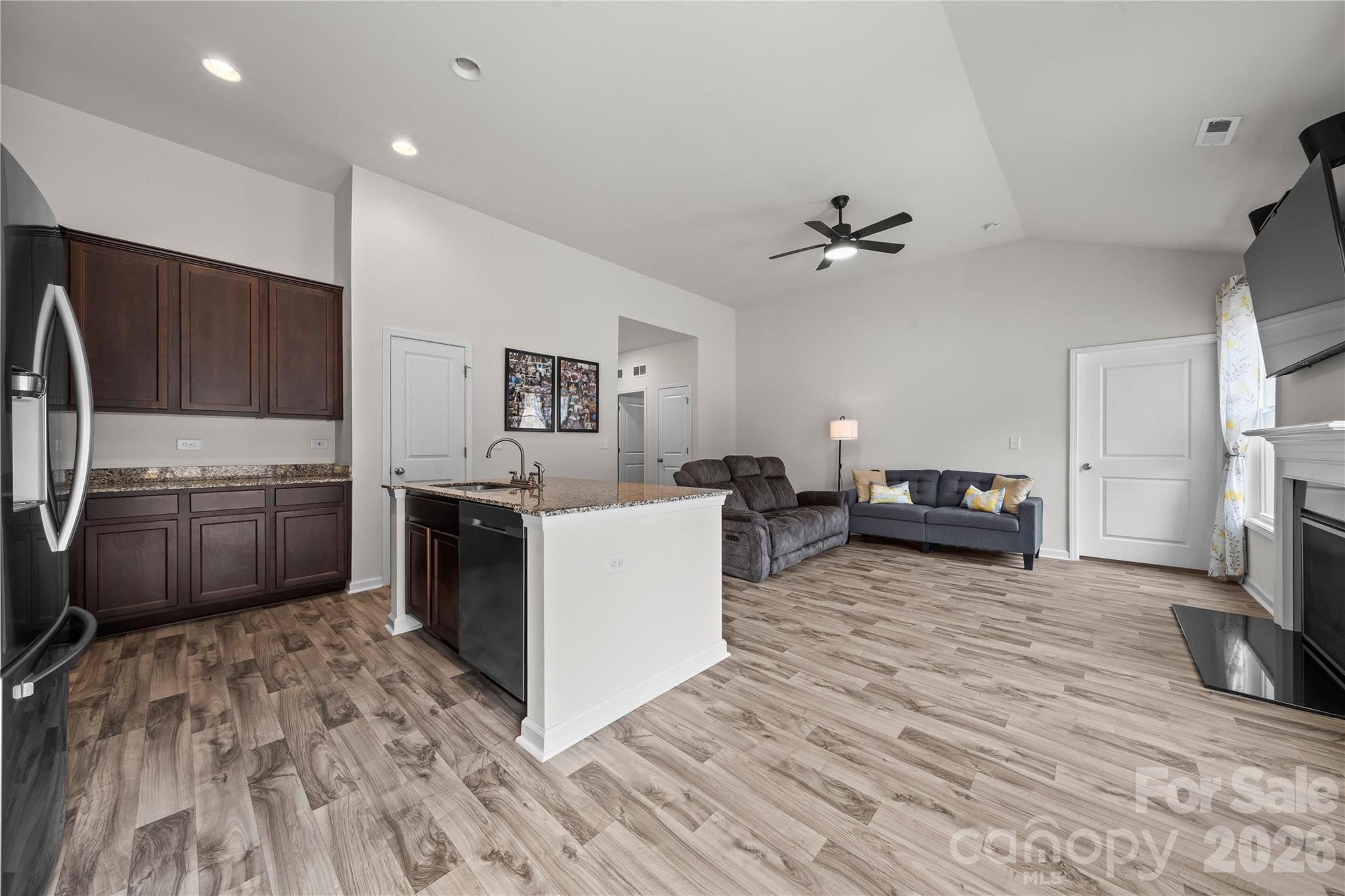Welcome home to highly desirable Kinsley in Denver! This 3 bed 2 bath ranch with 2 car garage in a wonderful 55+ community is Move-In ready and waiting to be your next home! Open floorplan offers roomy kitchen featuring a breakfast island, stainless steel appliances, granite, plenty of work and storage space. Large living area with fireplace and dining area that opens to backyard with concrete patio perfect for entertaining. Primary bedroom features lovely en-suite with dual vanity, walk-in shower with large seating, private lav, large walk-in closet. Two more bedrooms each with W.IC. share full bath. Laundry room, pantry, LVP, ceiling fans, neutral colors thru-out. Preferred lot backing to woods. Lawn maintenance inc with HOA. Excellent location convenient to shopping, dining, Hwy 77 and 485, and gorgeous Lake Norman. This is the one you have been searching for!