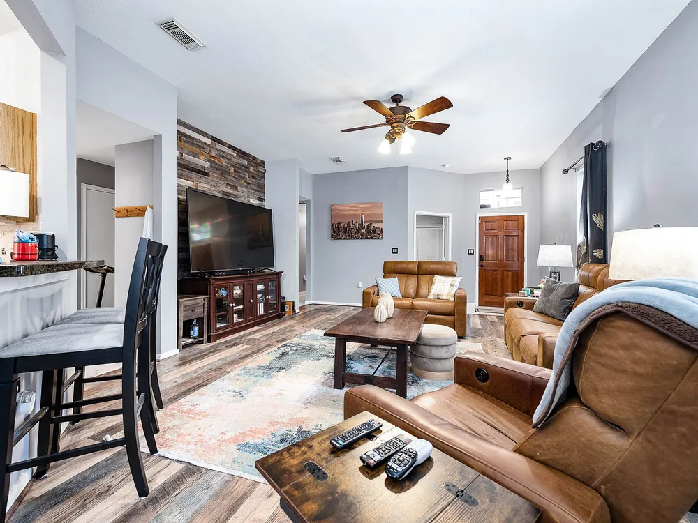 - Breakfast Bar, Double Vanity, Kitchen/Family Room Combo, Tub Shower, Makeup/Vanity Space, Ceiling Fan(s), Kitchen/Dining Combo