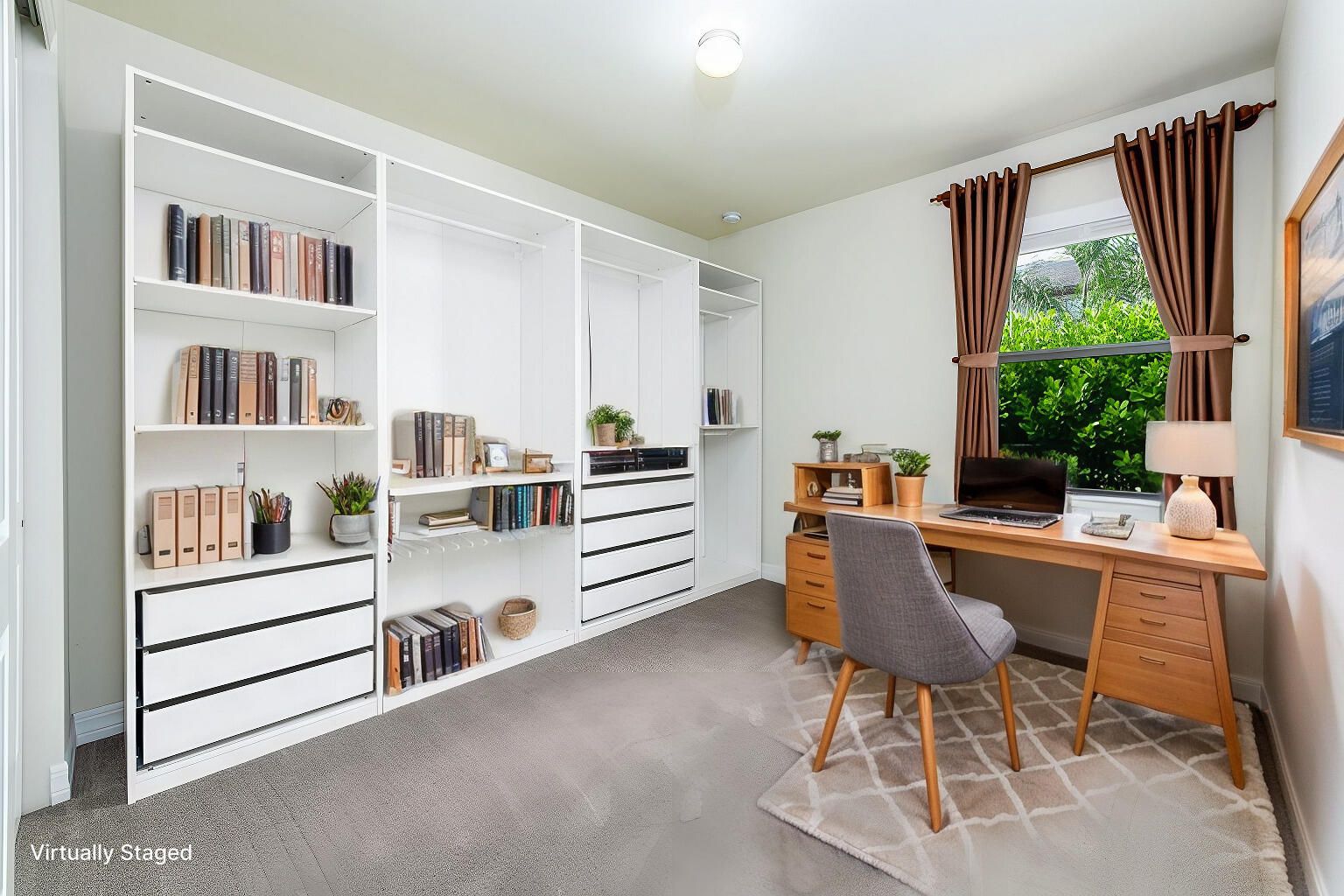 - Entrance Foyer, Kitchen Island, High Ceilings, Walk-In Closet(s), Home Office, Eat-in Kitchen, Separate/Formal Dining Room, Drapes, Impact Glass, Plantation Shutters, Multiple Primary Bathrooms, Multiple Primary Suites, Dual Sinks, Separate Shower, Bathtub