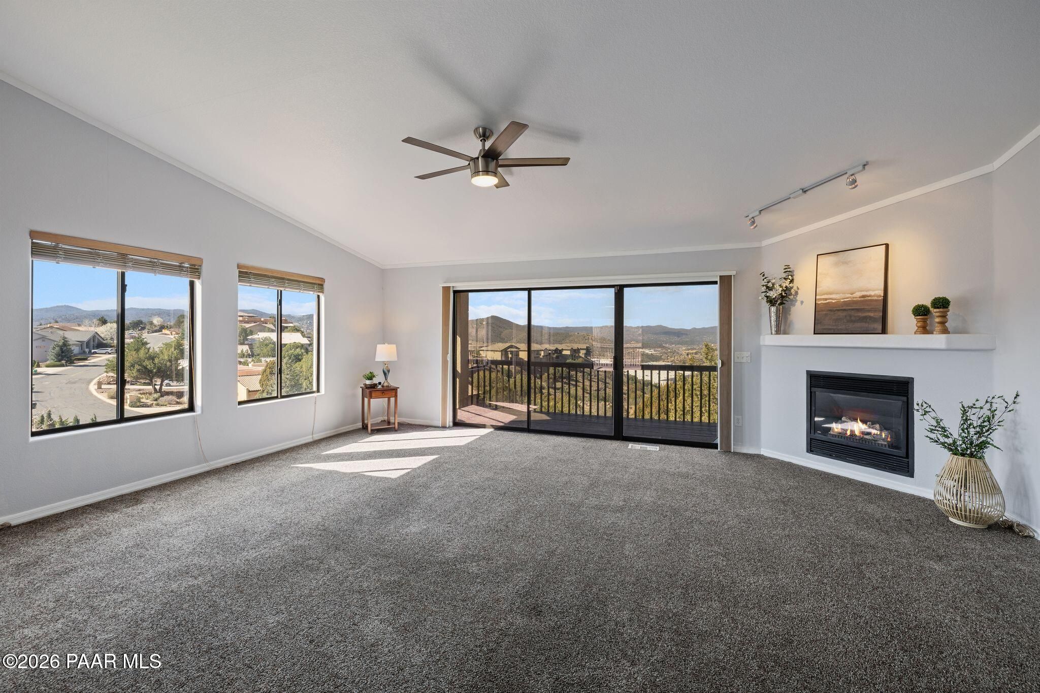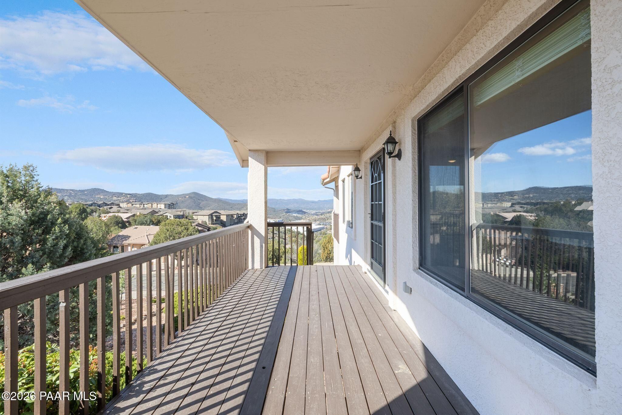 Perched at the top of the desirable Yavapai Hills subdivision, this 4 bdrm, 3 bath home offers breathtaking panoramic views and unforgettable Prescott sunsets. With 2,846 square feet of living space, the home features exceptionally large rooms and multiple indoor and outdoor living areas designed for comfort and relaxation. The main level living room is warm and inviting with a cozy gas fireplace and expansive windows that capture the incredible scenery. The updated kitchen showcases granite countertops, rich maple cabinetry and stainless steel appliances, while new wood flooring enhances the lower level living space. Three decks provide the perfect setting to take in the sweeping views, entertain guests, or enjoy peaceful evenings outdoors. Additional highlights include a 3 car garage with workshop space, an easy driveway, and a level fenced backyard. Ideally located close to shopping, medical services, and everyday conveniences, this home also includes access to the desirable Yavapai Hills amenities with low HOA dues. Move-in ready and offering the perfect blend of space, views, and location, this property is a wonderful opportunity to enjoy the best of Prescott living.