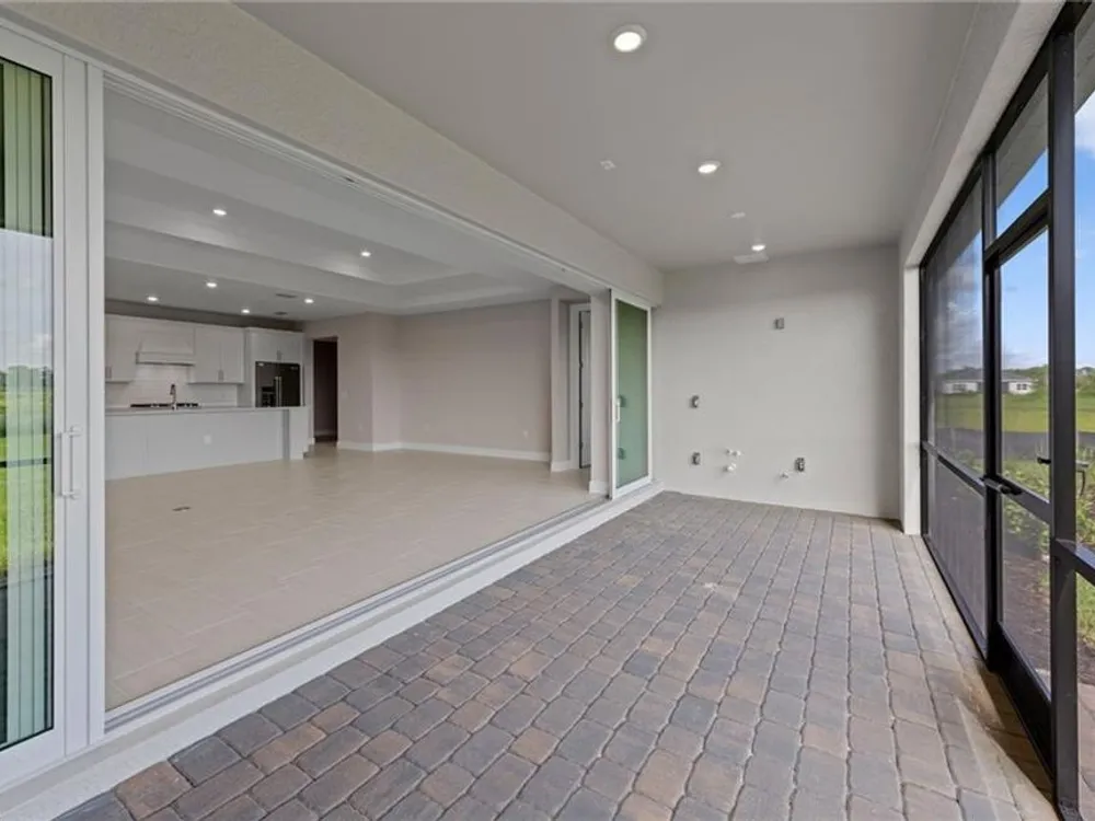 Brand new Stardom home is move-in ready! This Stardom features 2 bedrooms, 2.5 baths, den, and 3 car garage. Impact glass, stainless steel built-in appliances, 42" white cabinets, kitchen island cabinets are frost color, custom backsplash, quartz countertops, full laundry upgrade, smart home package, pocket sliding glass doors at gathering room, owners suite with enlarged walk-in shower, walk-in shower at secondary bath, Tile flooring throughout except for the secondary bedroom has carpet. The garage floor has Epoxy finish flooring. Enjoy a screened-in covered lanai with outdoor kitchen pre-plumb with landscape view. Oak Creek is Del Webb’s newest 55+ community, situated in North Fort Myers. Homeowners will benefit from it being a natural gas, gated community with vacation-inspired amenities such as a resort style pool and spa, clubs and activities, a restaurant and covered Tiki, and a fulltime lifestyle director. Just beyond the gates homeowners can find shopping and dining, explore Fort Myers River District, relax on the Gulf Coast beaches, and experience new recreational activities while still being only minutes from everyday conveniences.