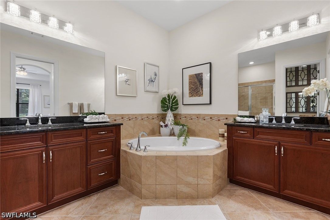- Breakfast Bar, Built-in Features, Bedroom on Main Level, Bathtub, Tray Ceiling(s), Coffered Ceiling(s), Dual Sinks, Entrance Foyer, Eat-in Kitchen, Family/Dining Room, Living/Dining Room, Main Level Primary, Pantry, Separate Shower, Cable TV, Bar, Walk-In Closet(s), High Speed Internet, Split Bedrooms