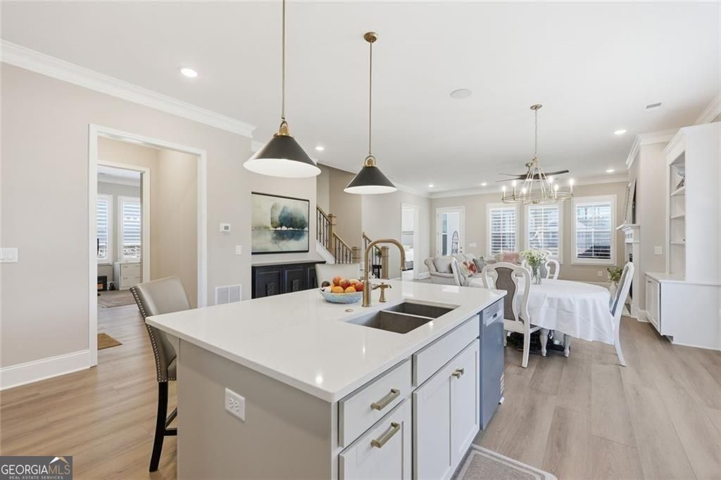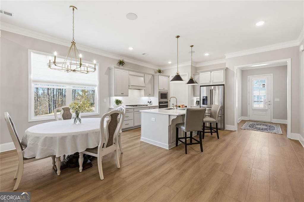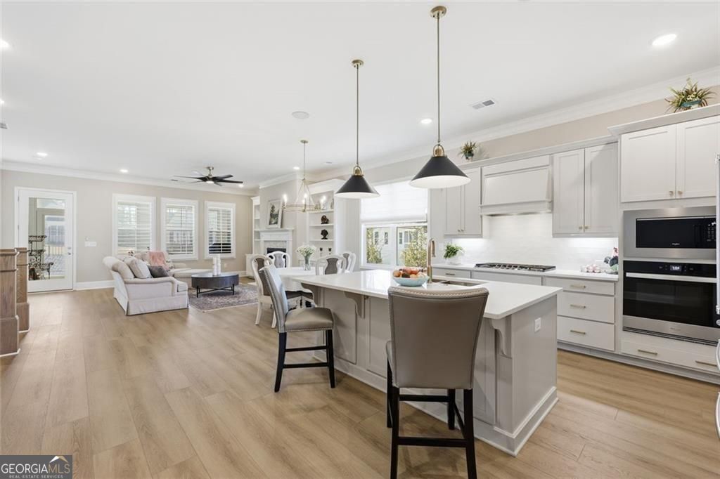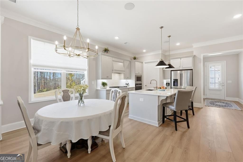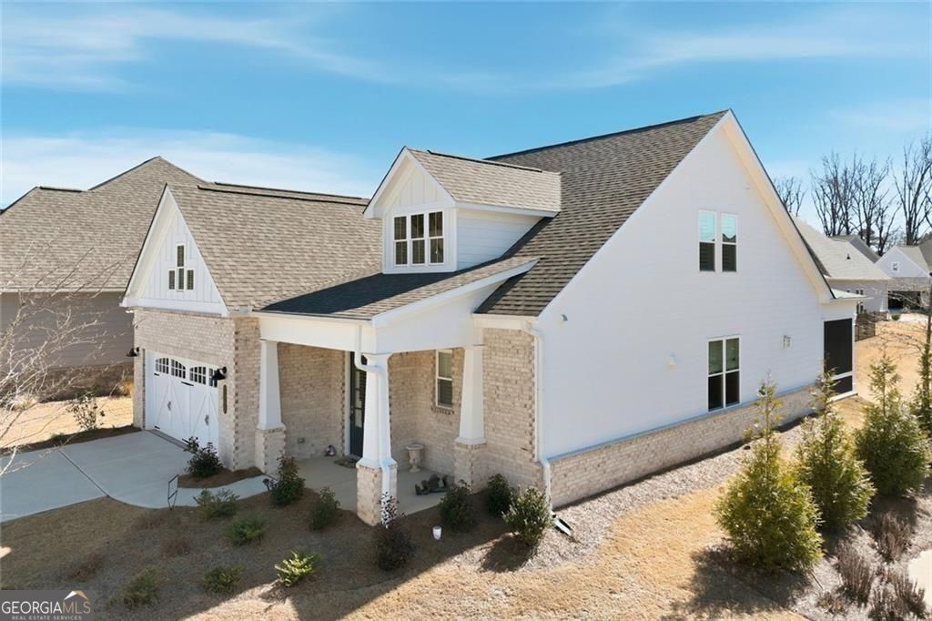 Resale opportunity in a new construction neighborhood. This home is NOT being sold through the builder. Please call the listing agents for a tour of this home. Preferred lenders available with excellent rate options for qualified buyers. Enjoy refined, low-maintenance living in this beautifully upgraded home in one of Cumming's premier 55+ communities. 7395 Winderlea Lane combines thoughtful design, modern finishes and effortless functionality, creating the ideal space for those seeking comfort without compromise. Offering approximately 2500 sq ft, this home features 3 bedrooms and 3 1/2 baths, designed with comfortable main-level living in mind. From the moment you arrive, you'll appreciate the charming curb appeal, light brick exterior and welcoming front porch. Inside, an open-concept layout showcases upgraded lighting, wide plank flooring and a stunning kitchen featuring quartz countertops, oversized island, stainless steel appliances and large walk-in pantry. The kitchen flows seamlessly into the dining area and fireside family room with built-ins-perfect for entertaining or everyday relaxation. And, you'll love relaxing and getting fresh air on the screened porch with removable panels that ensure year-round comfort. The main-level primary suite offers a peaceful retreat with a spa-inspired bath, dual vanities, oversized shower and generous walk-in closet. Additional bedrooms and flex spaces provide room for guests, hobbies or a home office. A spacious laundry room and ample storage add to the home's easy-living appeal. Just minutes from premier shopping and dining at The Collection, Halcyon and Vickery Village-as well as top medical facilities and easy access to GA-400-this home offers both convenience and community. Move-in ready and filled with upgrades, this is the perfect place to enjoy the next chapter.