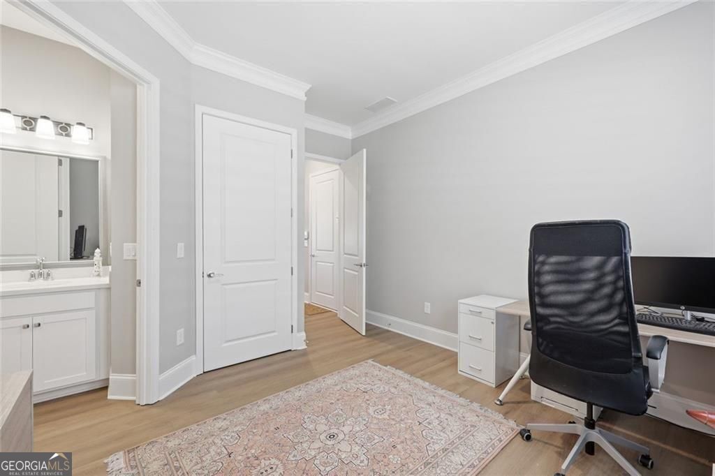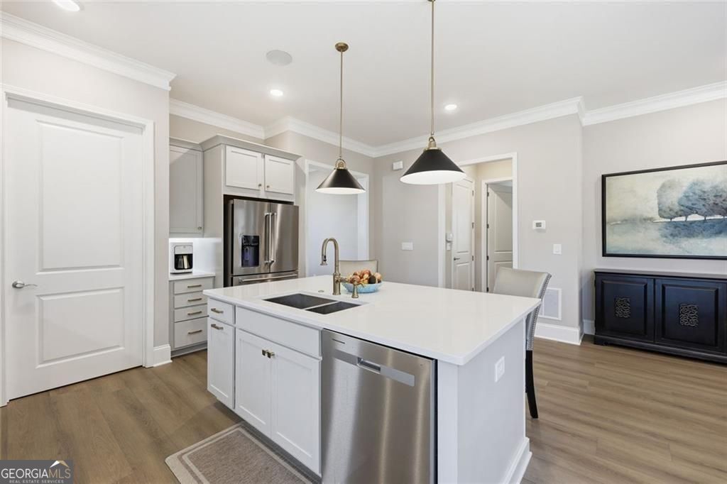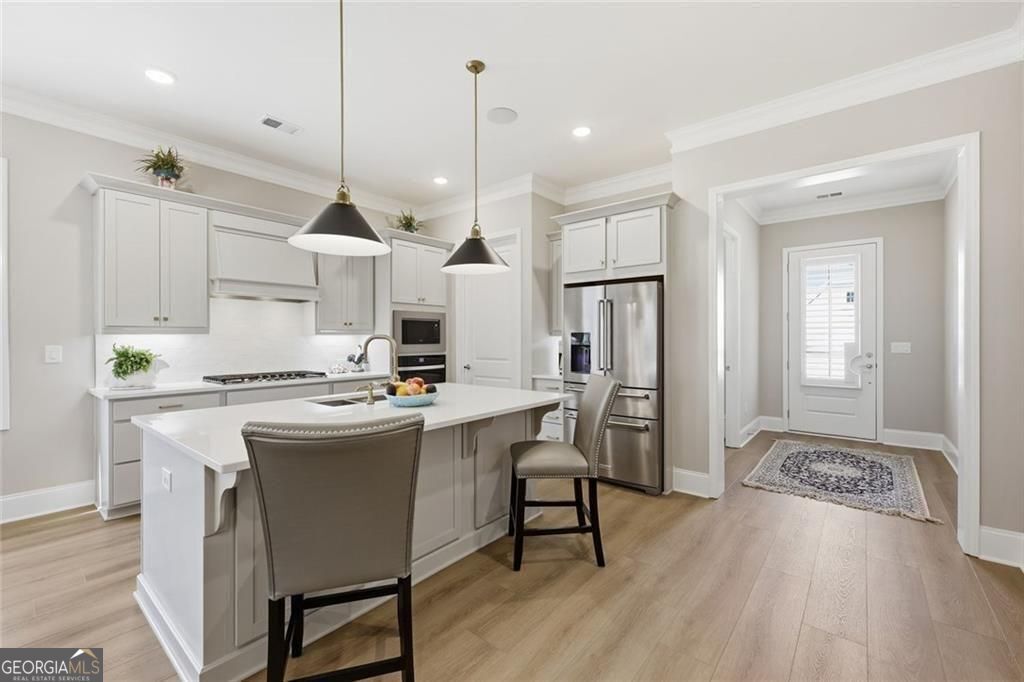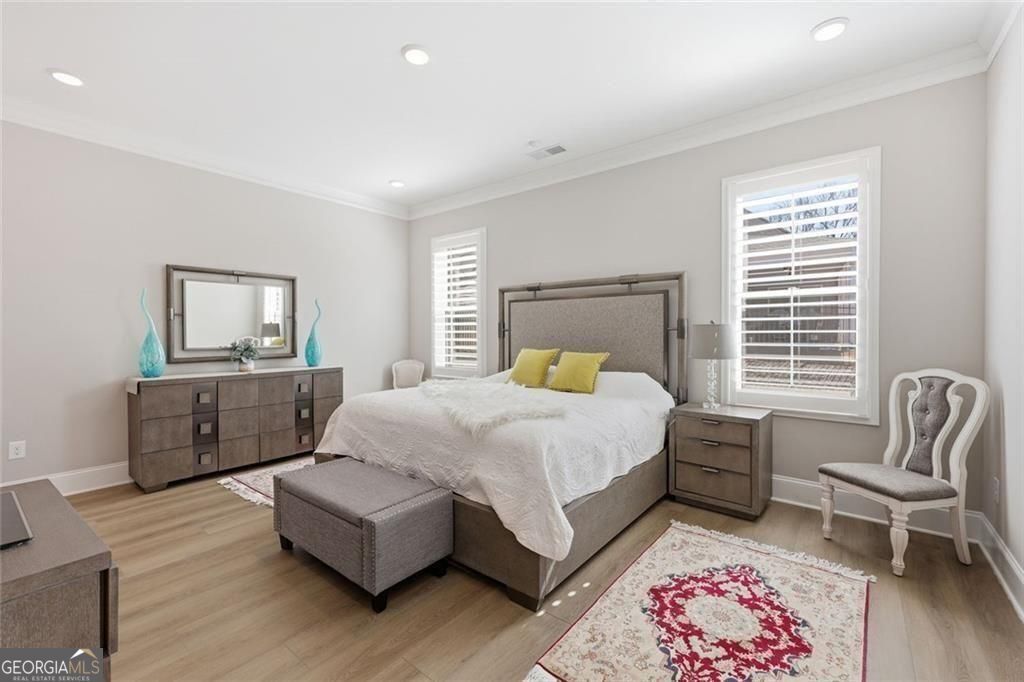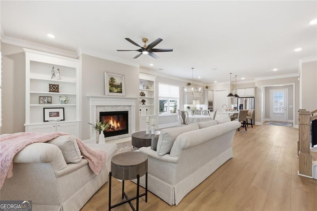 Resale opportunity in a new construction neighborhood. This home is NOT being sold through the builder. Please call the listing agents for a tour of this home. Preferred lenders available with excellent rate options for qualified buyers. Enjoy refined, low-maintenance living in this beautifully upgraded home in one of Cumming's premier 55+ communities. 7395 Winderlea Lane combines thoughtful design, modern finishes and effortless functionality, creating the ideal space for those seeking comfort without compromise. Offering approximately 2500 sq ft, this home features 3 bedrooms and 3 1/2 baths, designed with comfortable main-level living in mind. From the moment you arrive, you'll appreciate the charming curb appeal, light brick exterior and welcoming front porch. Inside, an open-concept layout showcases upgraded lighting, wide plank flooring and a stunning kitchen featuring quartz countertops, oversized island, stainless steel appliances and large walk-in pantry. The kitchen flows seamlessly into the dining area and fireside family room with built-ins-perfect for entertaining or everyday relaxation. And, you'll love relaxing and getting fresh air on the screened porch with removable panels that ensure year-round comfort. The main-level primary suite offers a peaceful retreat with a spa-inspired bath, dual vanities, oversized shower and generous walk-in closet. Additional bedrooms and flex spaces provide room for guests, hobbies or a home office. A spacious laundry room and ample storage add to the home's easy-living appeal. Just minutes from premier shopping and dining at The Collection, Halcyon and Vickery Village-as well as top medical facilities and easy access to GA-400-this home offers both convenience and community. Move-in ready and filled with upgrades, this is the perfect place to enjoy the next chapter.