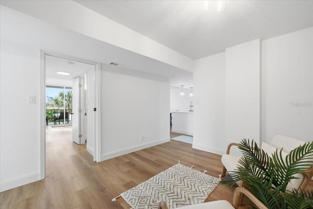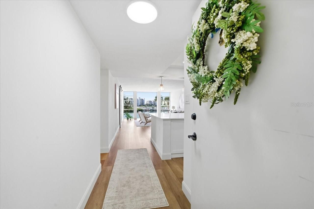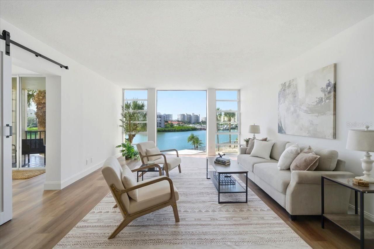 Welcome to your waterfront haven in Bay Island’s coveted Ambassador building, where every day feels like a vacation! This beautifully remodeled corner residence offers 2 bedrooms + den, 1,300 sq ft, and a light-filled layout that has been thoughtfully reimagined down to the studs. Facing west, this condo enjoys breathtaking water views from every window. Watch the sky turn pink and gold each evening as the sun sets over the Intracoastal, framed perfectly from your living room, kitchen, bedrooms, and private balcony. The interior has been completely redesigned and remodeled with a modern coastal aesthetic—new drywall, doors, trim, flooring, lighting, updated kitchen and baths, and a new A/C system. The unique floorplan lives more like a home than a traditional condo. And the versatile den offers the ideal flexible space for guests or an office, yoga studio, or craft room. The kitchen overlooks the dining and living area, so you won't mind cooking at all! Plenty of cabinetry and closet space as well as additional storage unit. And right outside of your building's front door- the waterfront heated pool and spa feel like your own backyard—just steps away for effortless enjoyment. Bay Island is known for its resort-style lifestyle, and it is one of only a few communities that are gated and manned with 24hr guard gate. For residents and their guests to enjoy- there are 6 heated pools, 2 jacuzzi, saunas, tennis and pickleball, shuffleboard, full fitness center, billiards, library, clubhouse, Tiki BBQ areas, marina access, and a stunning 1.5-mile waterfront walking path where it’s common to see dolphins play, manatees glide by, and a variety of coastal birds soaring overhead. The Ambassador building has also completed its milestone/structural inspections for added peace of mind. There are bike racks for your convenience, and the nearby SunRunner Line offers quick and easy Gulf of Mexico beaches access as well as Downtown St Pete without ever getting in your car! All of this in a location that is second to none—just minutes to St. Pete Beach, Treasure Island and Sunset Beach, Corey Avenue’s shops and cafés and Sunday morning market, close to kitschy cute Gulfport, and only 15 minute drive to all of the exclusive dining, arts, waterfront parks, museums, and energy of Downtown St. Petersburg. Close to Banks and Palms of Pasadena medical facilities and 20 mins to Tampa International Airport. Come see this beautiful condo and live the active and beautiful Florida Life!