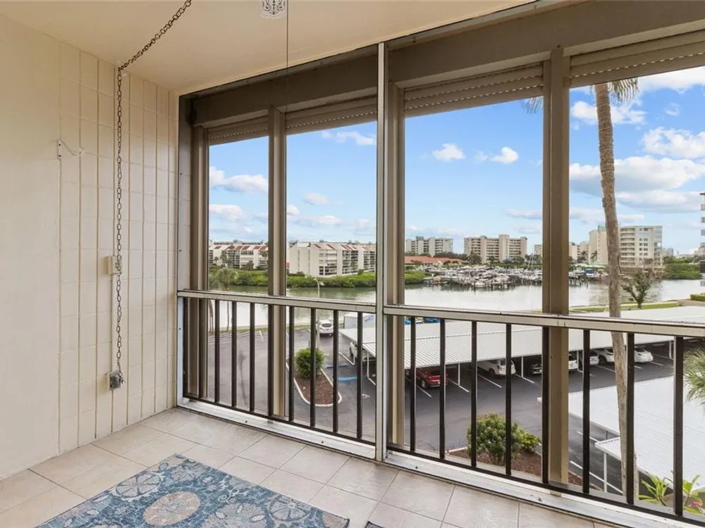 Waterfront Corner Condominium with Stunning Bay Views at The Ambassador! Discover the Florida lifestyle at its finest in this spacious 2-bedroom, 2-bathroom corner residence located on Porpoise Pass. Enjoy water views from nearly every room in the condo. Both bedrooms are private retreats, each with its own full bathroom including a screened balcony off one of the bedrooms—perfect for morning coffee or relaxing with a refreshment. The kitchen features a generous snack bar, while the open-concept living room offers views of the Bay. A separate dining area provides ample space for entertaining family and friends. This residence includes both electric and manual hurricane shutters, an in-unit washer and dryer, assigned covered carport #412 parking, and an additional storage unit #412. The unit also presents a wonderful opportunity to update and customize to your personal style. The Sun Island community is a gated 55+ paradise with 24-hour security and an impressive array of amenities: six heated pools, tennis, shuffleboard, pickleball courts, fitness centers, and a recreation facility. The recreational building is currently being renovated. Monthly fees include cable, internet, Wi-Fi, water, sewer, trash, flood insurance, and 24-hour guarded gate security—making this an exceptional value. Don’t miss this opportunity to own your own waterfront condo and experience the best of Florida living! Room sizes are approximate. Buyer(s) to verify all dimensions and review community rules/restrictions, including pets, rentals, and age requirements.