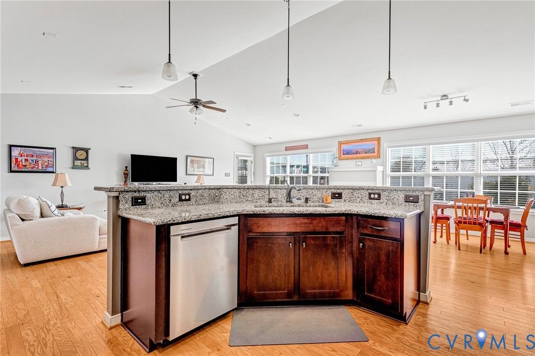 - Bedroom on Main Level, Ceiling Fan(s), Dining Area, Granite Counters, Main Level Primary, Pantry, Recessed Lighting, Walk-In Closet(s)
