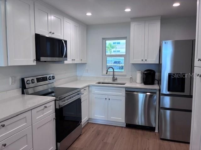 Enjoy coastal living at its finest in this beautifully remodeled, over 55, gated community. One bath and bedroom residence with stunning Intracoastal view. Every detail has been thoughtfully redesigned, featuring a luxury kitchen with shaker cabinets, Quartz countertops and new stainless-steel appliances. The bathroom is finished in ceramic tile and 36” mirrored medicine cabinet. Windows, doors and water heater are new. The home is freshly painted for a bright, inviting feel. One of the six heated pools is just steps away from the back door of this condo located in South Pasadena. Men and women's gym. Large community center with pool tables, meeting rooms, and library and much more. Property is Agent owned. This condo is also available for renting, includes all utilities, WIFI, laundry facilities and access to all amenities of the gated community including 6 heated pools, men and women's work out facility, tennis courts, Pickle ball, shuffleboard and pool tables.. Also includes free parking. Move in ready. Fully furnished! Furniture is included purchase price! Minimum rental of 30 days. You can also rent condo for less than 30 days three times a year. Move in ready. Fully furnished!