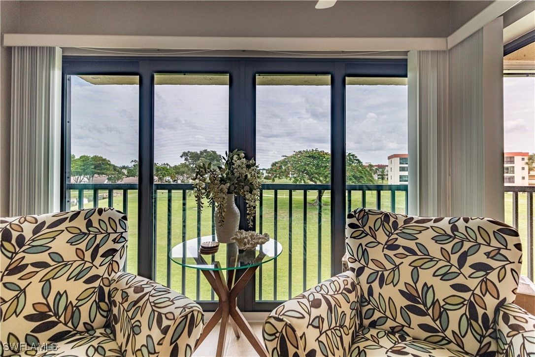 A Clean and Meticulously maintained unit. Come see for yourself! FULLY FURNISHED/TURNKEY for your convenience. Gorgeous views of the Golf Course and lake too. Stackable Washer and Dryer and Porcelain Tile Flooring throughout the unit. Kitchen has been updated with New cabinets, tile backsplash and Granite Countertops, and a lazy susan which offers you more storage. Refrigerator, microwave and disposal are only a couple years old. Bathrooms have been updated with 36 Inch Vanities, new lights and mirrors. Bicycles in the unit are also included in the purchase. Along with Golf Cart Space T4 and golf cart which has a new charger. A storage closet off the lanai and an additional closet by the elevators where you can store a few more of your belonging. You'll love the upgrades and amenities this property has to offer. All windows in this condo are hurricane impact resistant so well as the sliding door off the main living area. Hurricane accordion Shutters for the Lanai. Cross Breezes are Fantastic. This well-maintained community also boasts 6 heated pools, an Executive 18 hole golf course, auditorium for dinners and dances, full activities department which has a newsletter with monthly activities, tennis, pickle ball, shuffleboard, bocce ball, to name a few of the amenities offer at Seven Lakes. All amenities and your cable/internet, water/sewer, trash removal and lawn maintenance are covered in your monthly condo fee. Your monthly electric service is your responsibility. Seven Lakes has a convenient location close to shops, restaurants, both Fort Myers and Sanibel beaches and minutes away from the international airport. Don't wait another minute to start living the Florida dream - come see this incredible property today!