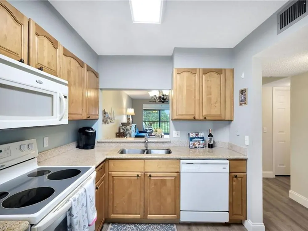 Enjoy Florida living at its best in this updated two-bedroom, two-bath split-plan condo. The open layout and durable vinyl flooring create a clean, modern feel throughout. Relax on your private balcony with peaceful views of the lush Seven Lakes community. This 55+ neighborhood offers resort-style amenities—golf, tennis, pickleball, bocce, shuffleboard, crafts, a woodworking shop, library, and more—all within nearly 200 gated acres. Washer and dryer in-unit, plus dining and entertainment just a short walk away. Move-in ready and perfectly located for year-round enjoyment or a sunny seasonal escape!