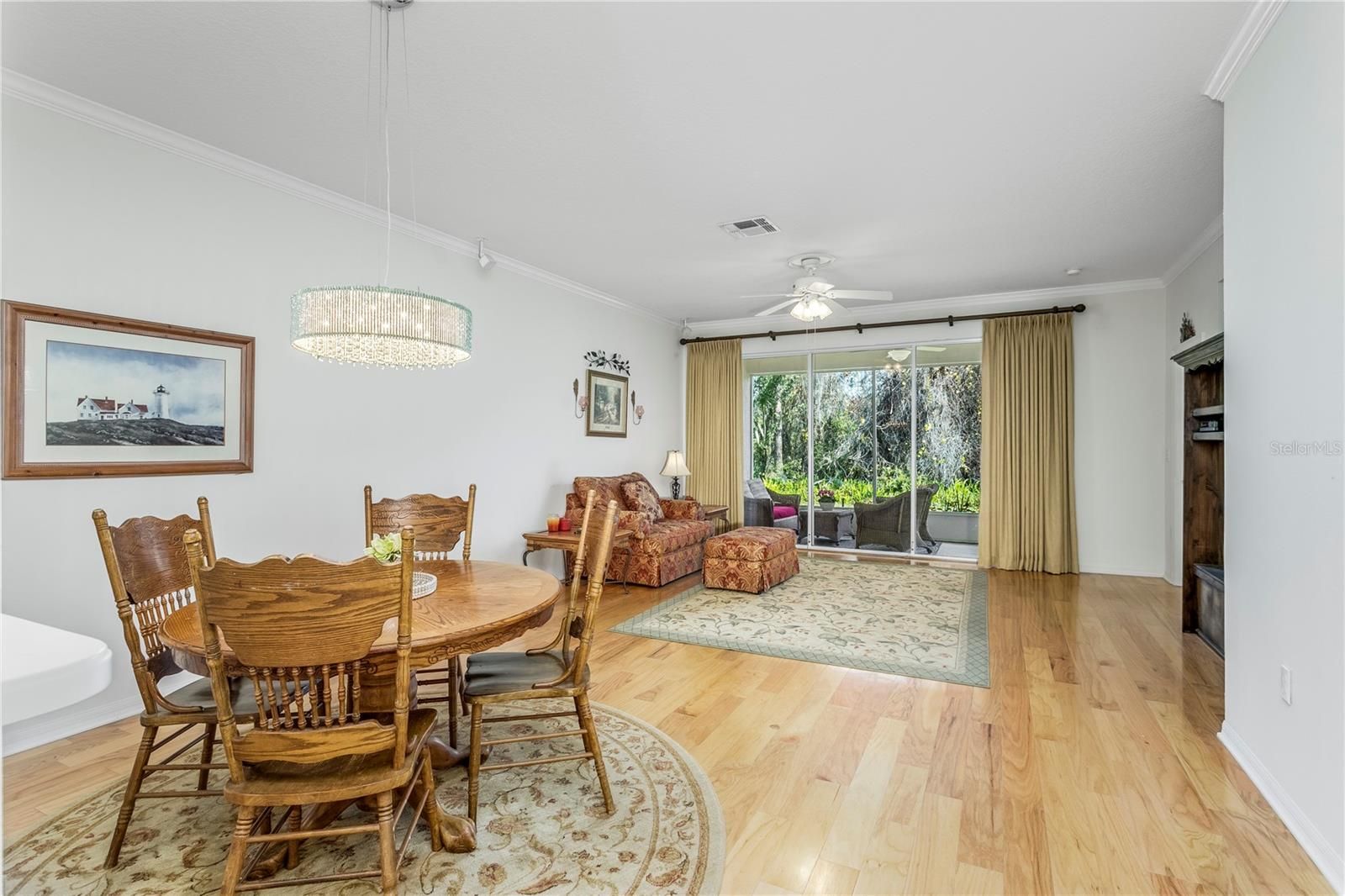One or more photo(s) has been virtually staged. Looking for a fun-filled Active 55+ lifestyle? Welcome to this charming, low-maintenance villa located in the heart of The Groves Golf & Country Club, a popular GATED GOLF community known for its vibrant lifestyle, friendly neighbors, and Florida sunshine. This beautifully maintained home features elegant WOOD FLOORS, CROWN MOLDING, and a PRIVATE covered screened-in LANAI overlooking a peaceful NATURE PRESERVE—the perfect spot to relax and unwind. The spacious kitchen offers ample counter space, abundant cabinetry, and a cozy breakfast nook, all flowing seamlessly into the open dining and living areas. Sliding glass doors invite you out to the tranquil lanai for effortless indoor-outdoor living. The primary suite is a true retreat with a generously sized bedroom, bay windows, custom drapes, and an en-suite bath featuring dual sinks, a tiled walk-in shower, and a large walk-in closet. A split-bedroom floor plan provides privacy, with the guest bedroom located at the front of the home overlooking the charming entry courtyard, along with a conveniently located guest bath and indoor laundry room. Enjoy a resort-style community lifestyle with access to a clubhouse offering a restaurant, ballroom, library, fitness center, pro shop, and a newly renovated pool area with jacuzzi. Stay active with 18-hole golf course, driving range, tennis, pickleball, bocce, shuffleboard, a dog park, and countless social clubs and activities. HOA quarterly fees include: ROOF replacement (roof replaced 2019), EXTERIOR PAINT, CABLE TV & INTERNET and LAWN CARE. Just outside the gates, you’ll find a Publix Plaza with restaurants, a bank, hair and nail salon, and more—everything you need is close by. Easy living, incredible amenities, and a fantastic location. Schedule your private tour today and experience The Groves golf cart friendly lifestyle for yourself!