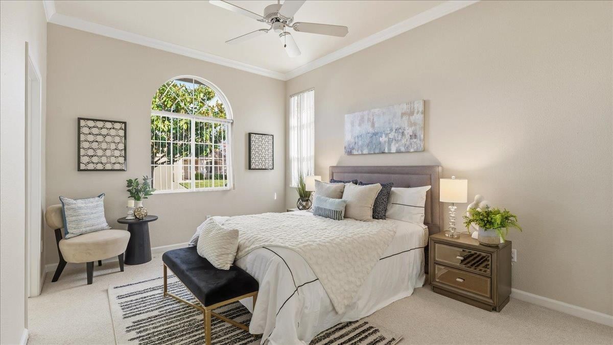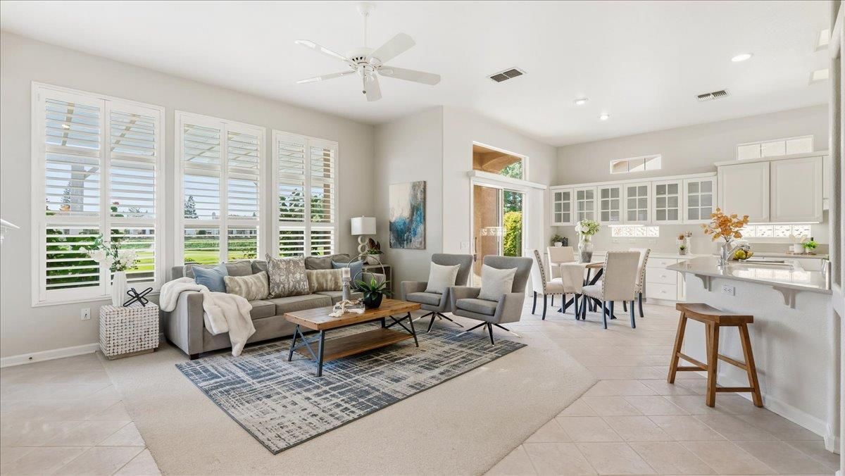 Welcome to your dream home in highly desirable Sun City Roseville! This stunning Hearthwood model sits on a premier golf course lot on the 2nd hole of the Sierra Pines course offering a view of the green and the pond/fountain just beyond while maintaining a sense of privacy. Step inside this 2/3 bedroom, 2.5-bath home to find an entertainer's dream, complete with formal living and dining areas, a charming breakfast nook, and a cozy family room. The kitchen has a classic feel with white cabentry, white appliances and Corian countertops. Freshly painted inside and professionally cleaned the home is ready for a quick move-in situation. Large windows frame the picturesque golf course, creating a serene backdrop for everyday living and special occasions. The Primary Suite is a true retreat, boasting panoramic views and a spa-like bathroom with a soaking tub, an updated walk-in shower, and generous closet space. Guests will feel right at home in the second bedroom with an ensuite bathroom, while the third room is ideal as a home office. Additional highlights include a large laundry room with sink and extra cabinetry, and a full 3-car garage provides plenty of room for vehicles and a golf cart. Note the back patios offer both a screened in porch and also a large covered patio that allows for comfortable enjoyment outside. Sun City offers an unparalleled lifestyle with world-class amenities, including golf, recreation, and social activities. Don't miss this rare opportunity to own a piece of paradise in this vibrant 55+ community! No-Mello-Roos taxes, and low HOA dues make Sun City Roseville 55+ a great place to live.