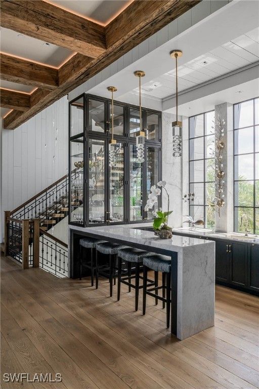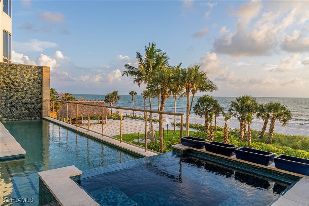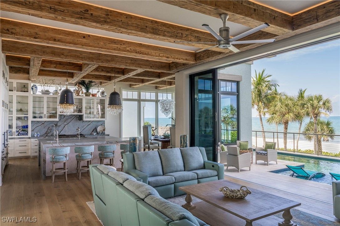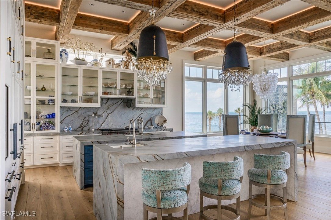 A stunning new home in The Strand at Bay Colony - one of Naples’ most exclusive beachfront communities. Designed by Stofft Cooney Architects and built by BCB Homes, this 5-bedroom, 5.5-bath custom residence blends contemporary coastal design with timeless craftsmanship. Light-filled open spaces feature wide-plank Legno Bastone floors, a 3-sided fireplace, and incredible natural finishes throughout. The gourmet kitchen includes high end appliances, Blue Roma quartzite counters, a full butler’s pantry, and a 400-bottle wine room. The top-floor primary suite offers sweeping Gulf views, dual closets, a spa bath, morning bar, and fitness studio. Outdoor living is a priority here with a resort-style pool, water feature wall, EVO grill, and reclaimed pecky cypress ceilings. It’s built to the highest standards with hurricane-rated windows & doors, generator, Control4 home automation, and private elevator. Wake up to the sound of the surf and walk straight onto the private sands of Bay Colony, or spend the day at the Beach and Tennis Club enjoying oceanfront dining and poolside relaxation. Behind you is 570 acres of untouched conservation land which offers a rare balance of nature and total privacy along Naples’ most coveted coastline.