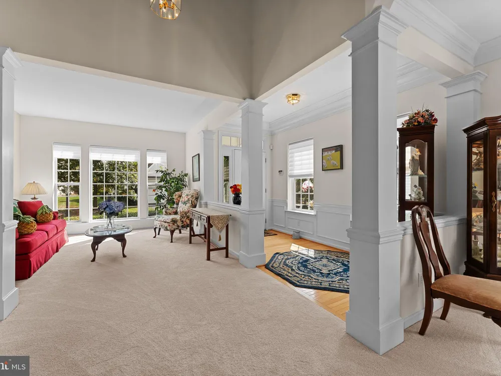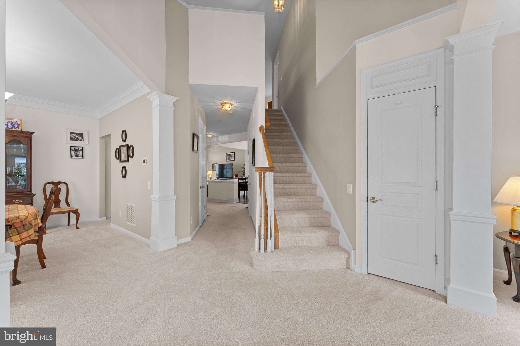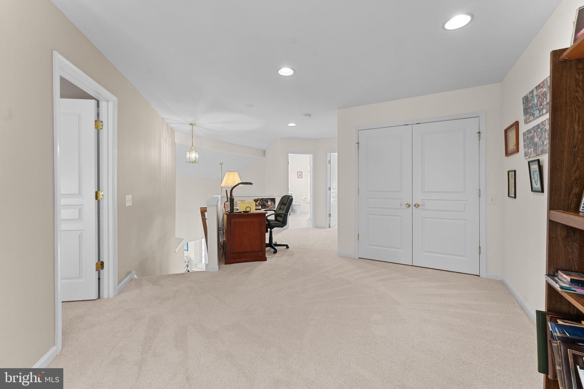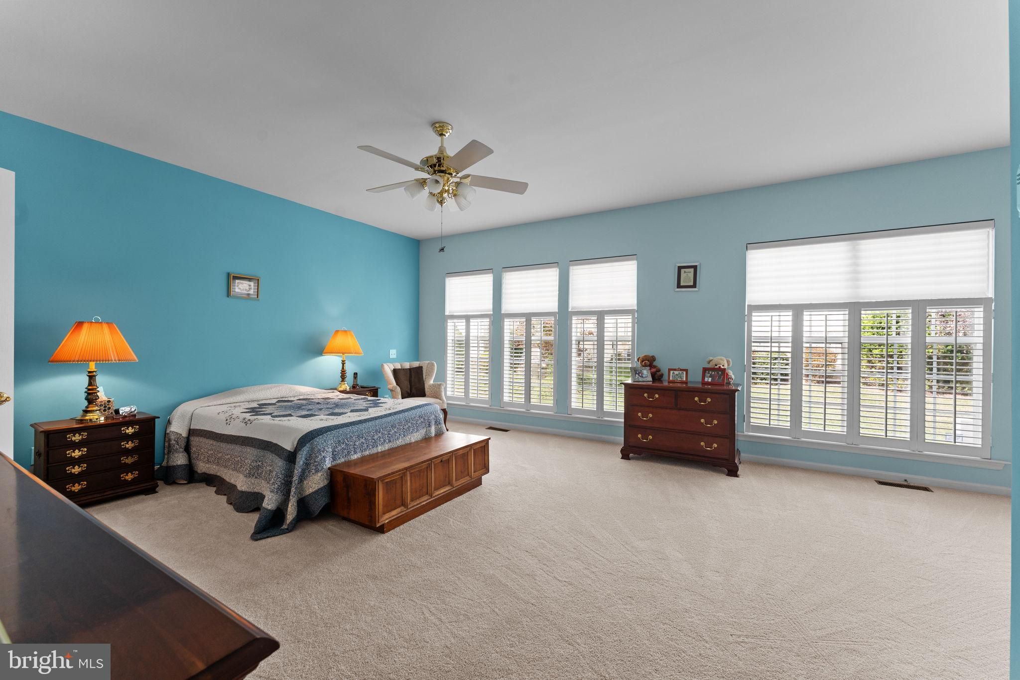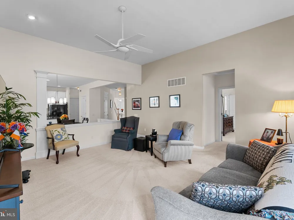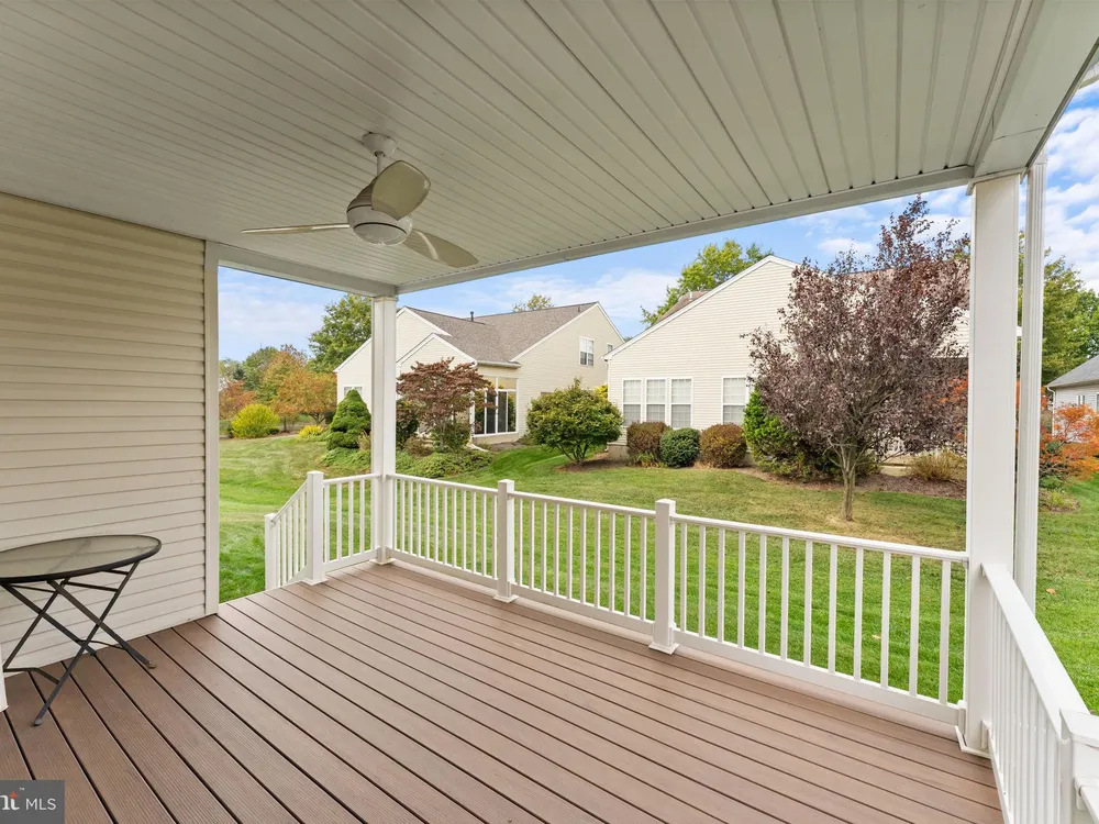 Here is your opportunity to own an exceptional, highly desirable, Mayfield model located in the award winning Traditions at Skippack active adult community. As you enter the dramatic two story foyer you will experience a very tastefully decorated home with harmonious neutral shades throughout the home. Off of the hardwood entrance foyer are neutrally carpeted living and dining rooms, with classic crown molding and chair rail trim. The plush white carpeting in the entrance hallway continues down the hallway to the spacious kitchen. The eat in kitchen area includes classic ceramic tile flooring, beautiful 42” premium white cabinetry, Onyx Corian surfaces on the counter, complimentary black appliances, and a large Corian surfaced island for dining and culinary activities. Large windows in the eat in kitchen provide a bright and cheerful feeling. Adjacent to the spacious kitchen dining area is an expansive family room with white carpeting, vaulted ceiling, and ceiling fan. The sliding glass doors in the family room provide access to a wonderful covered Trex deck with white vinyl railing, ceiling fan and steps to the back lawn. The large first floor primary bedroom with white carpeting, a sitting area, tray ceiling, brass ceiling fan, and custom mirrored closet, is conveniently located off the family room. The many windows in this bedroom provide a bright and cheerful atmosphere. The luxurious neutrally decorated upgraded primary bath provides a double vanity, and a large glass enclosed ceramic tile stall shower. The first floor also includes a very convenient butler's pantry, guest powder room, and laundry room with convenient cabinetry. The second floor includes two full sized bedrooms with neutral carpeting, a full neutral décor bath, and a large carpeted loft area for an office, or additional relaxation space. This area is also a great retreat for guests to relax and enjoy some privacy during visits. There is also a large storage area accessible from one of the bedrooms. This exceptional home also includes a beautiful finished basement area with white carpeting and tiled ceiling with recessed lighting. There is also a very large storage and work area in the basement to accommodate all your storage and workshop requirements. This home has had many improvements to provide many years of care free living. They include; New roof (2024), new heating system (2019), new A/C system (2016), new washer & dryer (2016), remodeled primary bath ( 2023), Loft bath upgrades (2025), new carpeting (2021), Interior repainted ( 2021), new kitchen flooring ( 2016), and new primary bedroom shades ( 2020). This exceptional community provides residents with a beautifully decorated clubhouse with great room, library, exercise room and billiards room. A large heated community salt water pool is provided for residents and guests to enjoy in the warm weather. A convenient walking path winds through the community to exercise safely, and a tennis and pickle ball court. There are many nearby shopping and dining areas in the charming Skippack Village, and the expansive Provincetown shopping, dining, and entertainment complex in Collegeville. This wonderful home has been meticulously maintained and is truly in “move in” condition. If you’re looking for an exceptional home in this great community, act quickly!