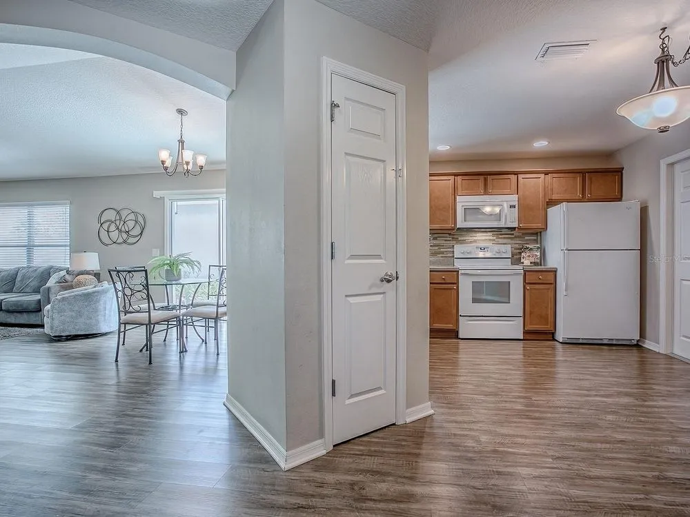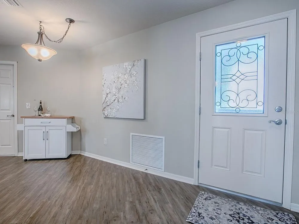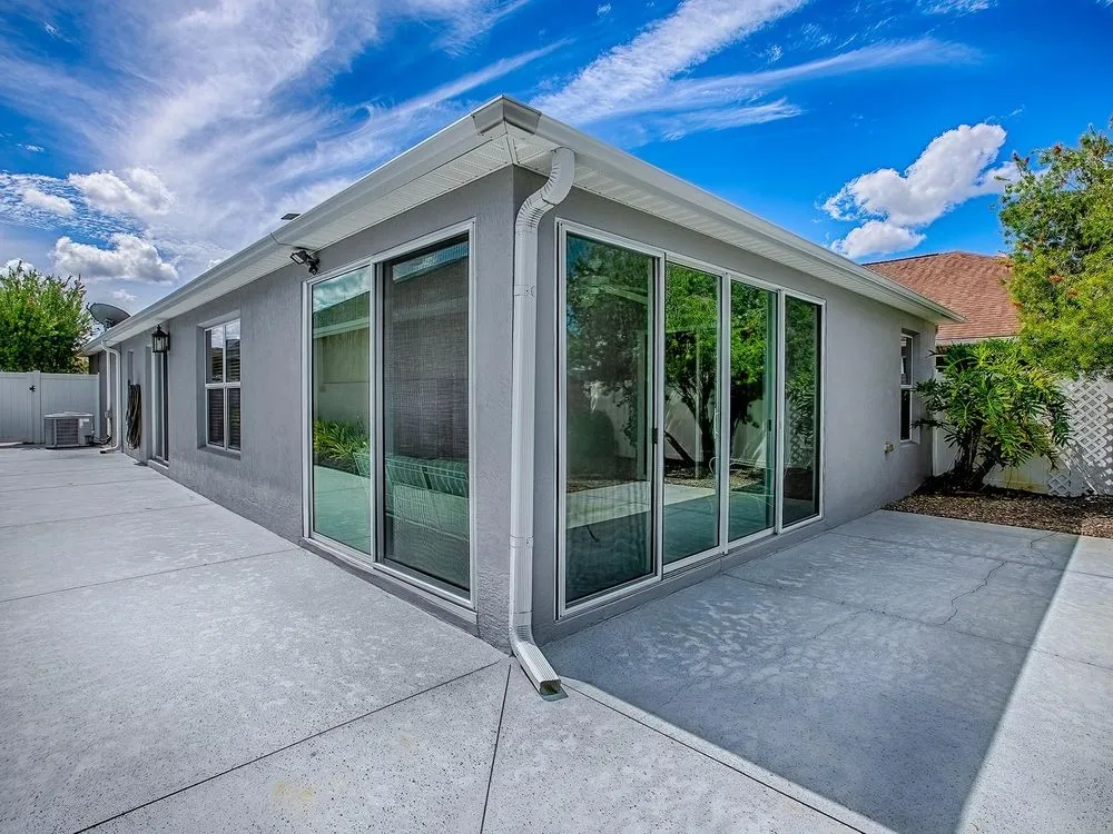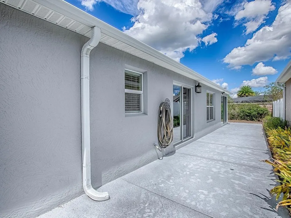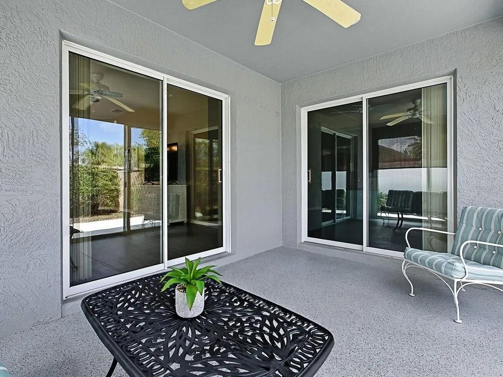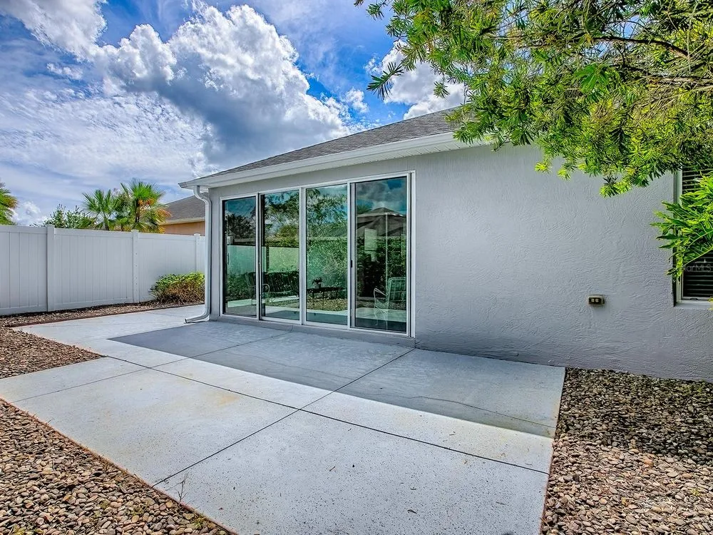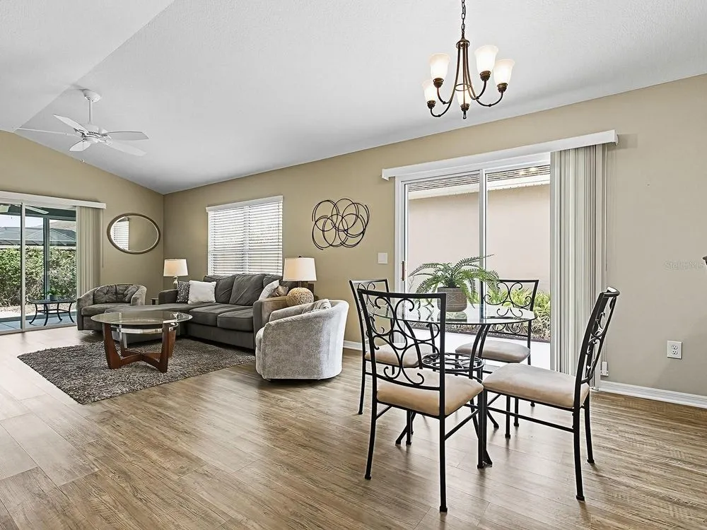 TURNKEY! Come see this beautifully constructed Concrete Cambridge Courtyard Villa located in the desirable Village of Sanibel. From the moment you arrive, you’ll notice the painted driveway and walkway, surrounded by low-maintenance rock landscaping and tropical plantings for year-round curb appeal. Inside, you’ll find NO CARPET—luxury vinyl plank flooring runs throughout the home. The spacious living room features vaulted ceilings and sliding glass doors that open to the glass-enclosed lanai, creating the perfect blend of indoor and outdoor living. The eat-in kitchen boasts a tiled backsplash, high-definition countertops, and a convenient closet pantry. The open dining area seamlessly flows into the living room, providing ample space for entertaining family and friends. The glass-enclosed lanai provides even more space to gather, featuring sliding glass doors that offer easy access to the patio for grilling or outdoor activities. The owner’s suite offers tray ceilings, a large walk-in closet, and a private bath with a tiled shower (complete with seat) and dual sinks. The guest suite also features vaulted ceilings and direct access to the guest bath, providing comfort and privacy. Additional highlights include an epoxy-finished garage floor and attic stairs for added storage space. This villa is ideally located near Sanibel and Captiva pools, the Colony Rec Center, shopping, dining, the Sarasota Golf Center, Bonifay Country Club, and more. You’ll be just 10 minutes from Brownwood Paddock Square and medical facilities, as well as 12 minutes from Lake Sumter Landing. Multiple executive and championship golf courses are nearby, making this a perfect spot to enjoy all The Villages has to offer.