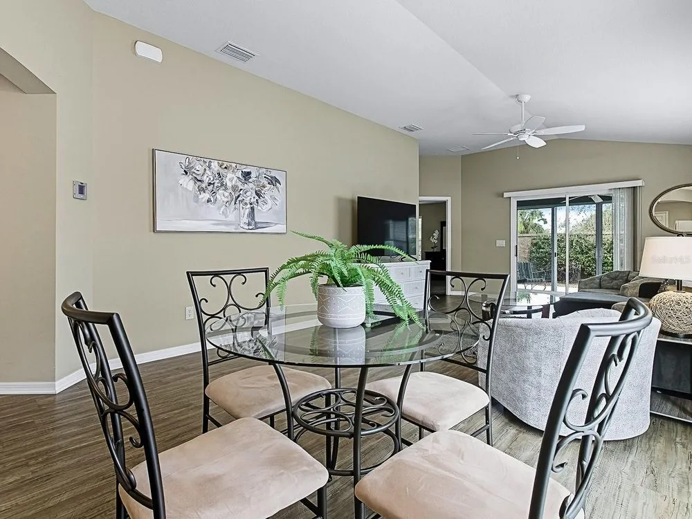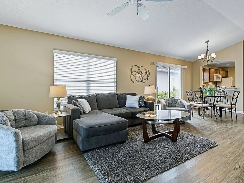 - Ceiling Fan(s), Eat-in Kitchen, Living/Dining Room, Open Floorplan, Split Bedrooms, Tray Ceiling(s), Vaulted Ceiling(s), Walk-In Closet(s)
