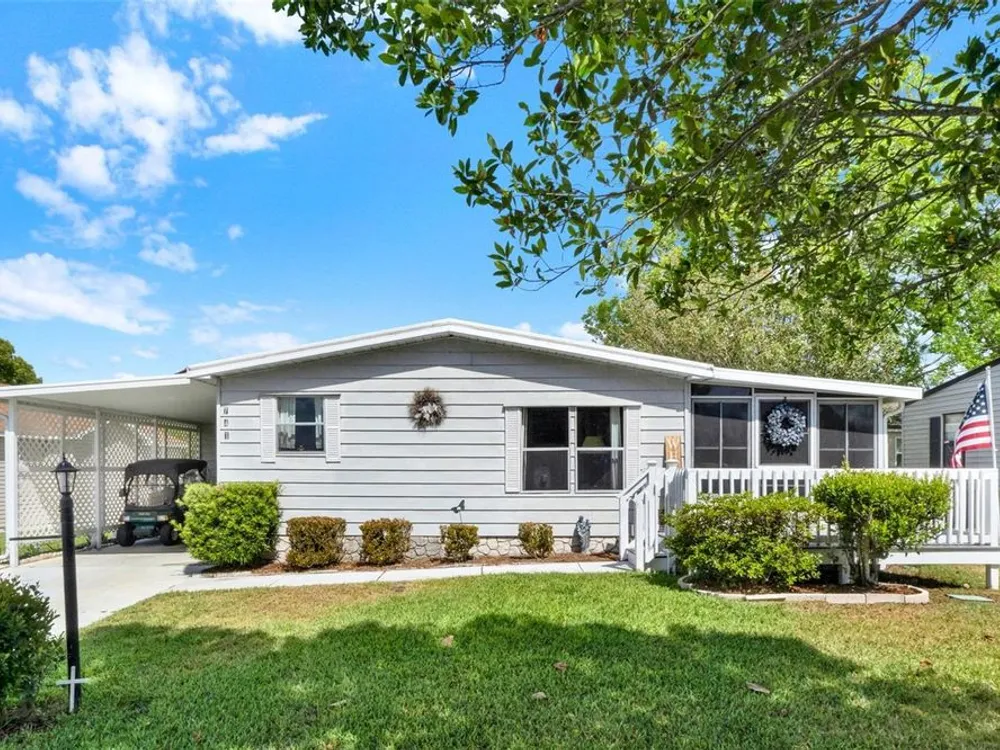 2-bedroom, 2-bath home is full of potential and recent updates. You'll appreciate the new irrigation system, composite deck, new acrylic windows on the lanai, and a 2022 AC unit for year-round comfort. Inside, enjoy ample storage from the generous kitchen cabinetry to the built-in dining buffet and surprisingly large closets. Whether you're looking for a seasonal escape, investment, or a project to make your own, this one checks the boxes. Plus, you're just a golf cart ride away from the Orange Blossom pool, golf, and shopping. No bond! Charming opportunity in the heart of Orange Blossom Gardens! Village of Silver Lake in The Villages, providing convenient access to nearby amenities such as the Orange Blossom Hills Golf & Country Club with a gorgeous waterfall and the community pool with one of the only hot tubs!